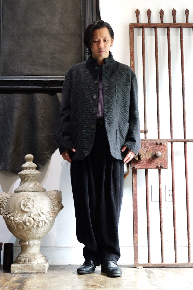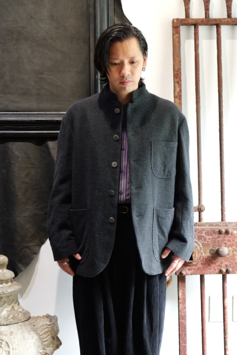 ・デザインはヴィンテージのフレンチワークジャケットをリモデルしたスタンドカラージャケットを