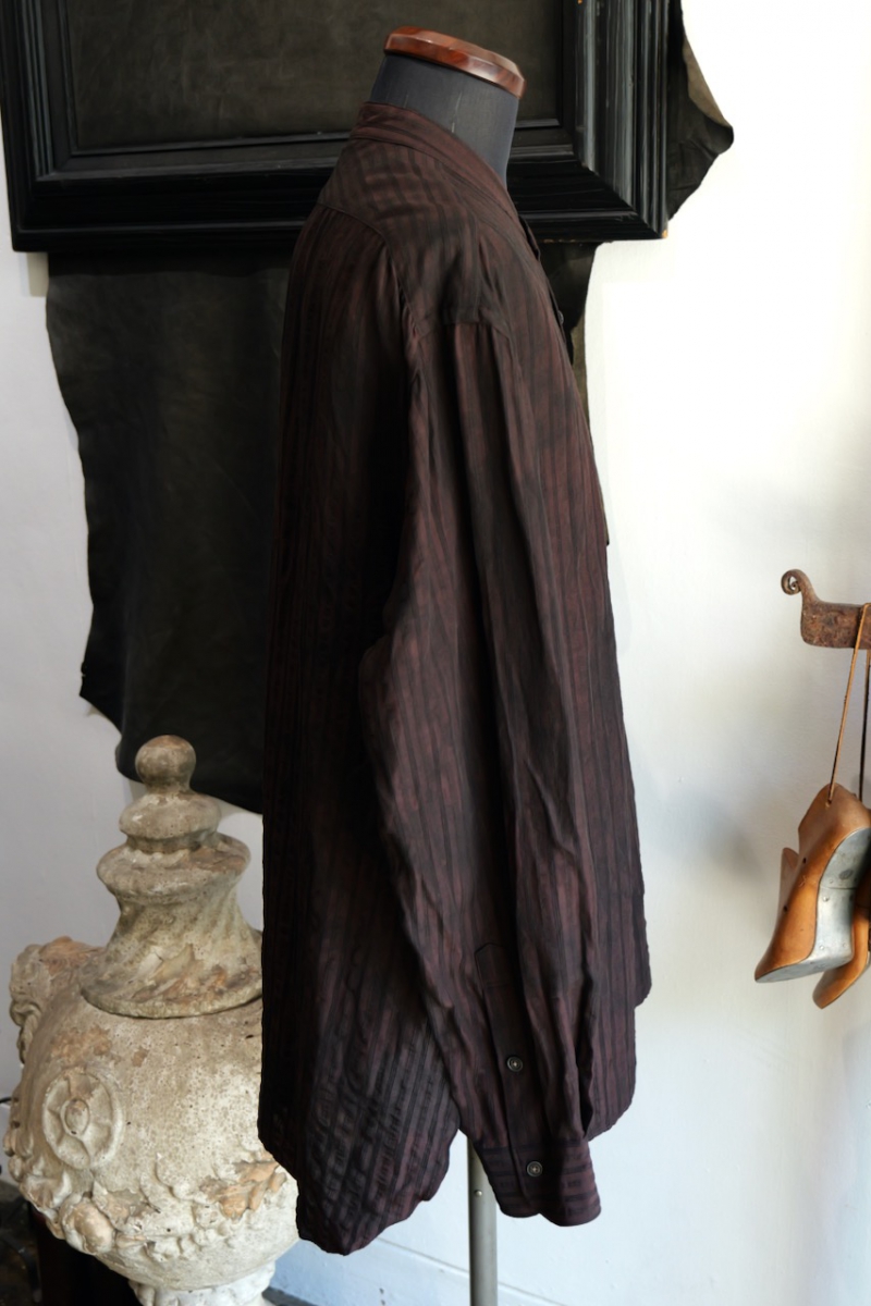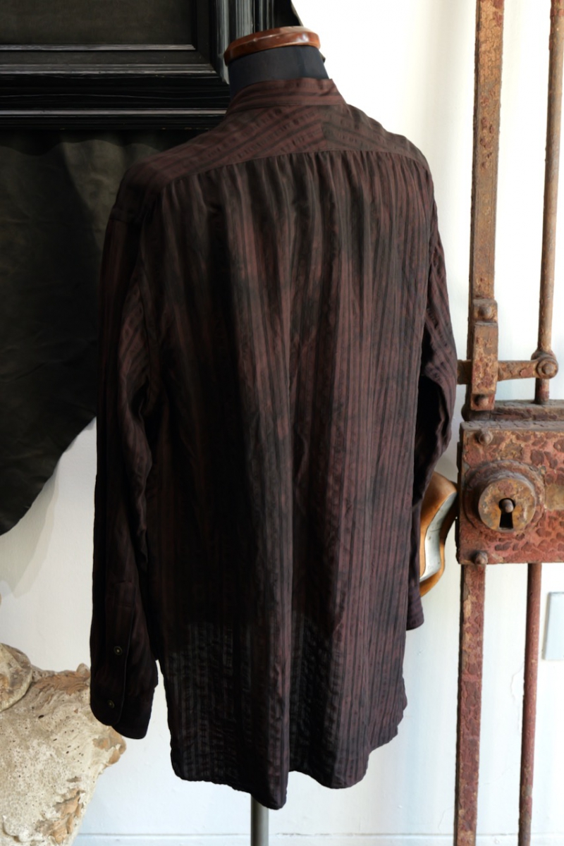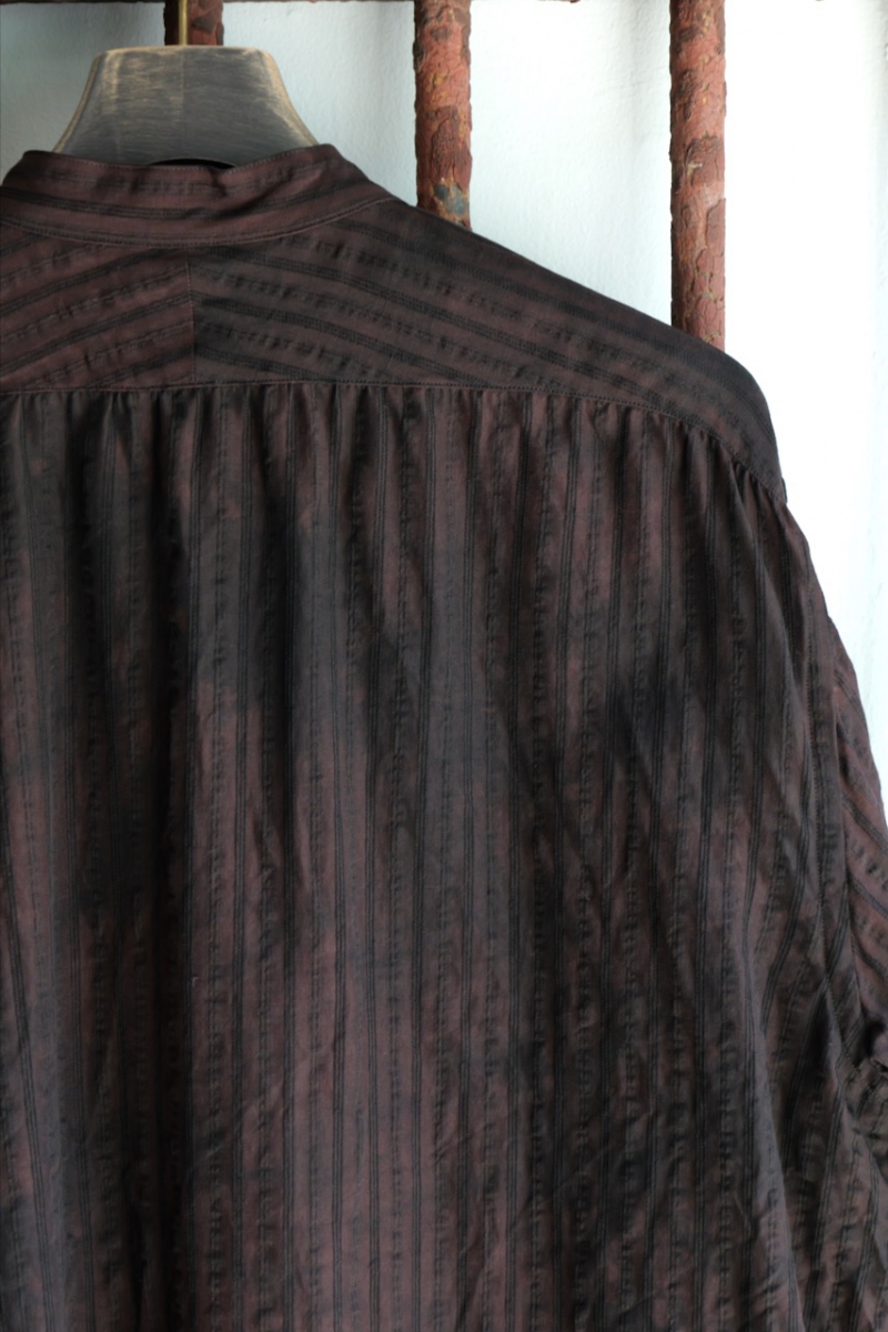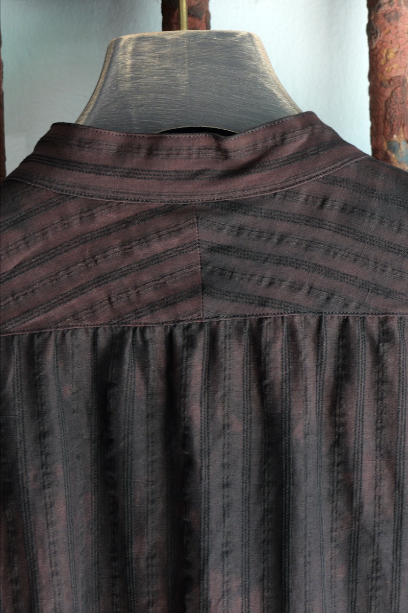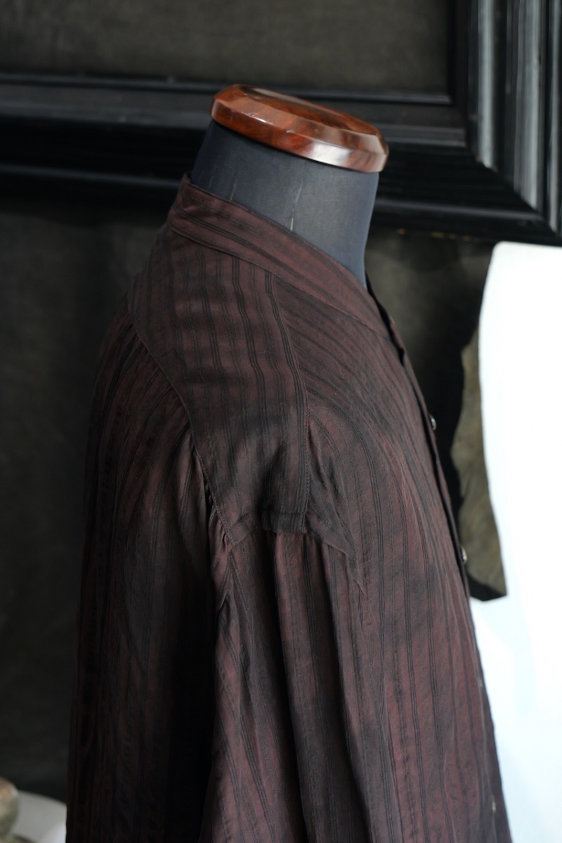 ・ヨークにギャザーを施したヴィンテージ感のあるバンドカラーシャツです。