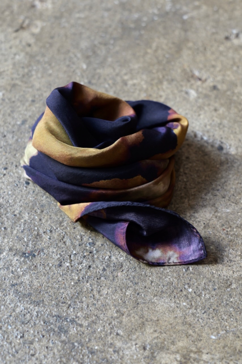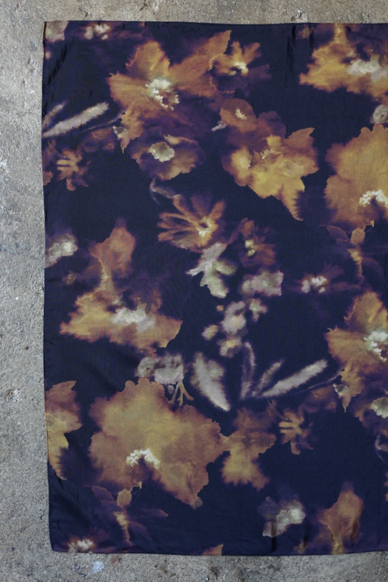 Scarf009. Scarf Silk Cupla Flower Print. Brown Print. Collection 006. calmlence.