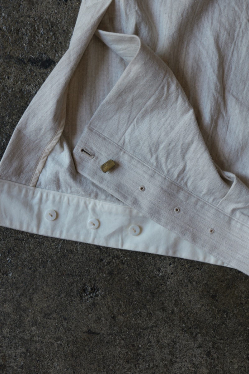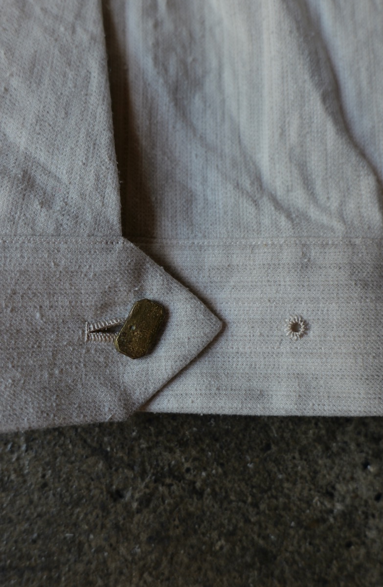 コットン別布による見返しや、手仕事による菊穴処理(画像14,15枚目参照)