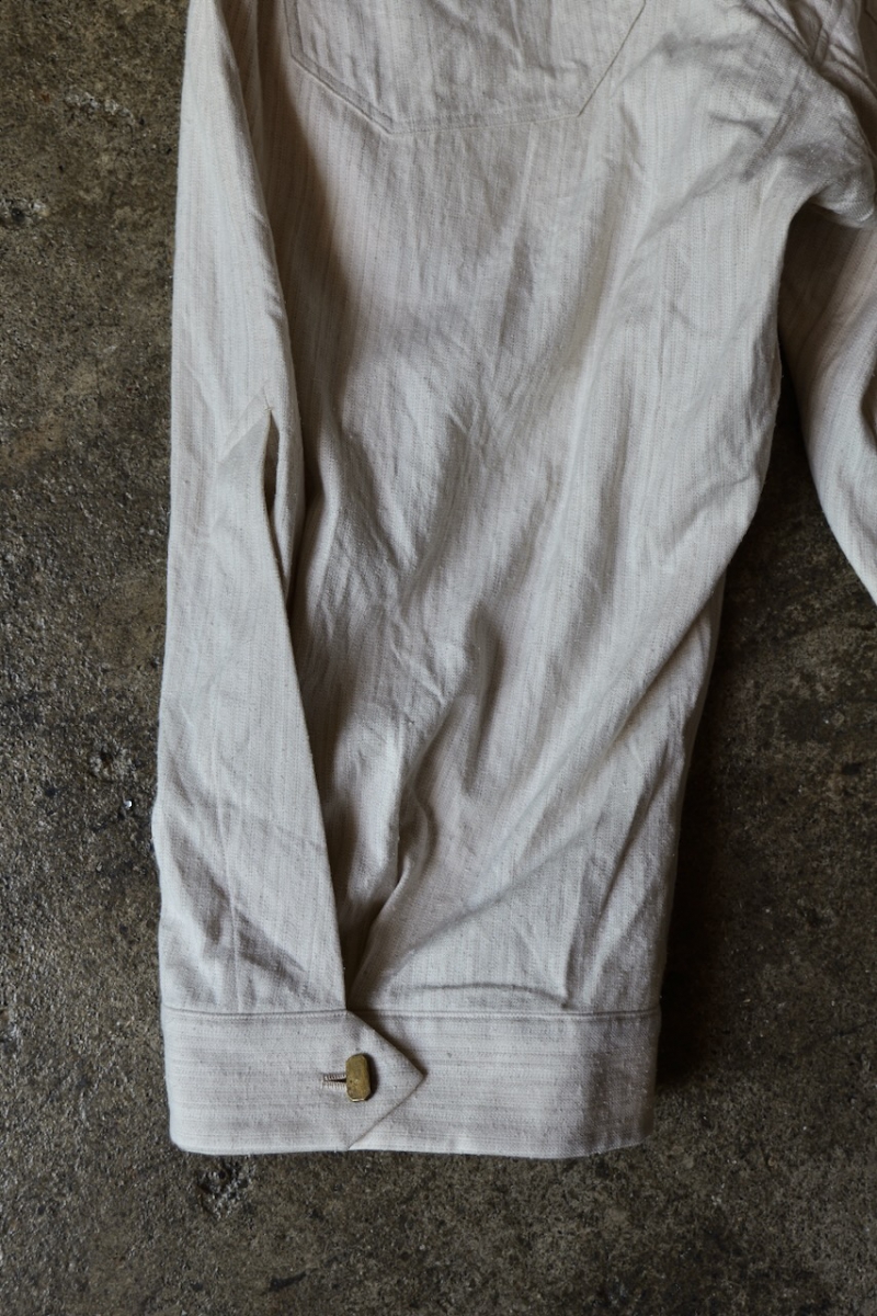 ボタンはハンドシェイピングとエイジング加工されたブラス(真鍮)ボタンを使用。