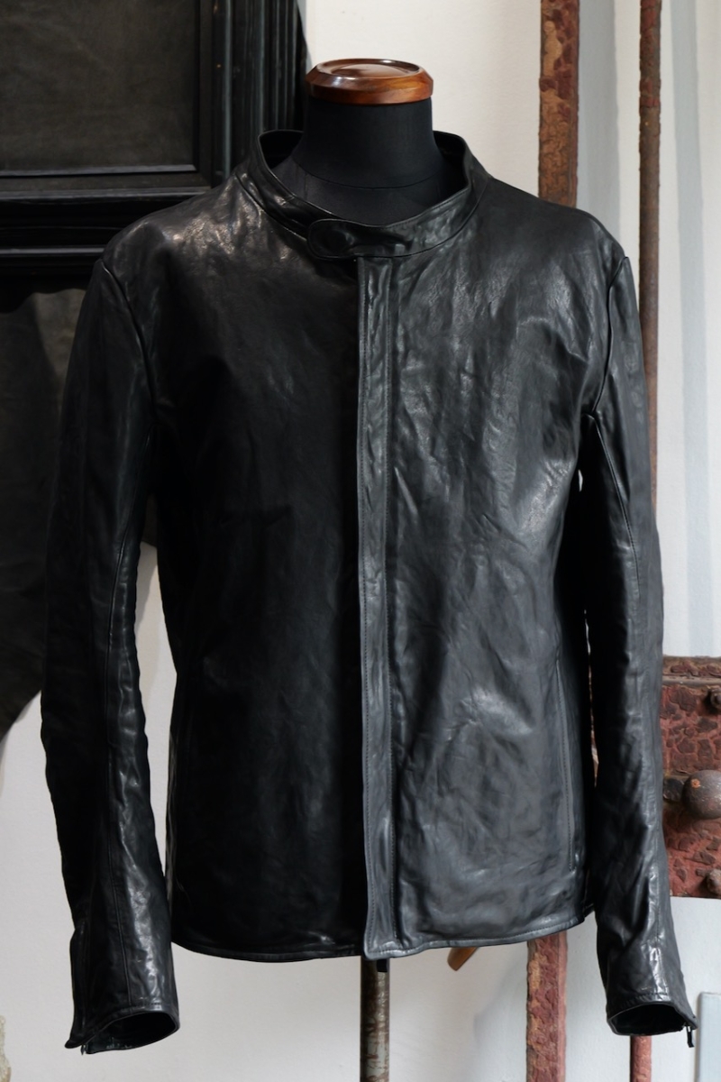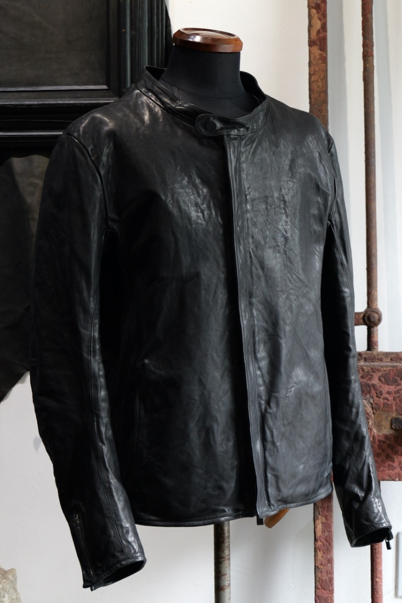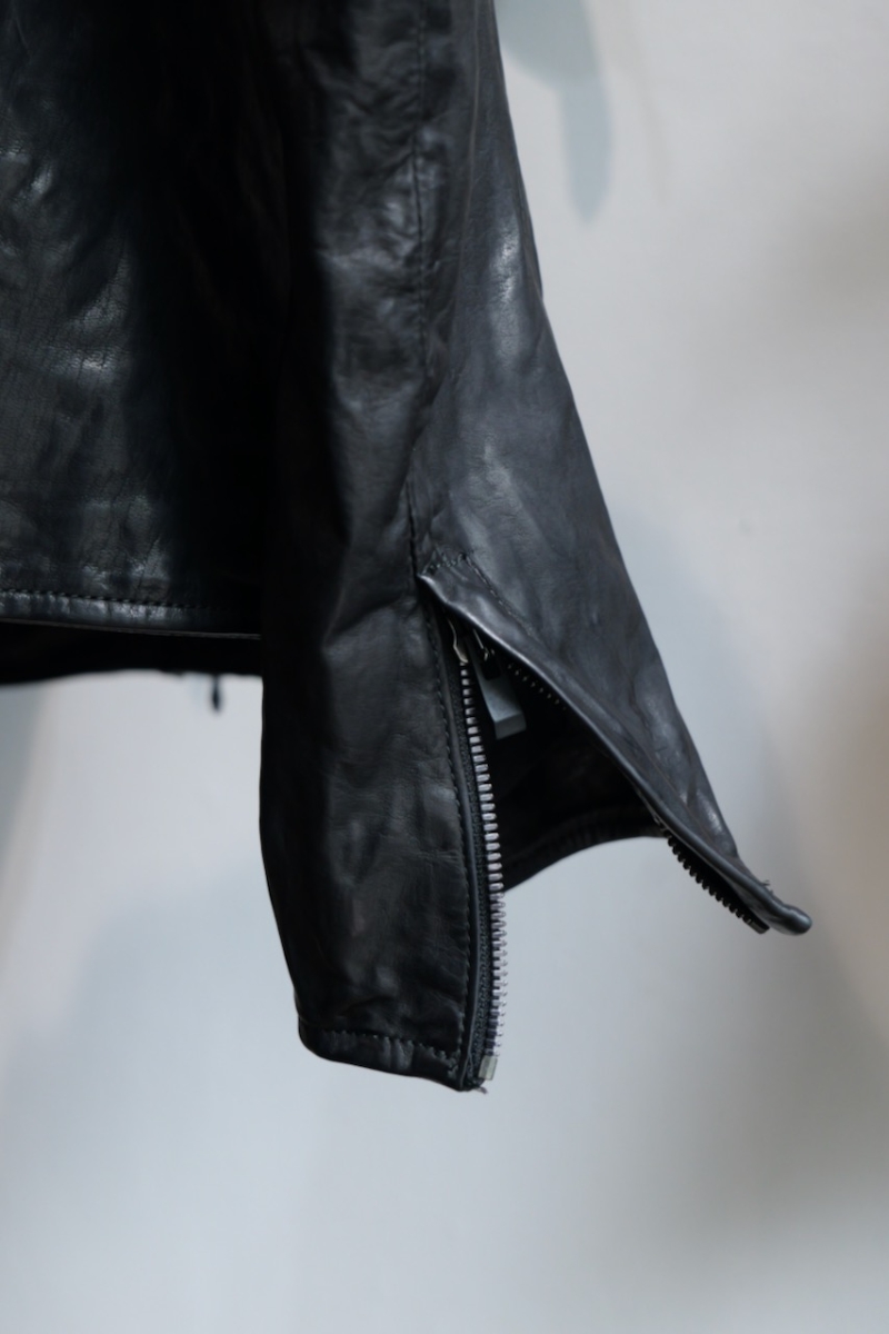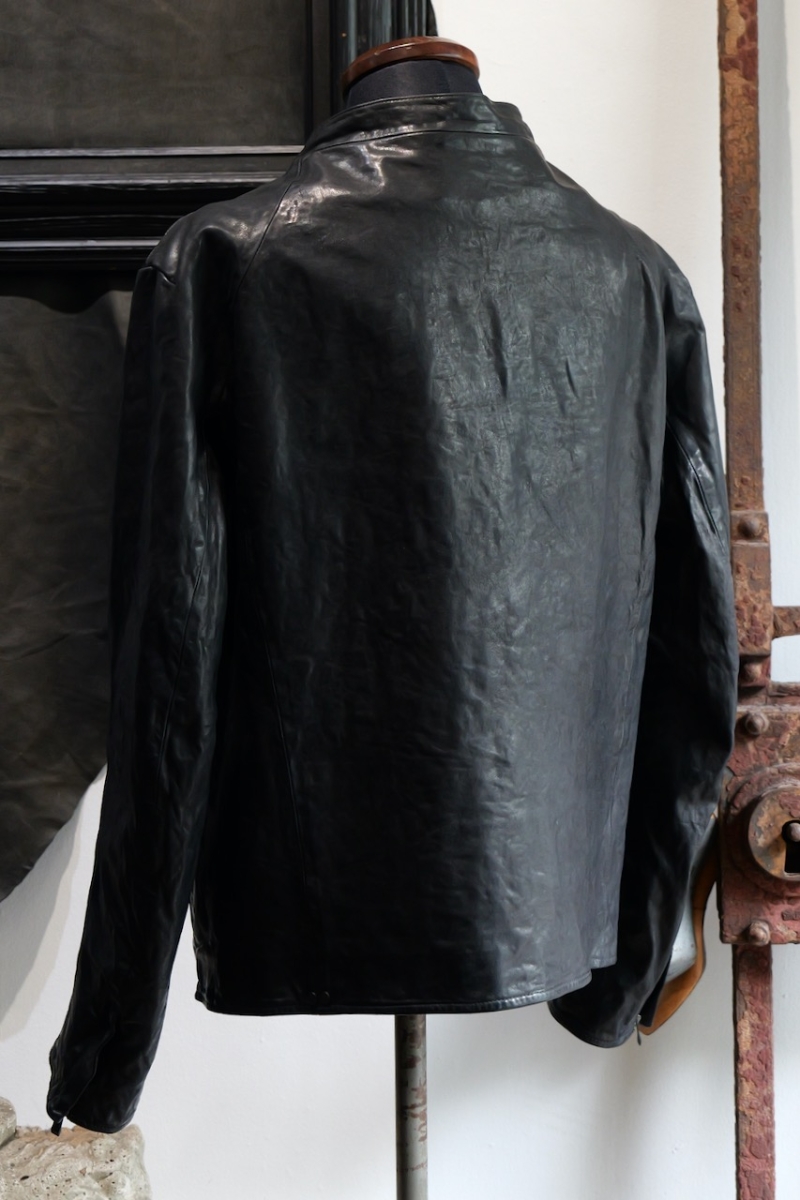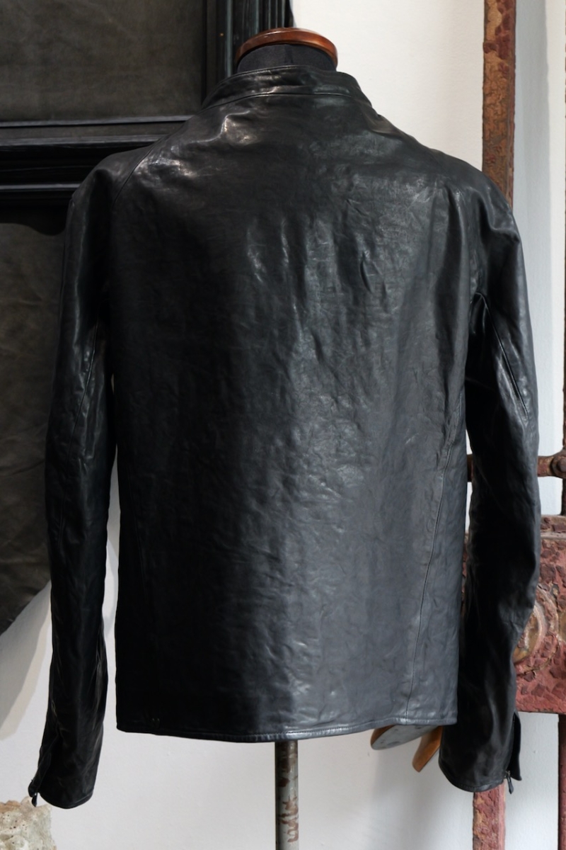 贅沢に背中には1枚革を使い、革を丸ごと着る事で自身の体に吸い付く様にフィットしていきます。