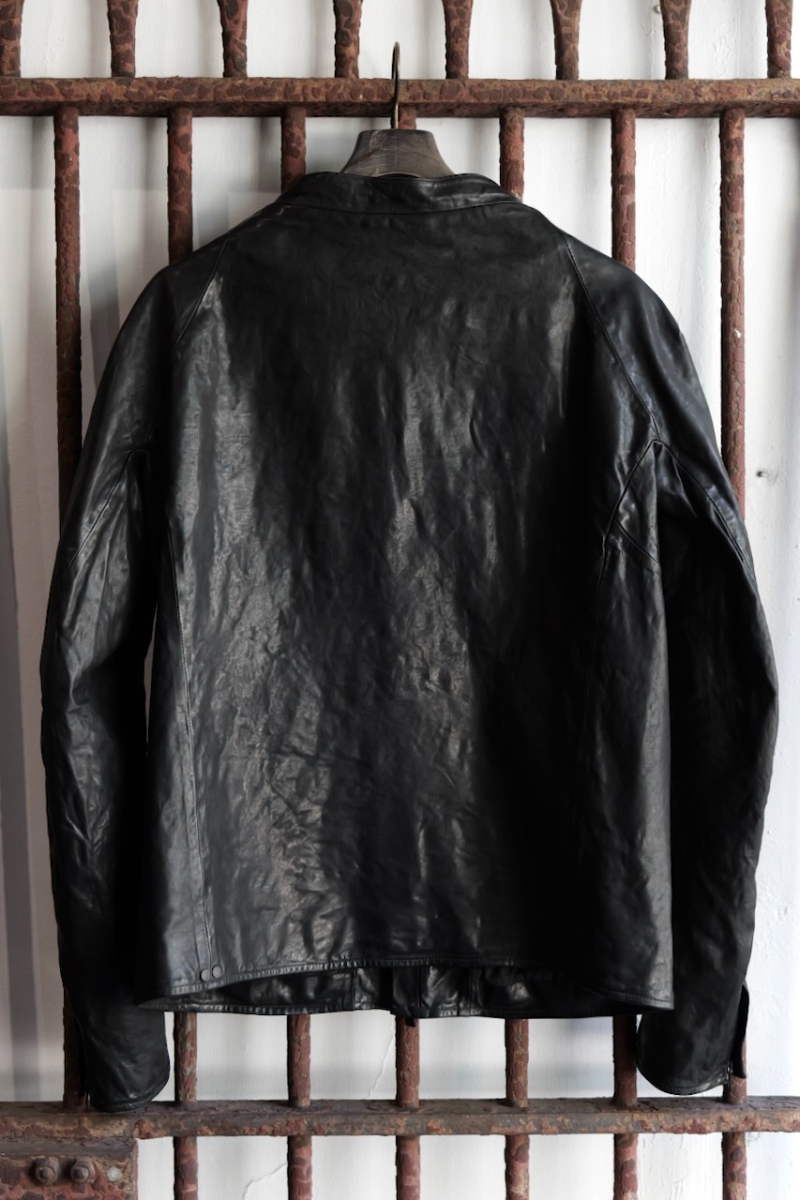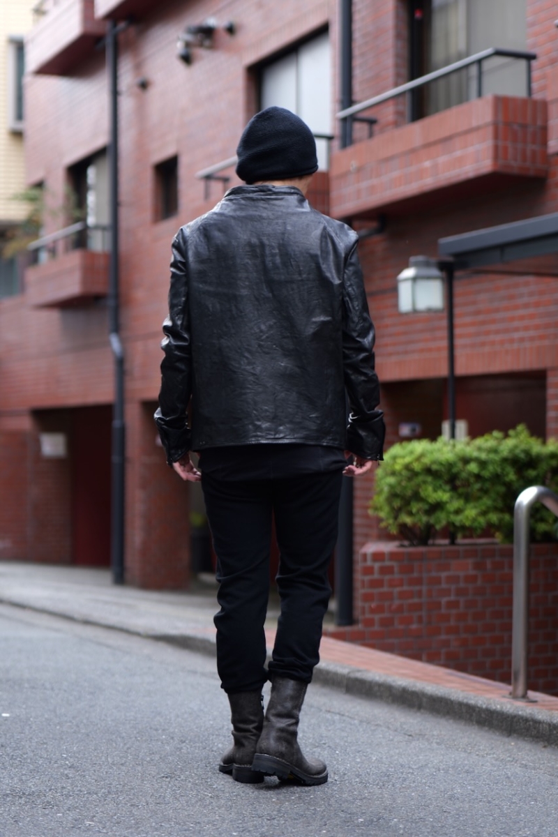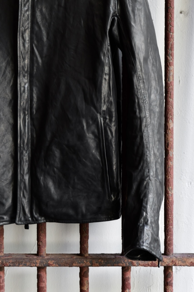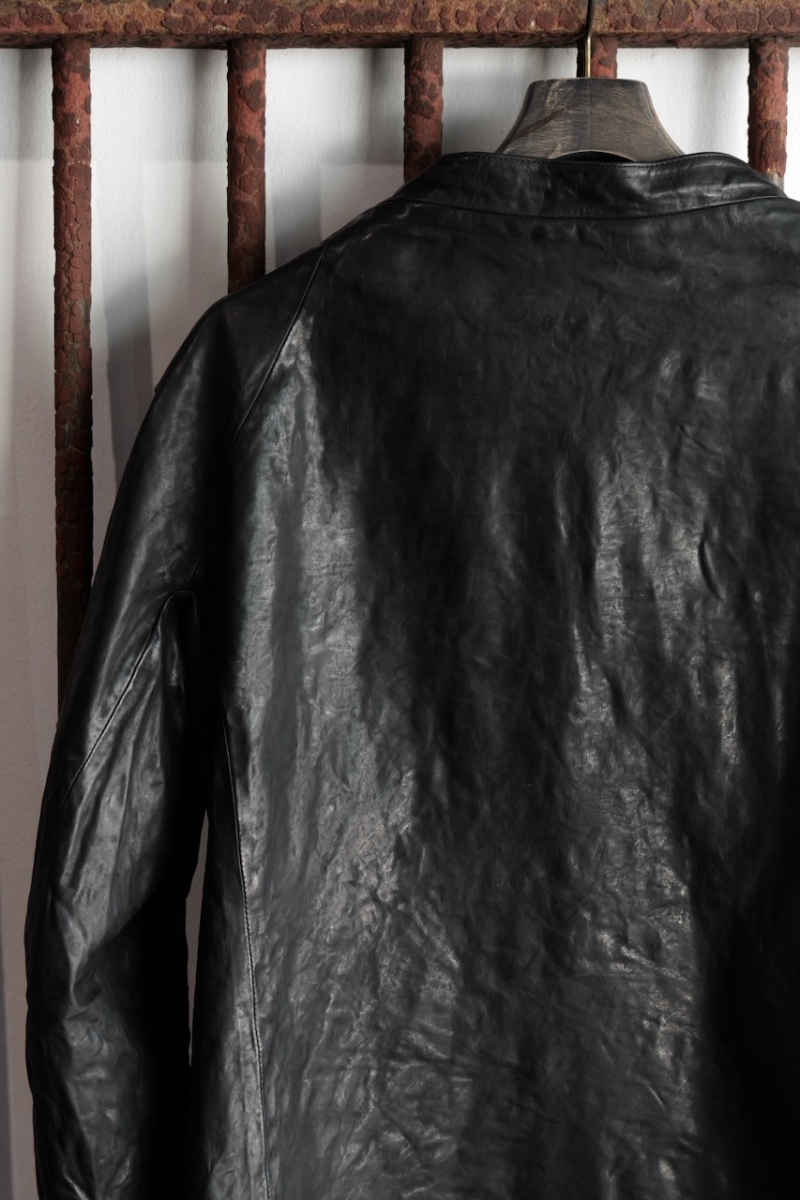 贅沢に背中には1枚革を使い、革を丸ごと着る事で自身の体に吸い付く様にフィットしていきます。