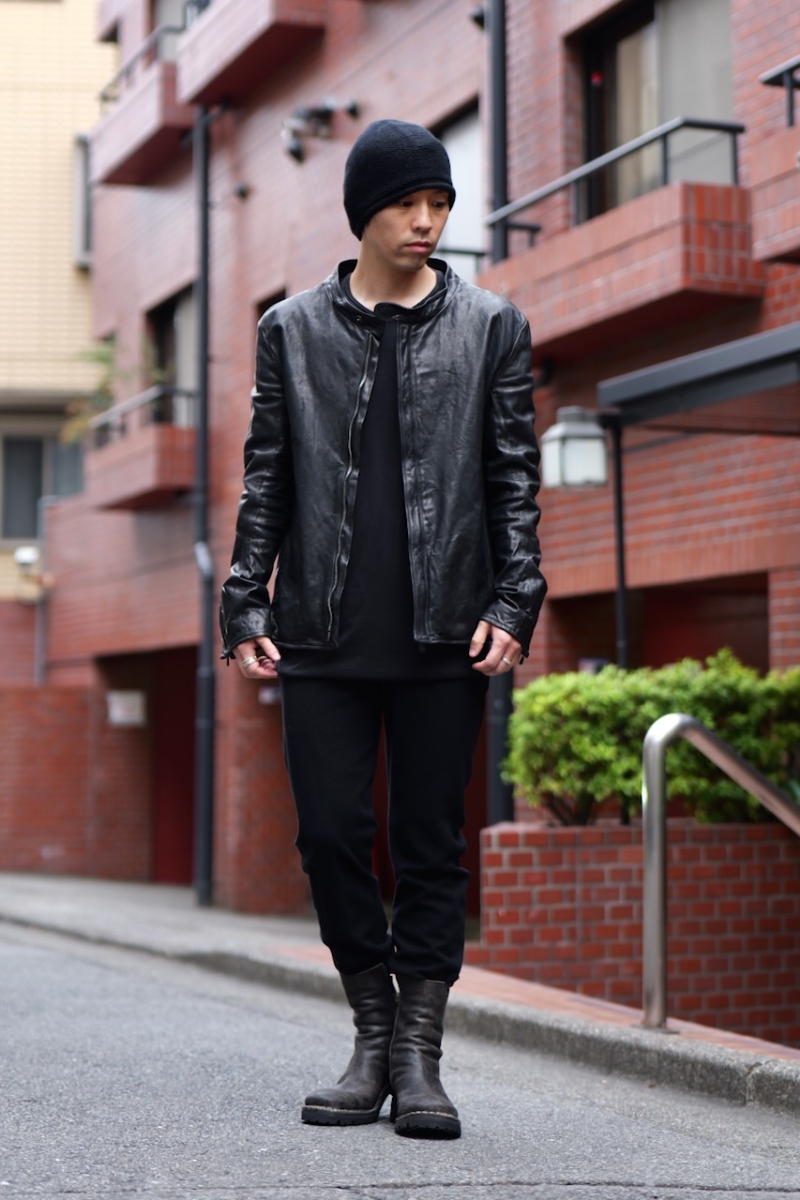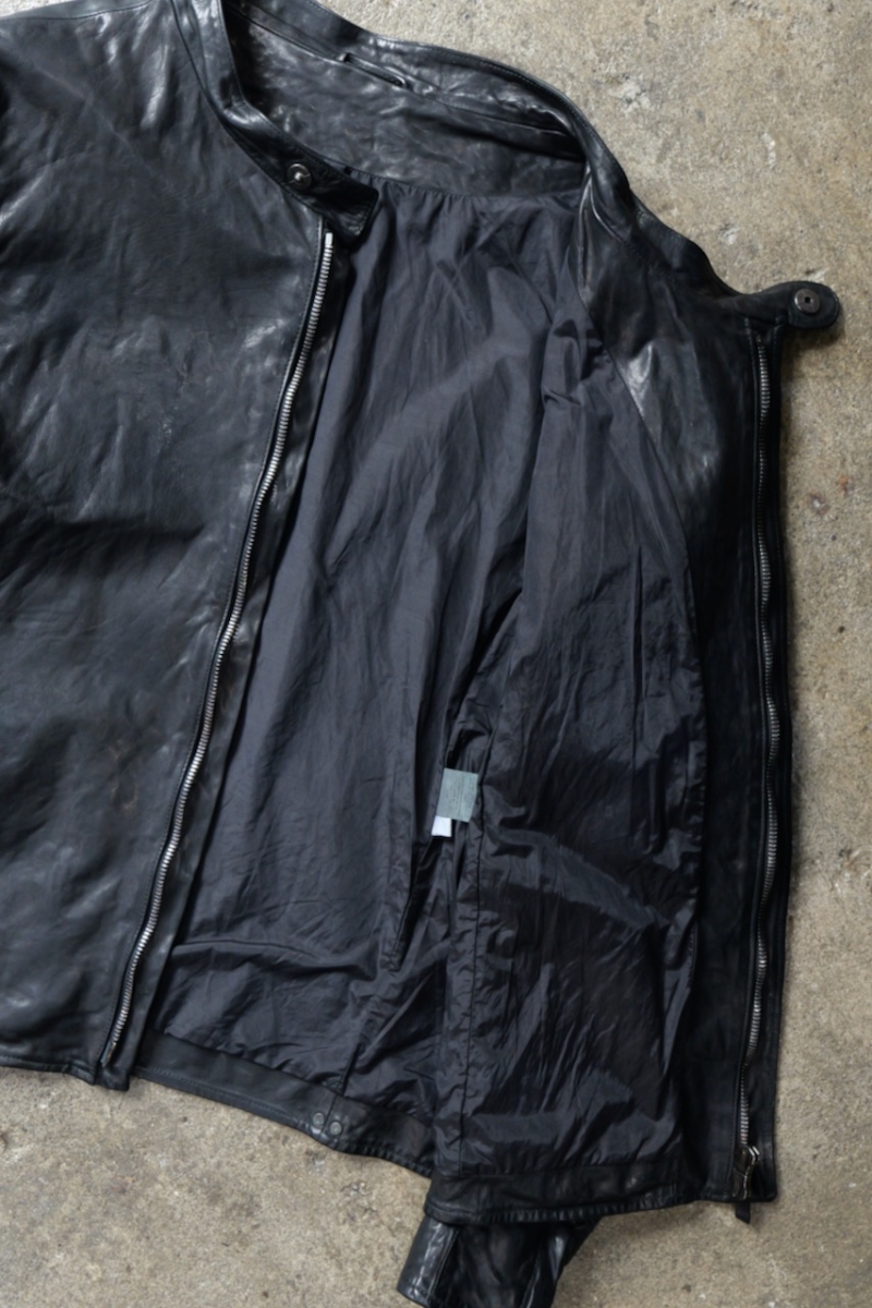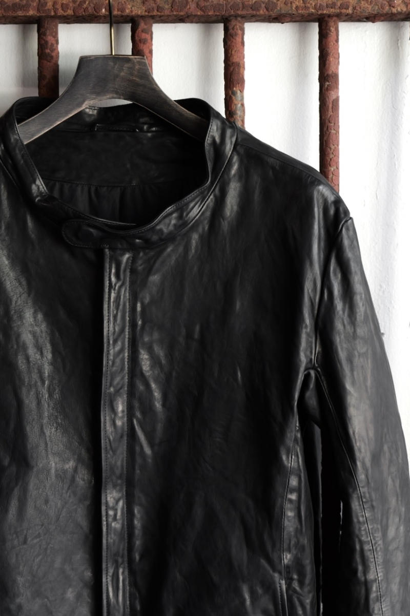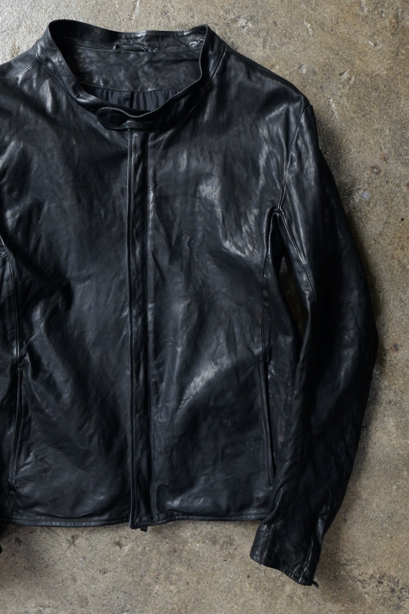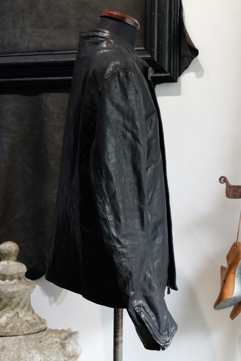 贅沢に背中には1枚革を使い、革を丸ごと着る事で自身の体に吸い付く様にフィットしていきます。