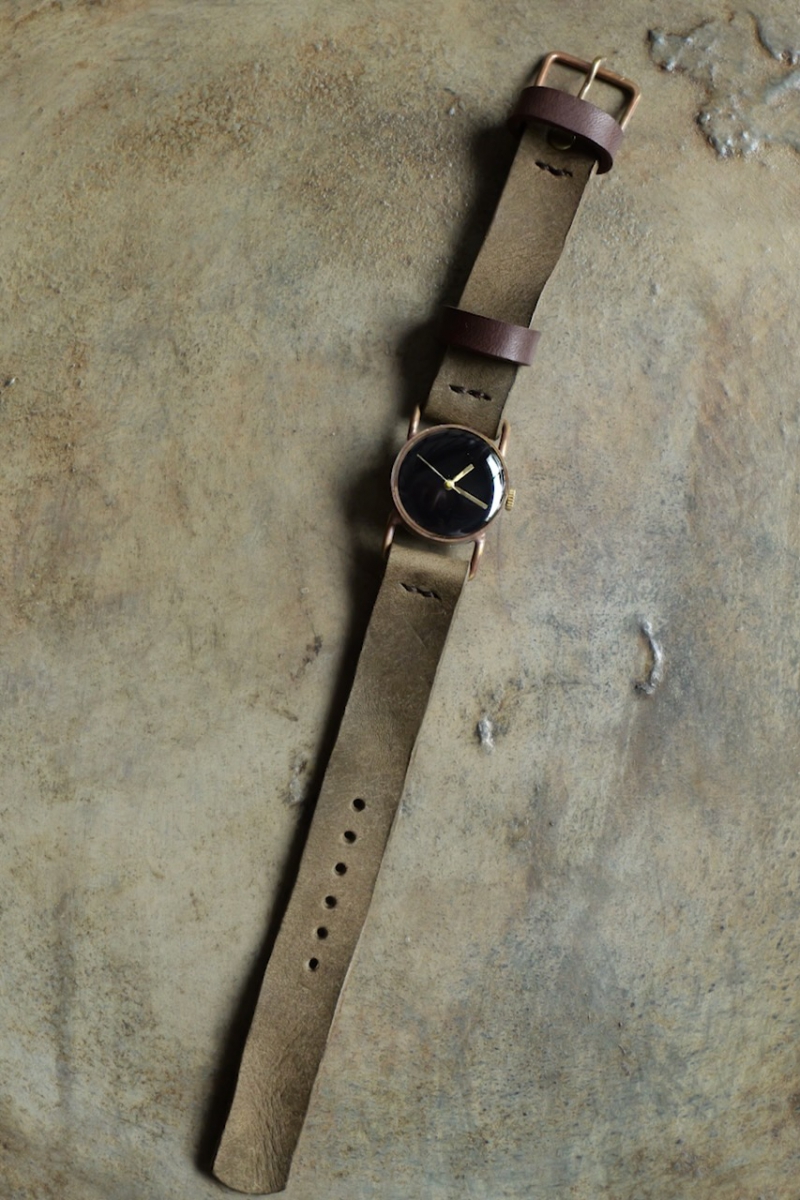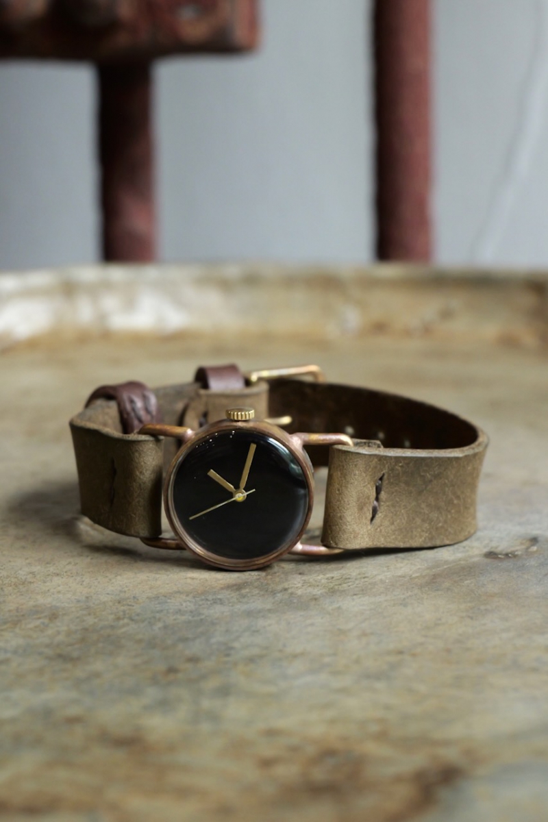 アンティークな雰囲気が漂う印象深いハンドメイドウォッチ。
