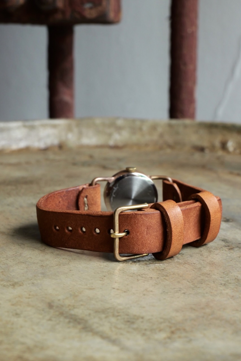 ・ベルト部分の革も質感・色味に拘り、カットから時計に合わせて作られています。