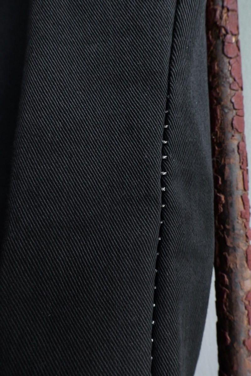 縫い目の一部にオーバーロックステッチを採用しているので、着用すると縫い目が開き