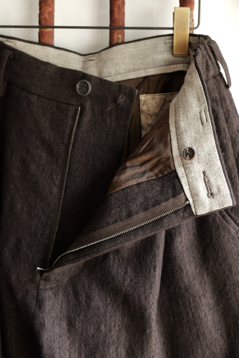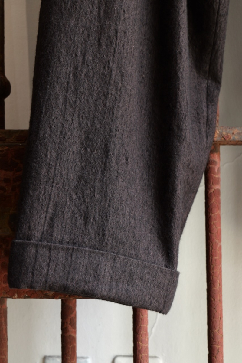 裾はスーツパンツのようなダブル仕立てに見えますが、縫製方法は全く異なり