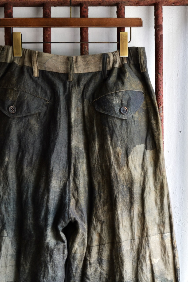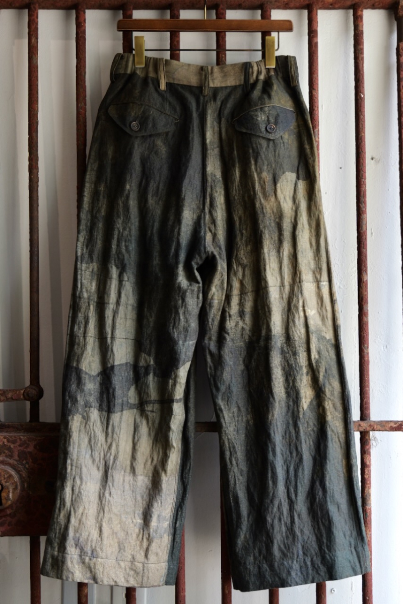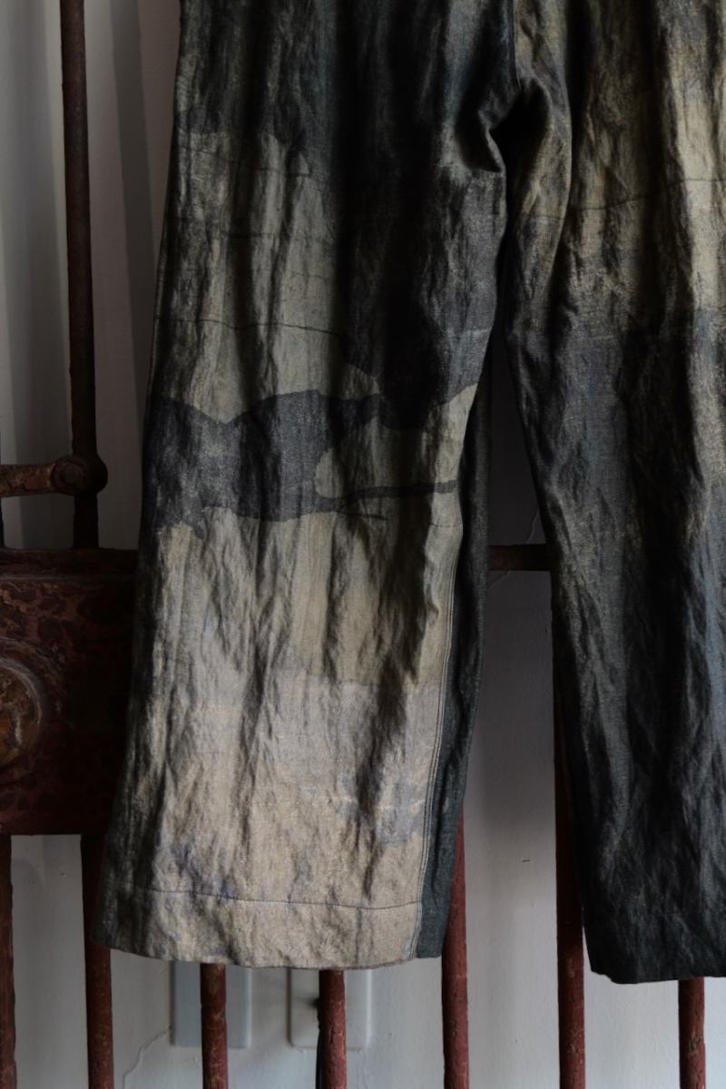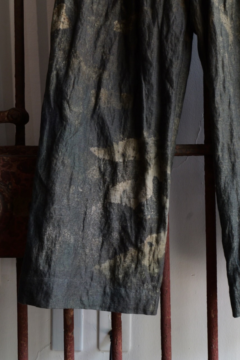 今回のコレクション限定のオリジナルプリントをした後に、さらにコールドダイ(低温染色)と