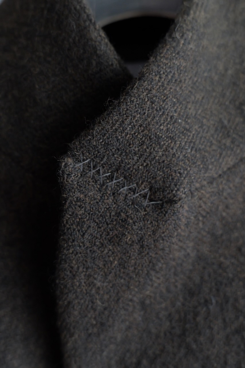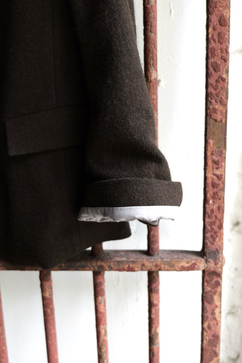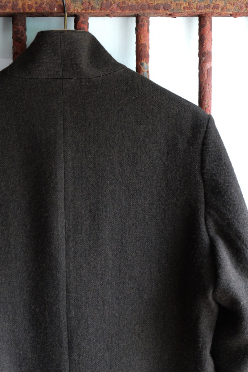 太番手の紡毛糸をヘリンボーン組織で織り上げ、