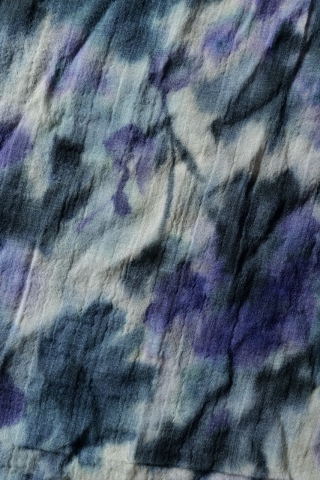 染色のムラと生地の凹凸、硬さのある風合いを出しています。