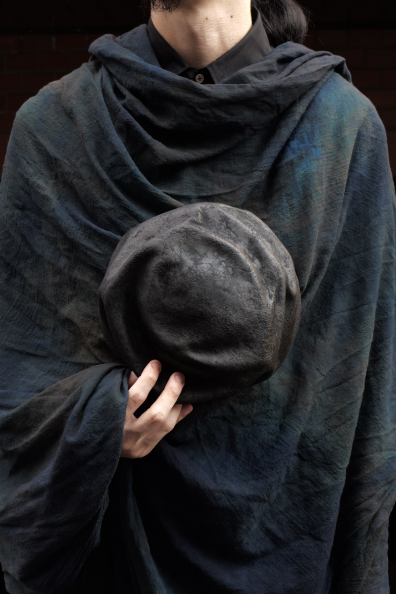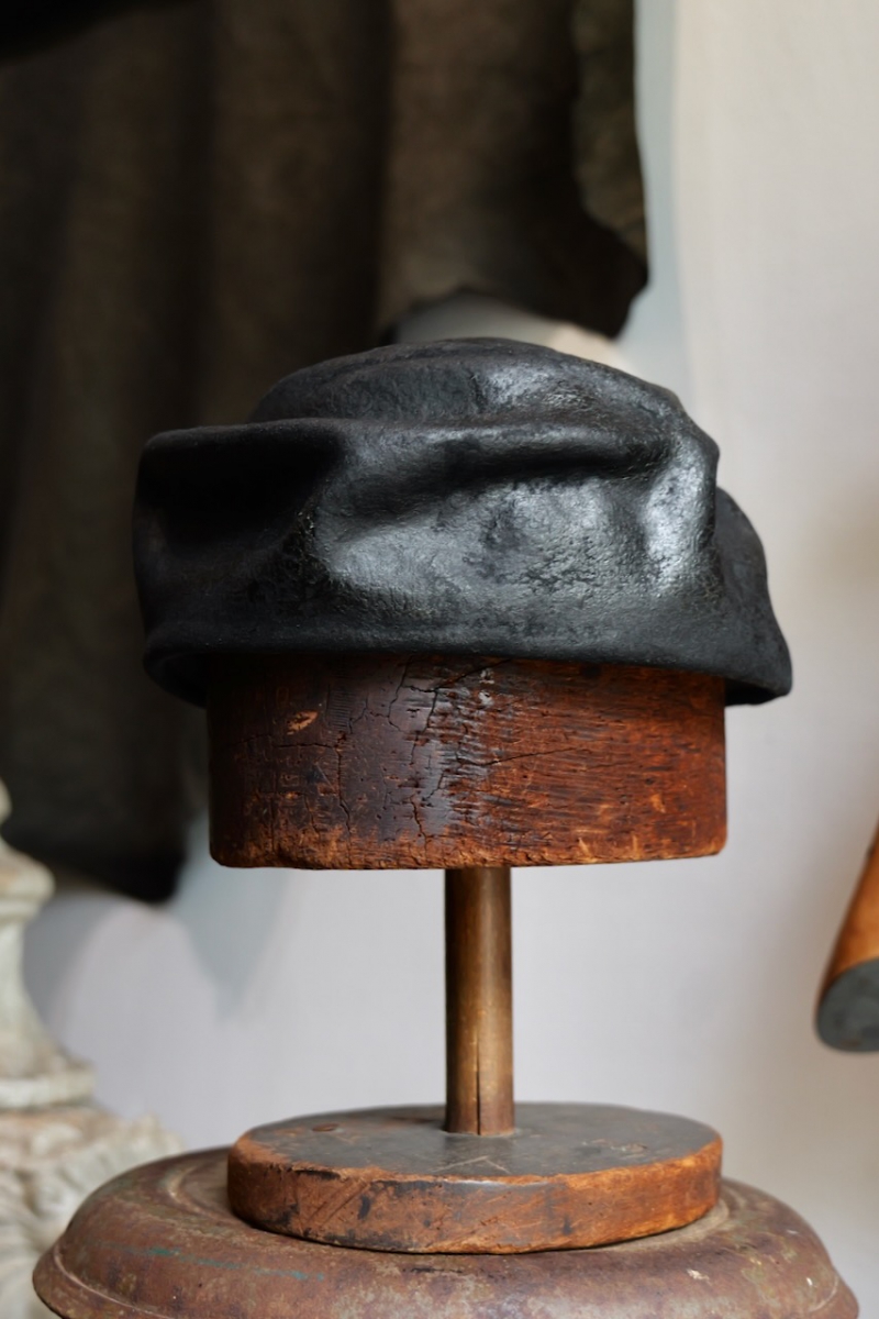 この作品は着用を重ねるうちに、自然に被る方の頭の形に馴染んでいきます。