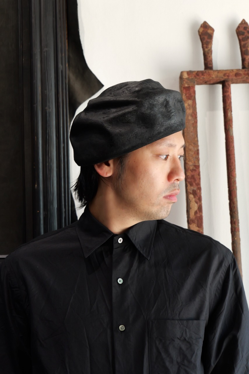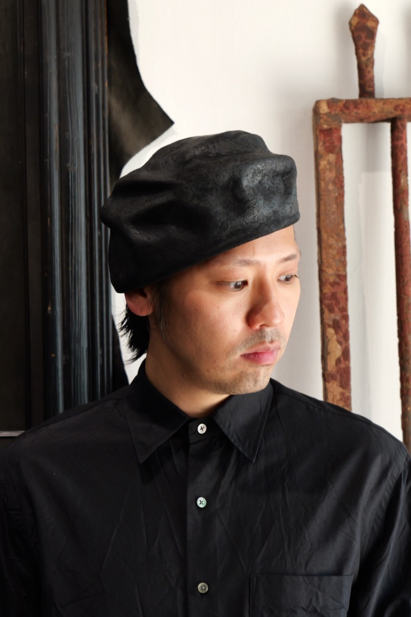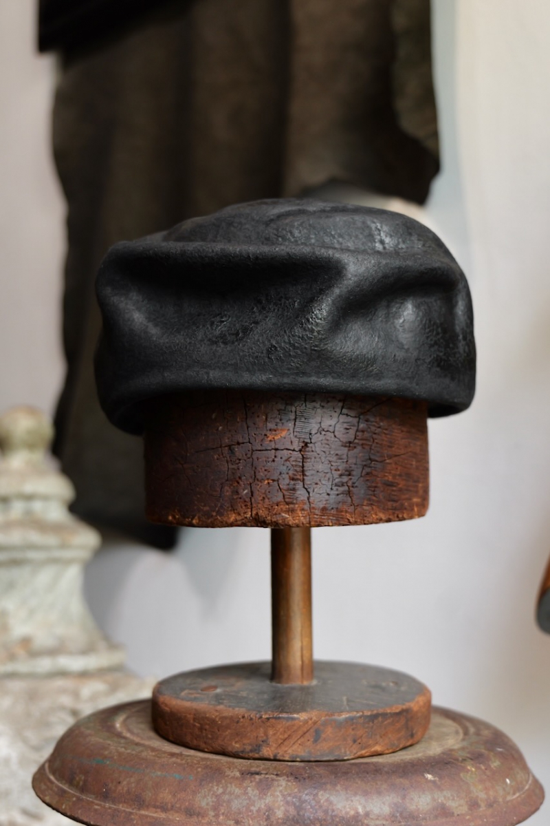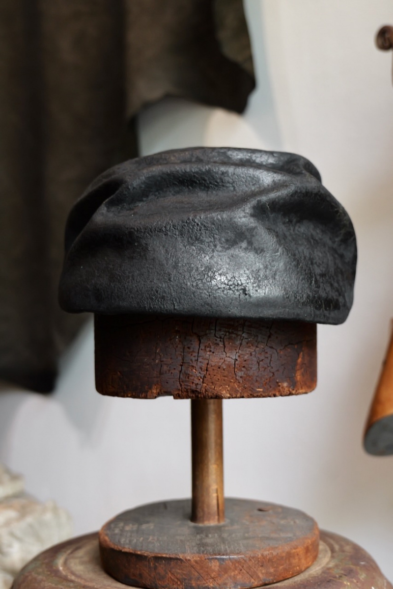 この工程により、帽子は革のような質感と豊かな有機的な変化を帯びます。