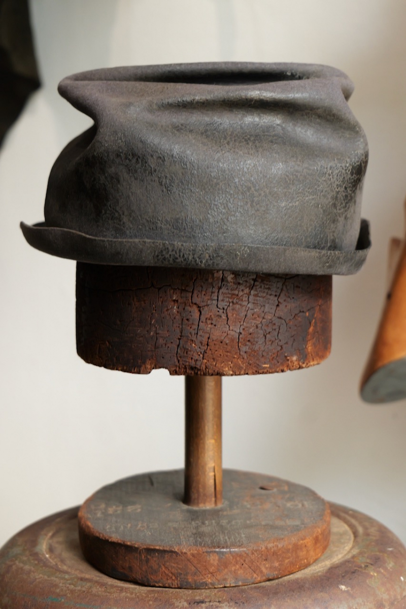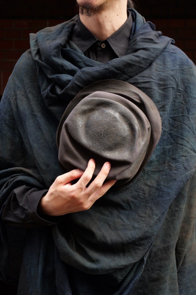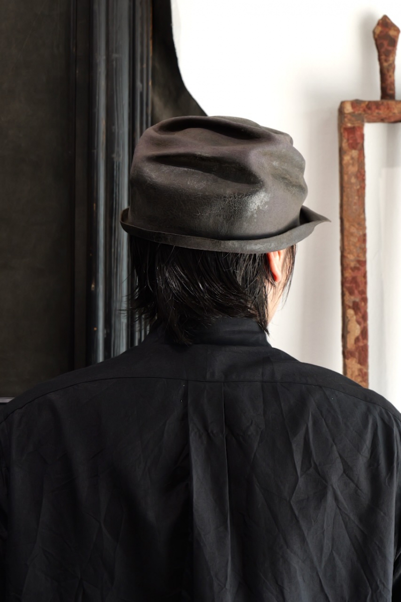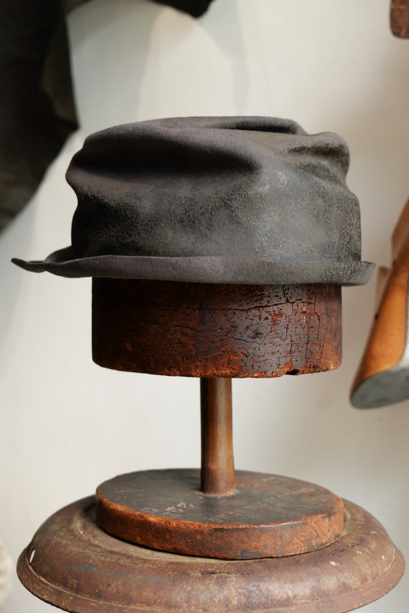 この工程により、帽子は革のような質感と豊かな有機的な変化を帯びます。
