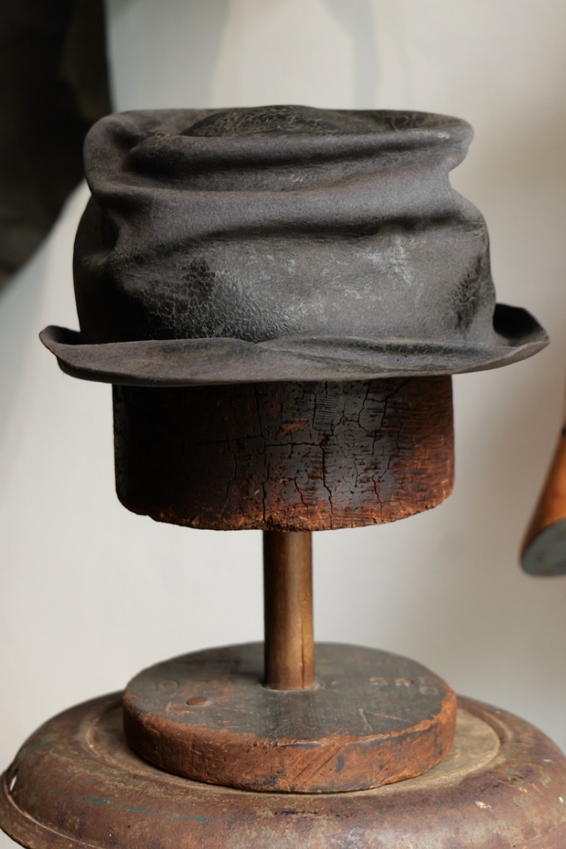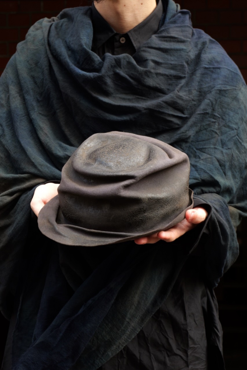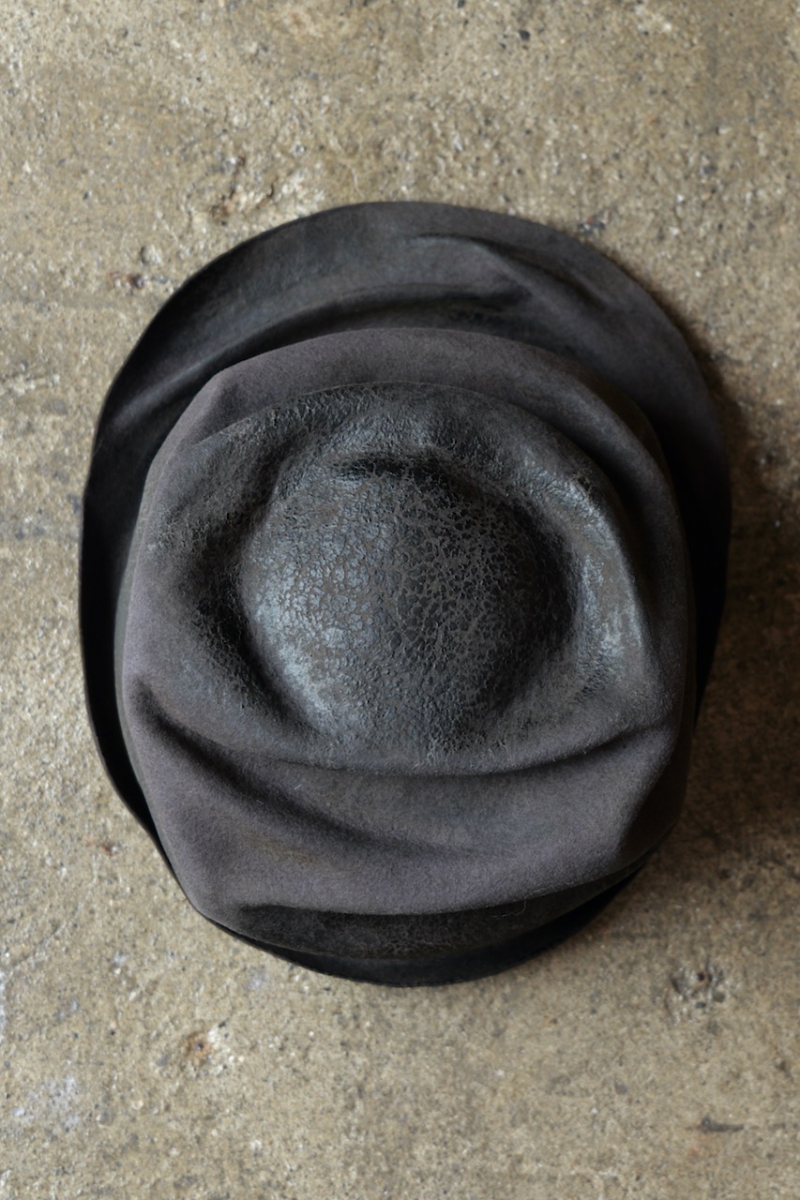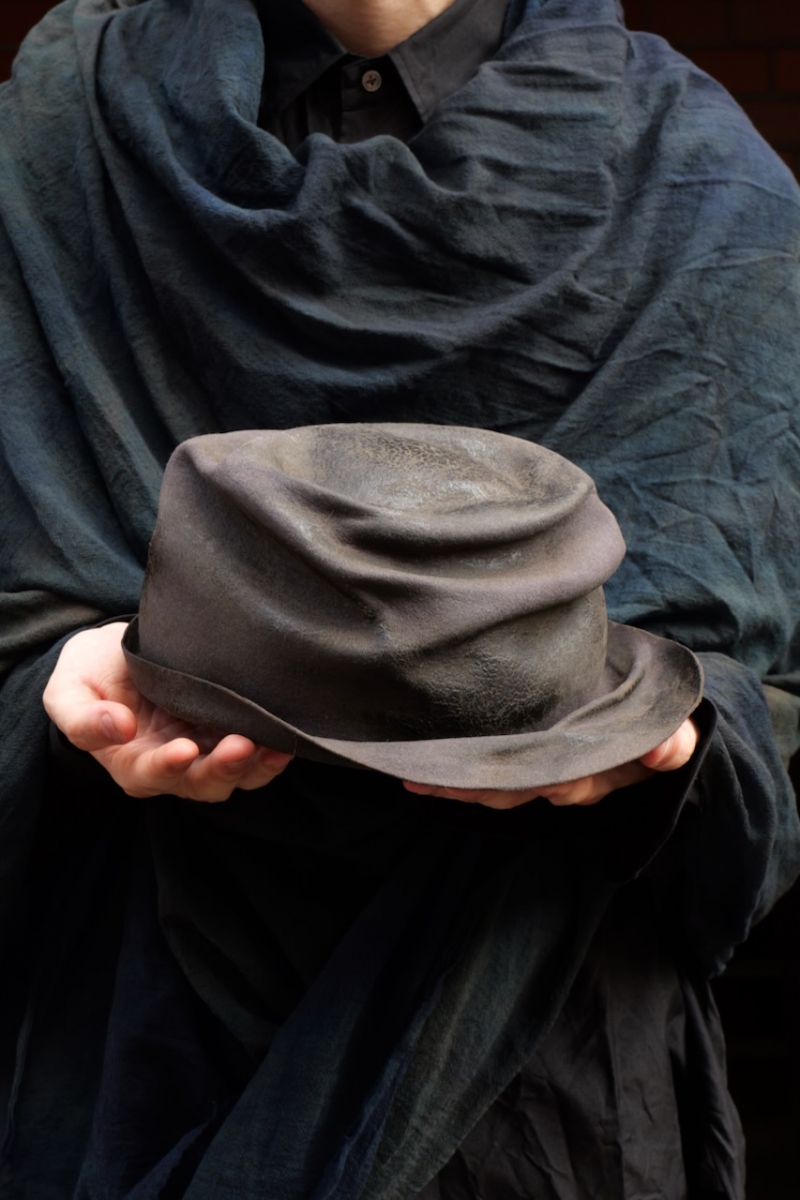 この工程により、帽子は革のような質感と豊かな有機的な変化を帯びます。