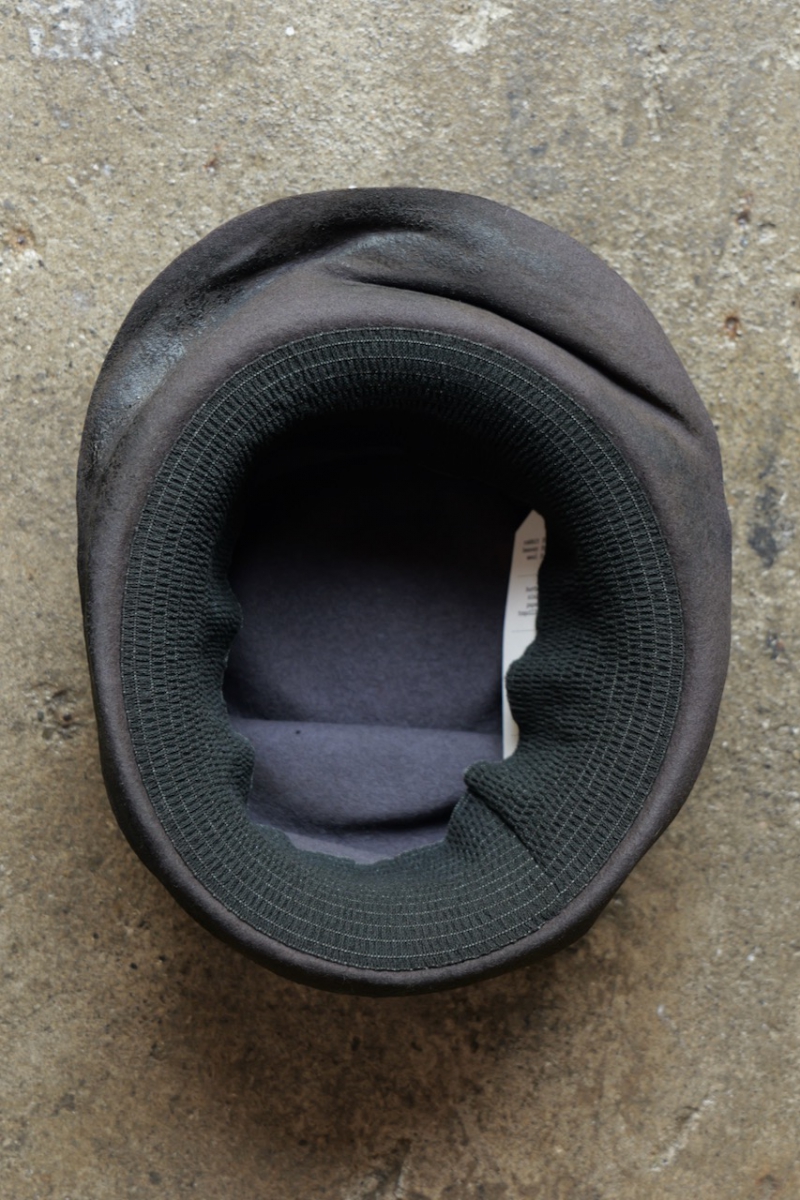 この作品は着用を重ねるうちに、自然に被る方の頭の形に馴染んでいきます。