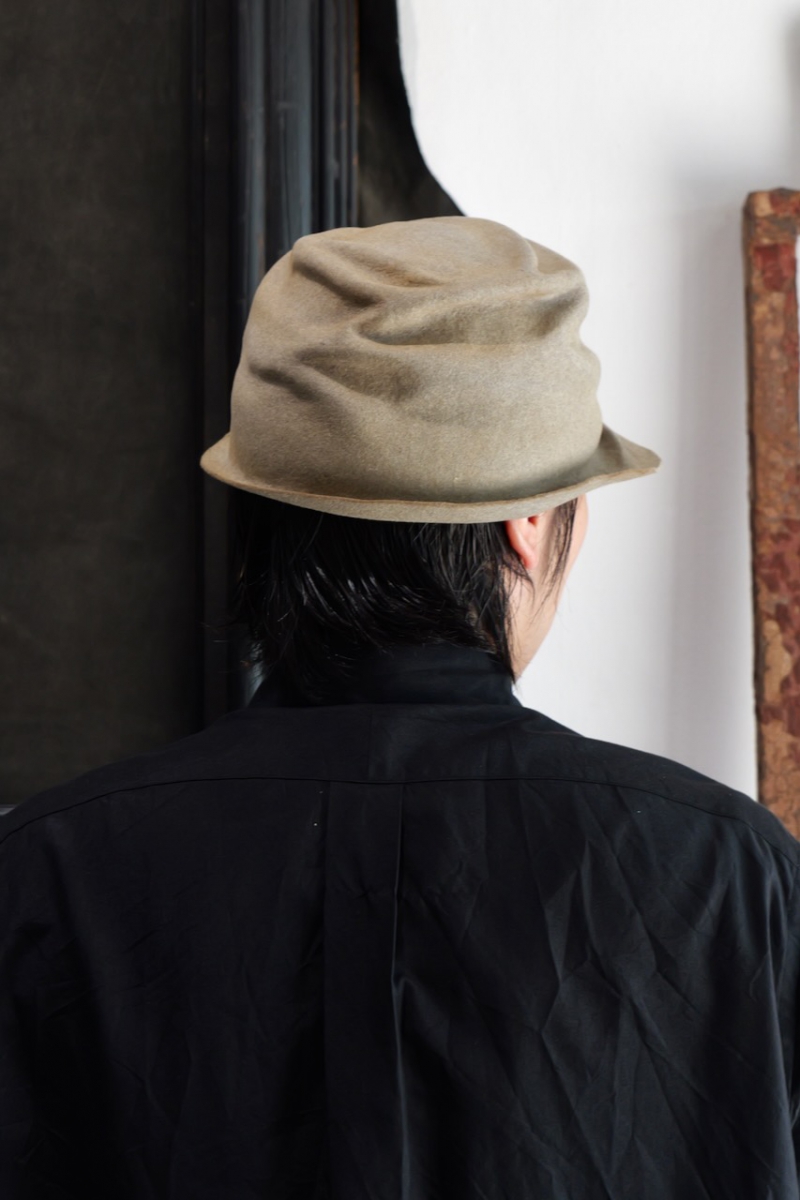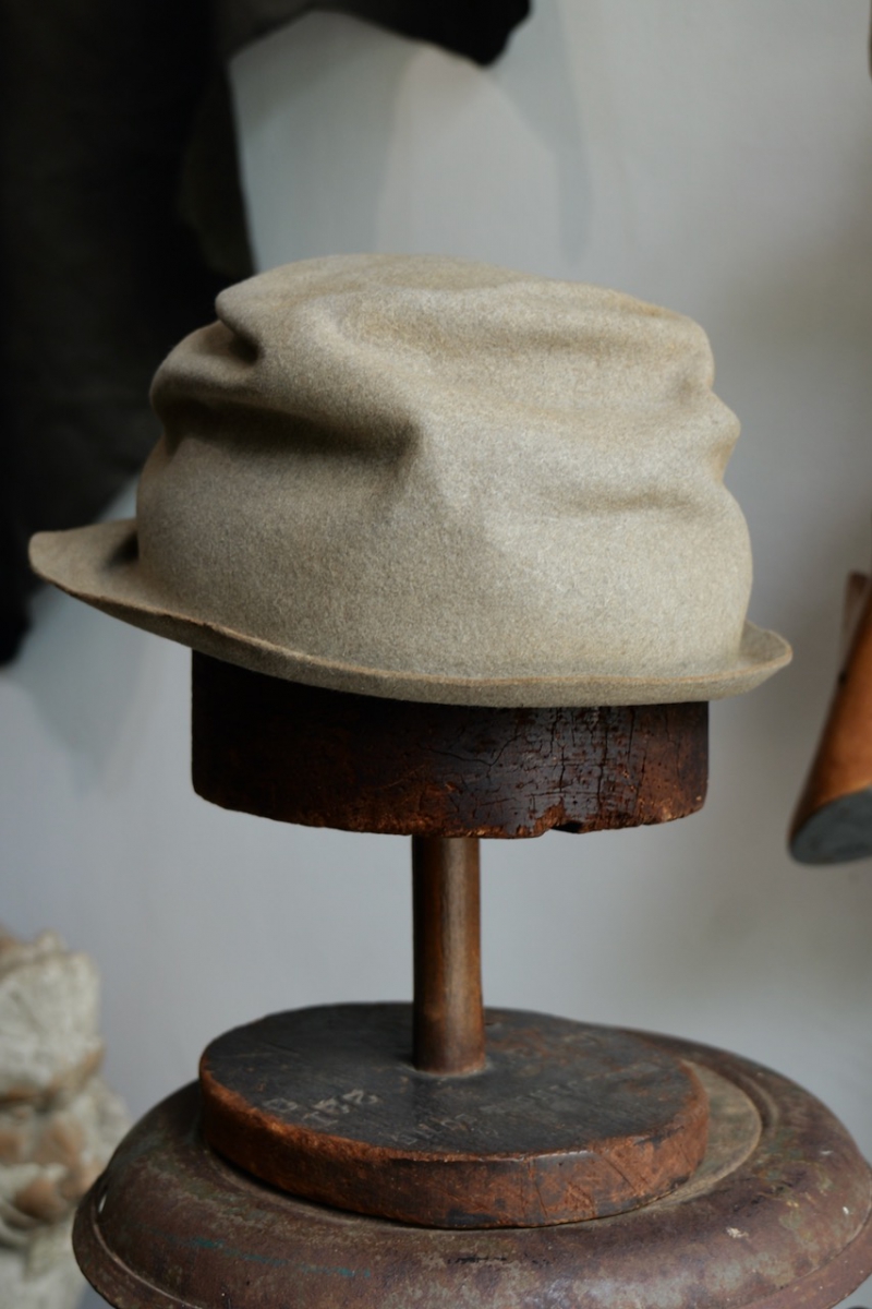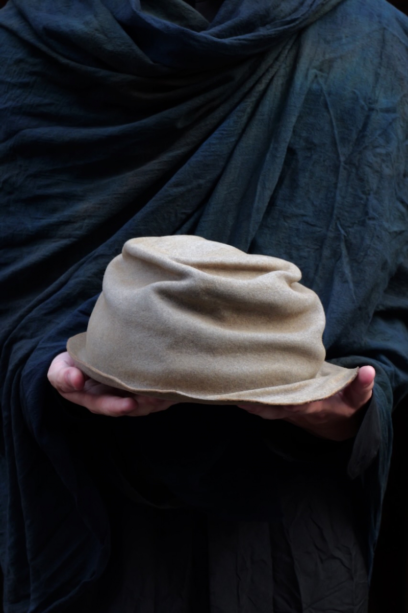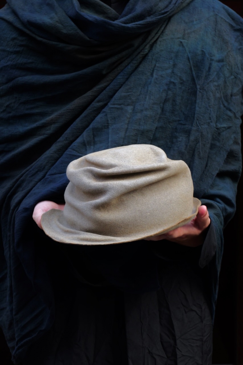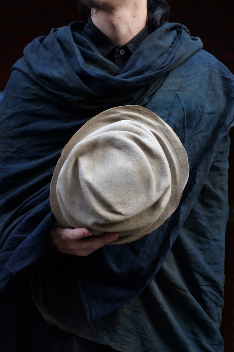この作品は着用を重ねるうちに、自然に被る方の頭の形に馴染んでいきます。