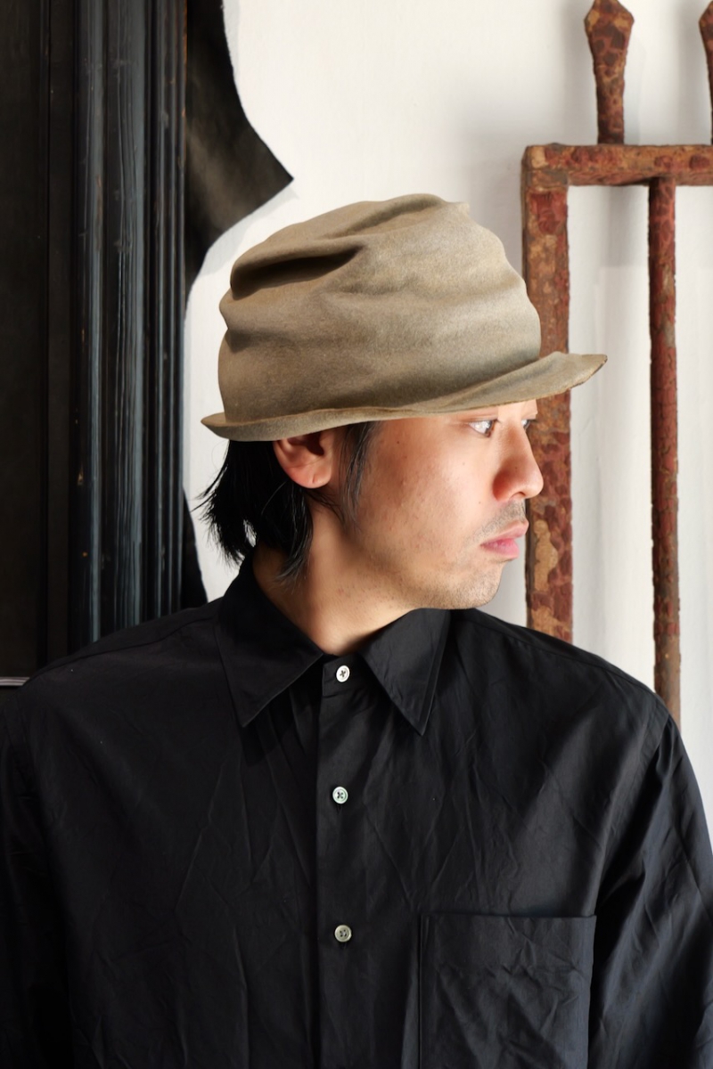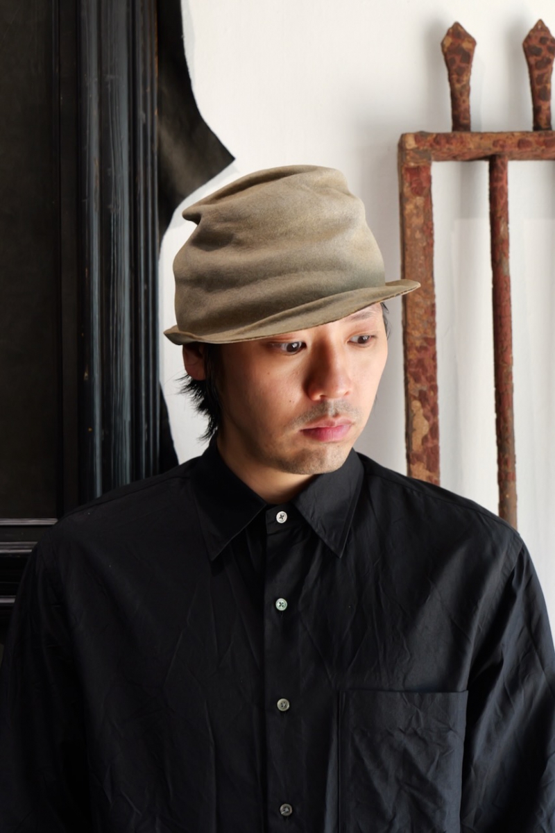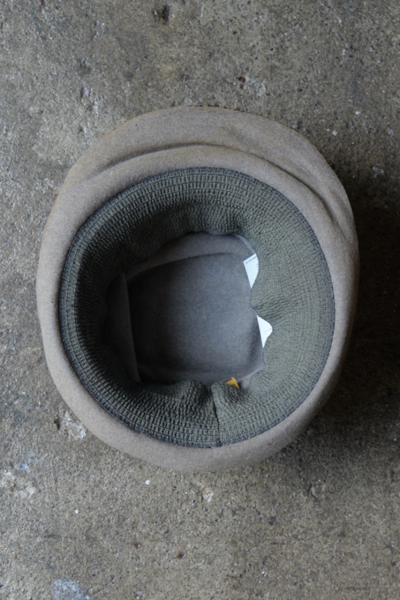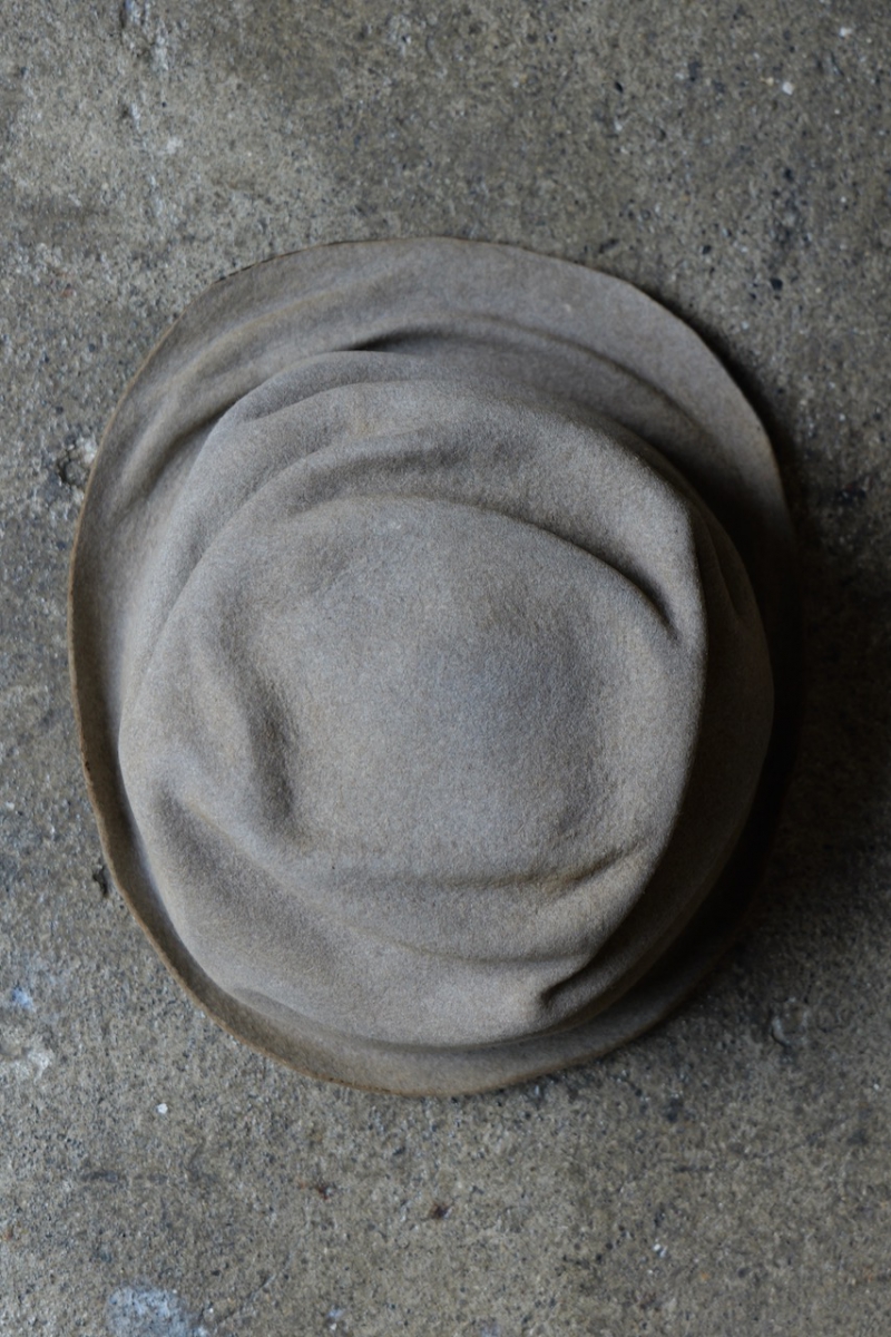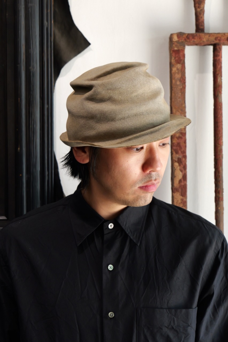 この作品は着用を重ねるうちに、自然に被る方の頭の形に馴染んでいきます。