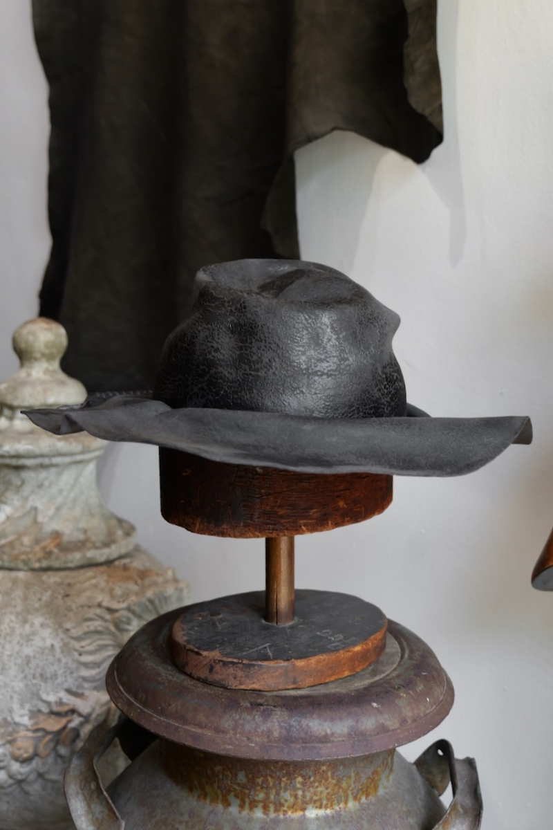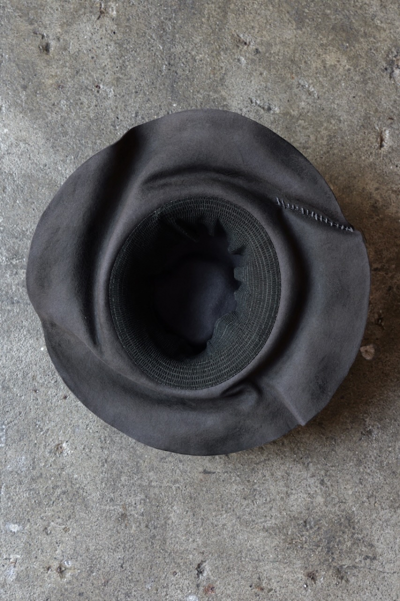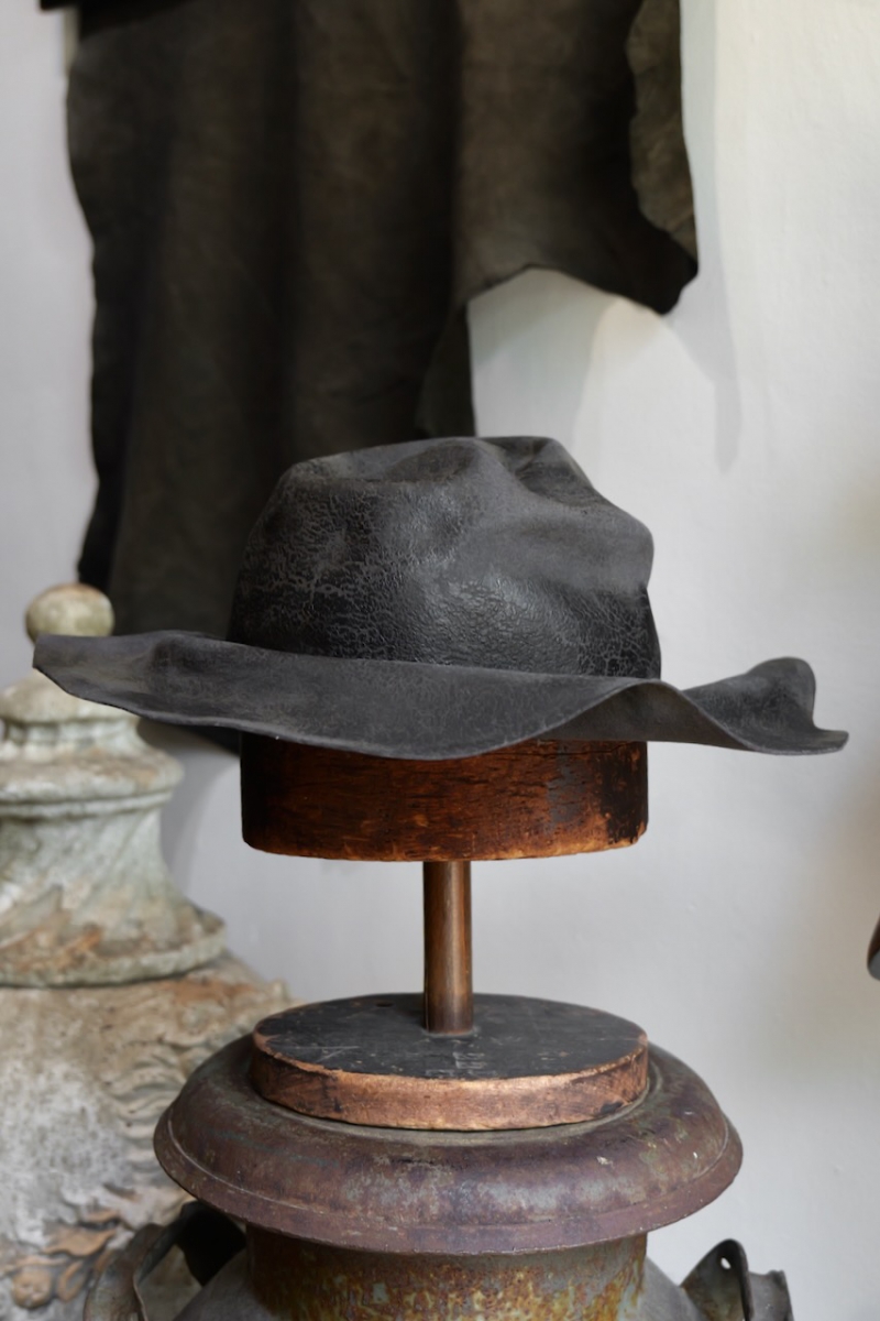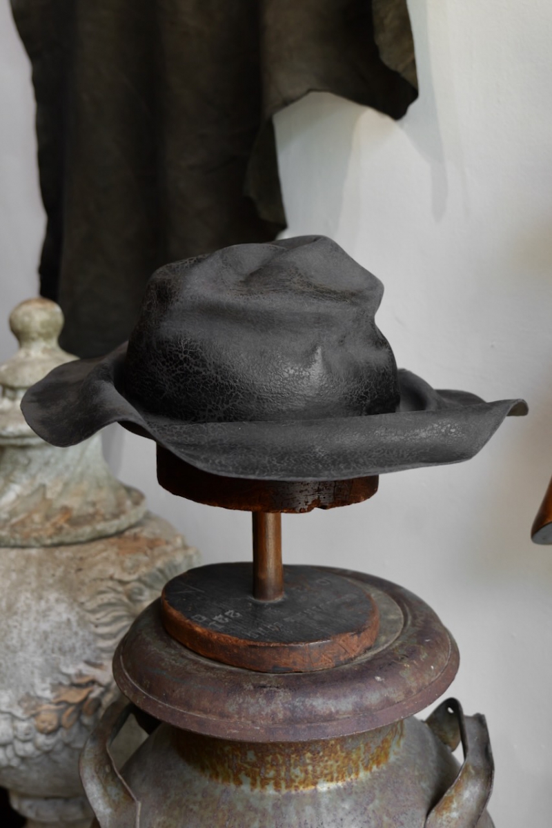 この工程により、帽子は革のような質感と豊かな有機的な変化を帯びます。