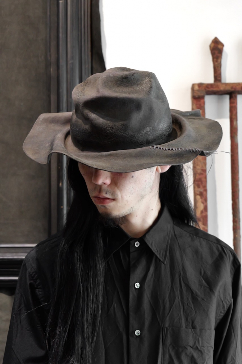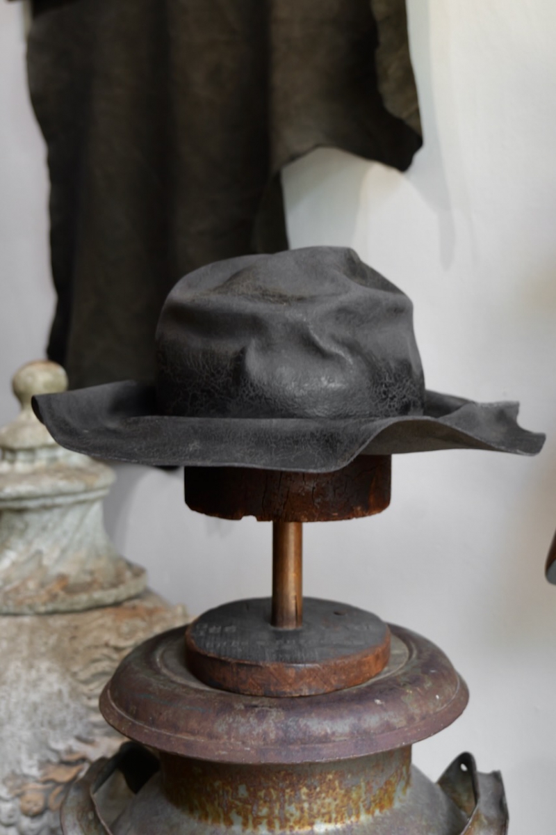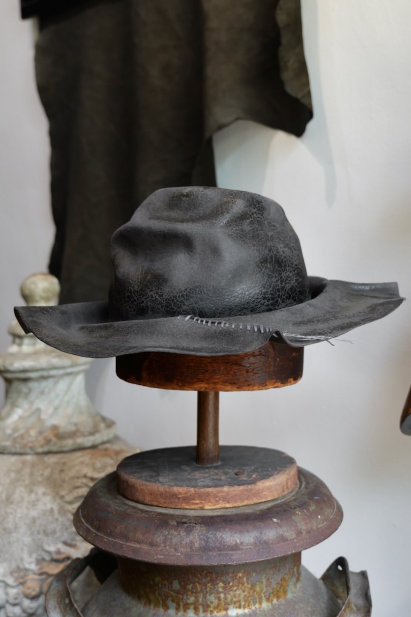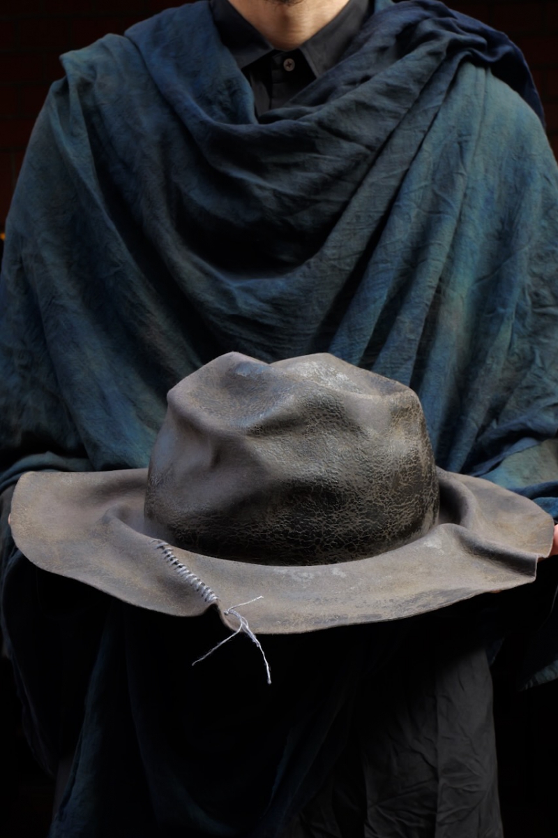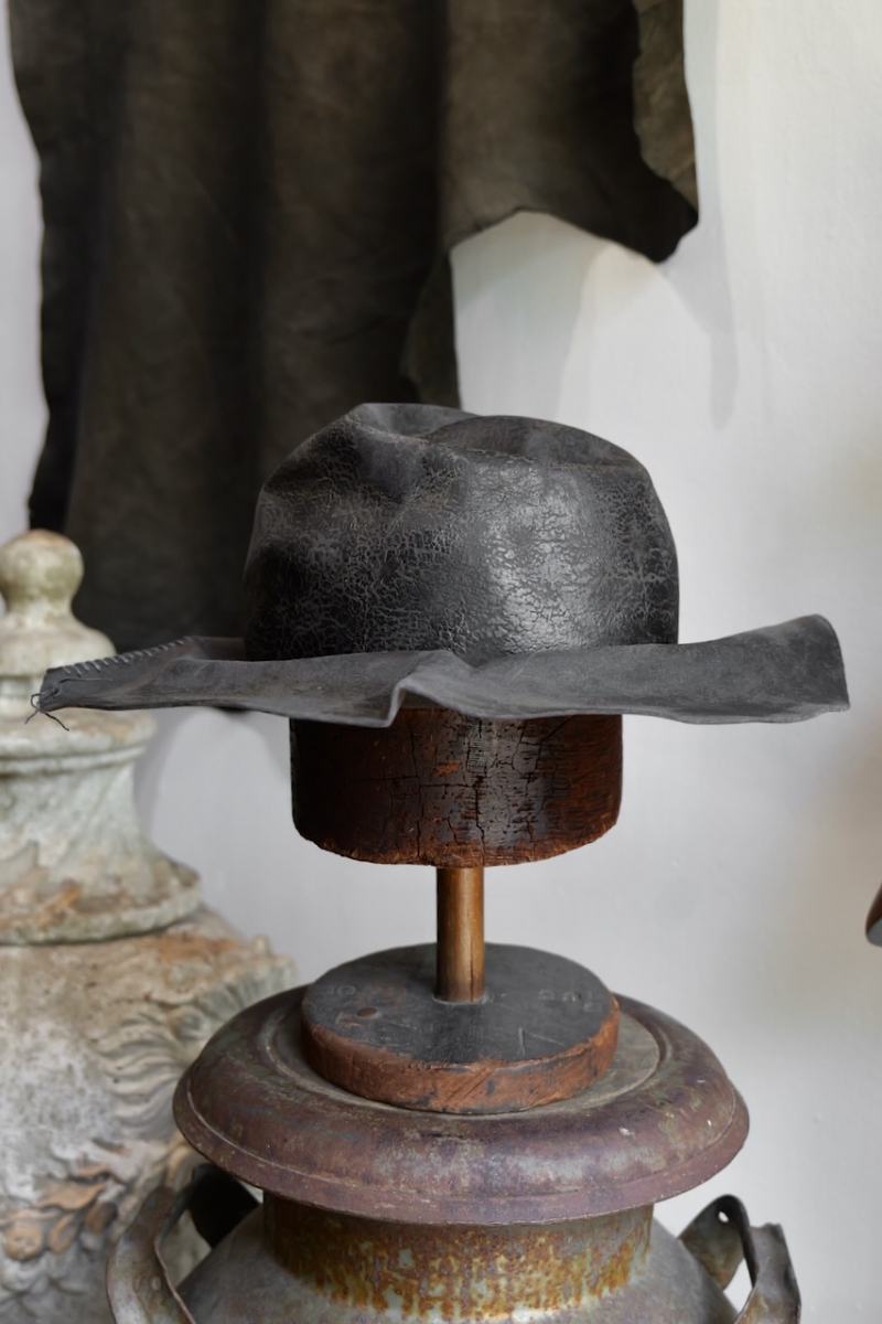この工程により、帽子は革のような質感と豊かな有機的な変化を帯びます。