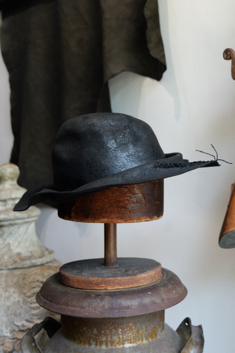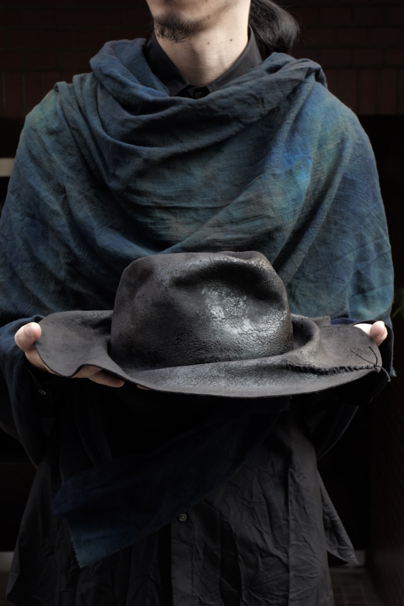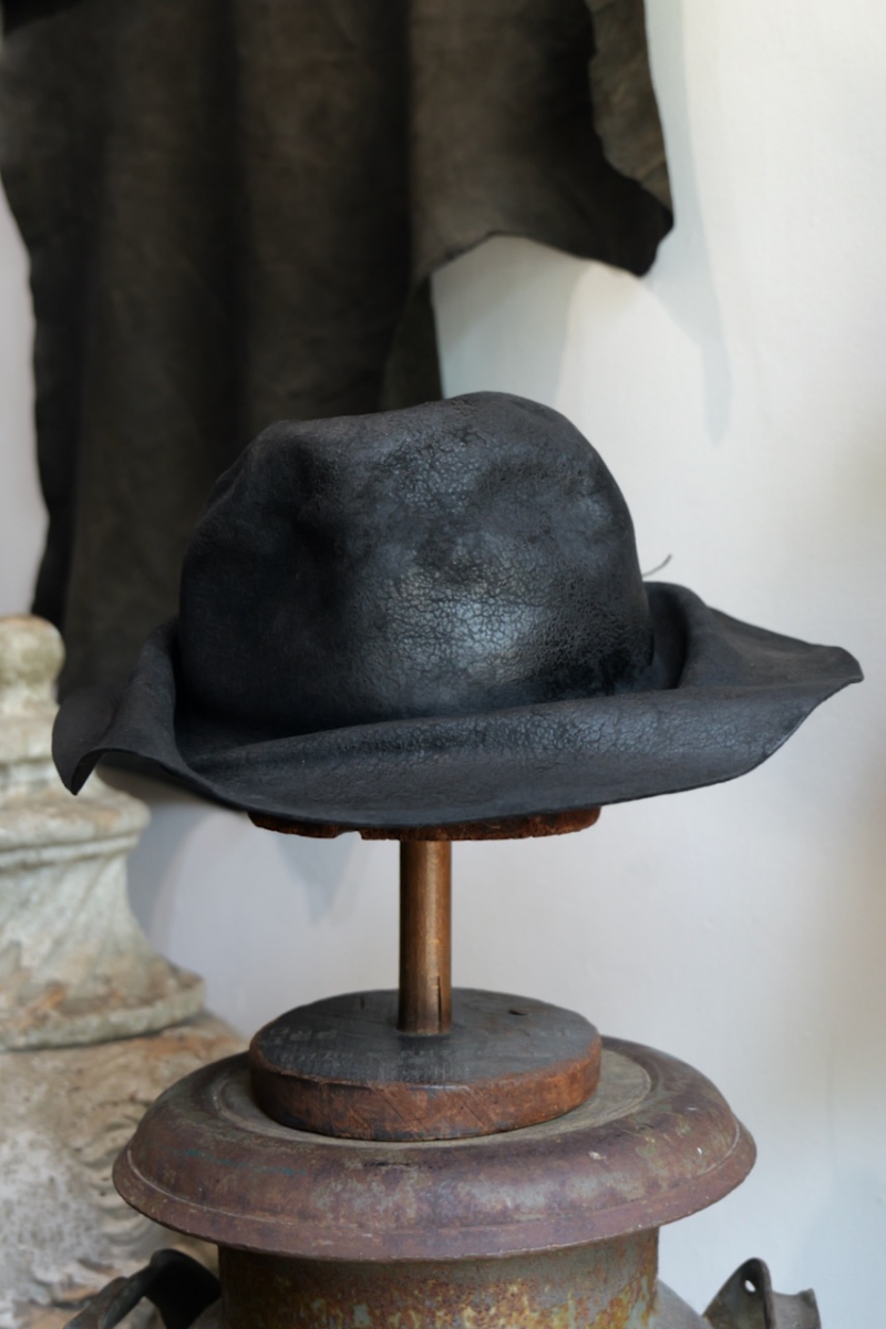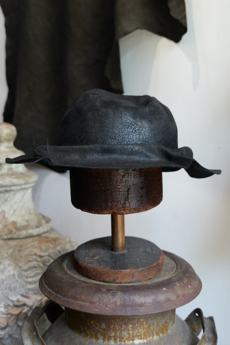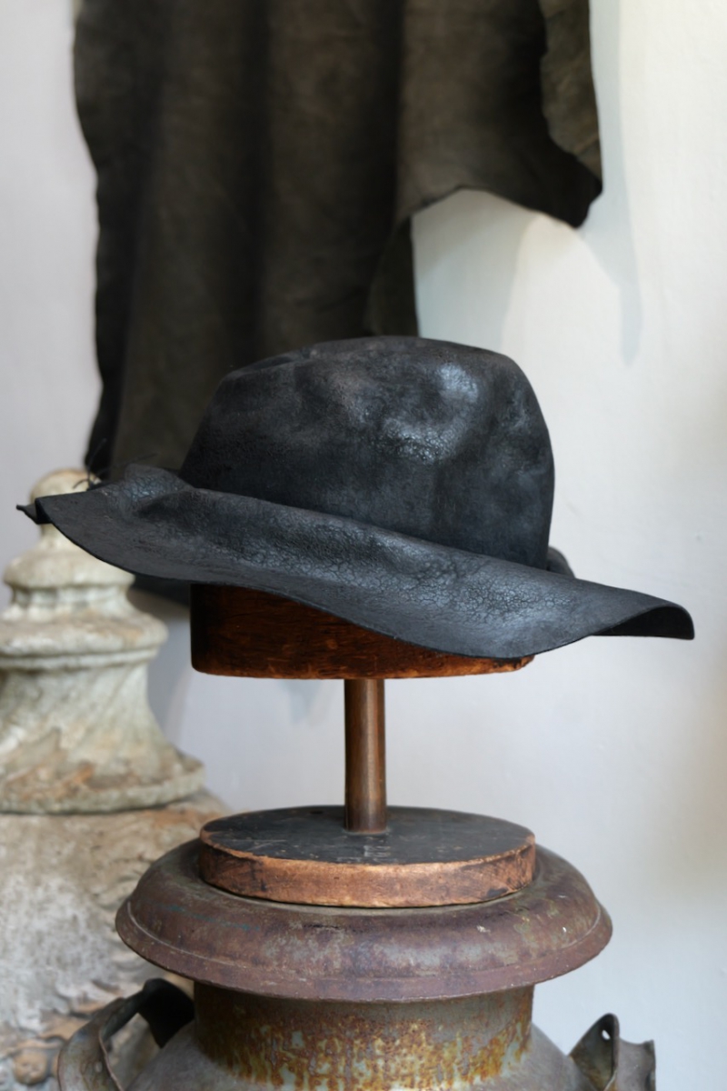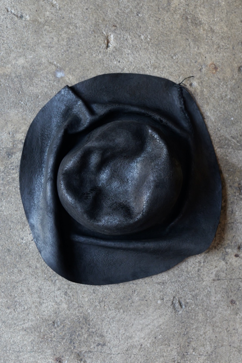 この工程により、帽子は革のような質感と豊かな有機的な変化を帯びます。
