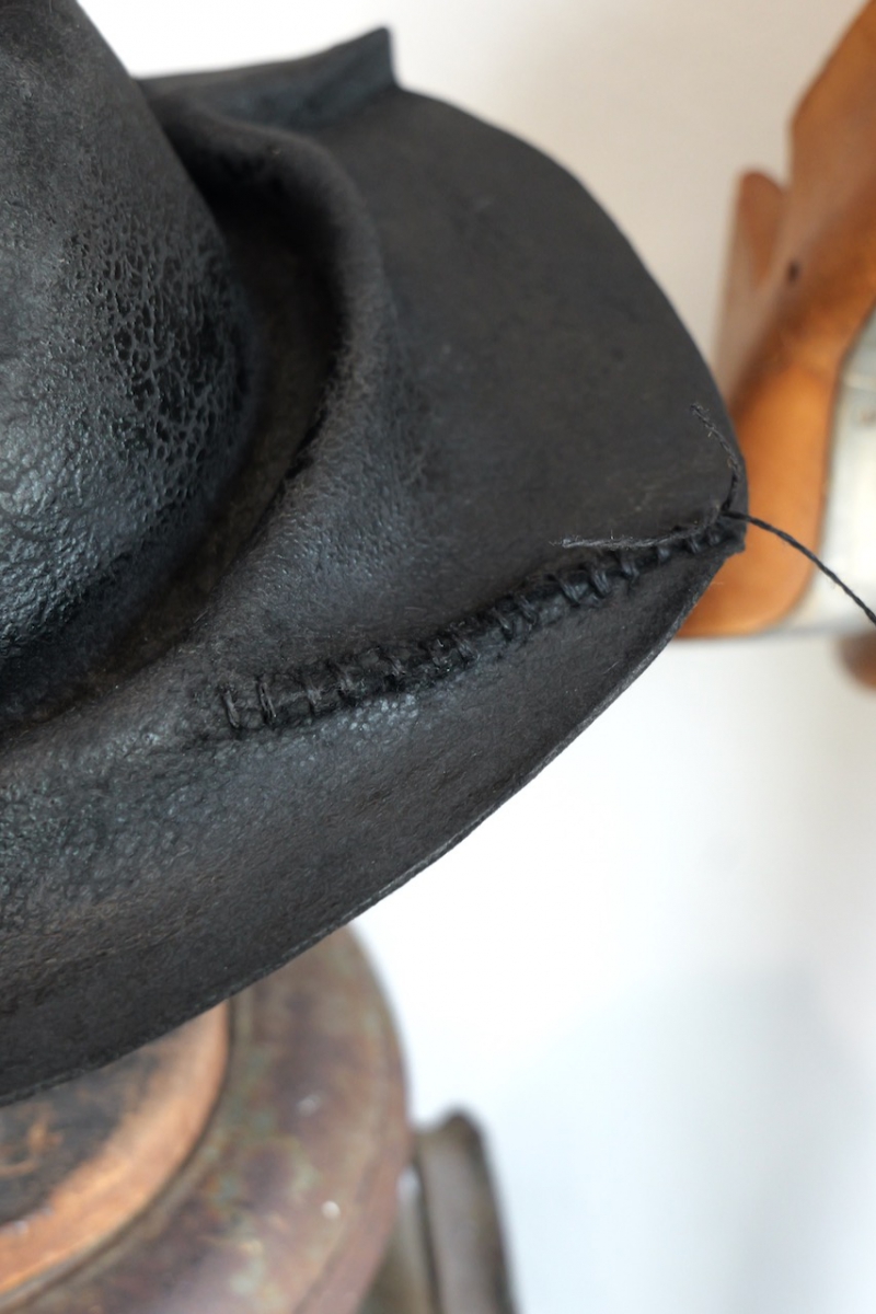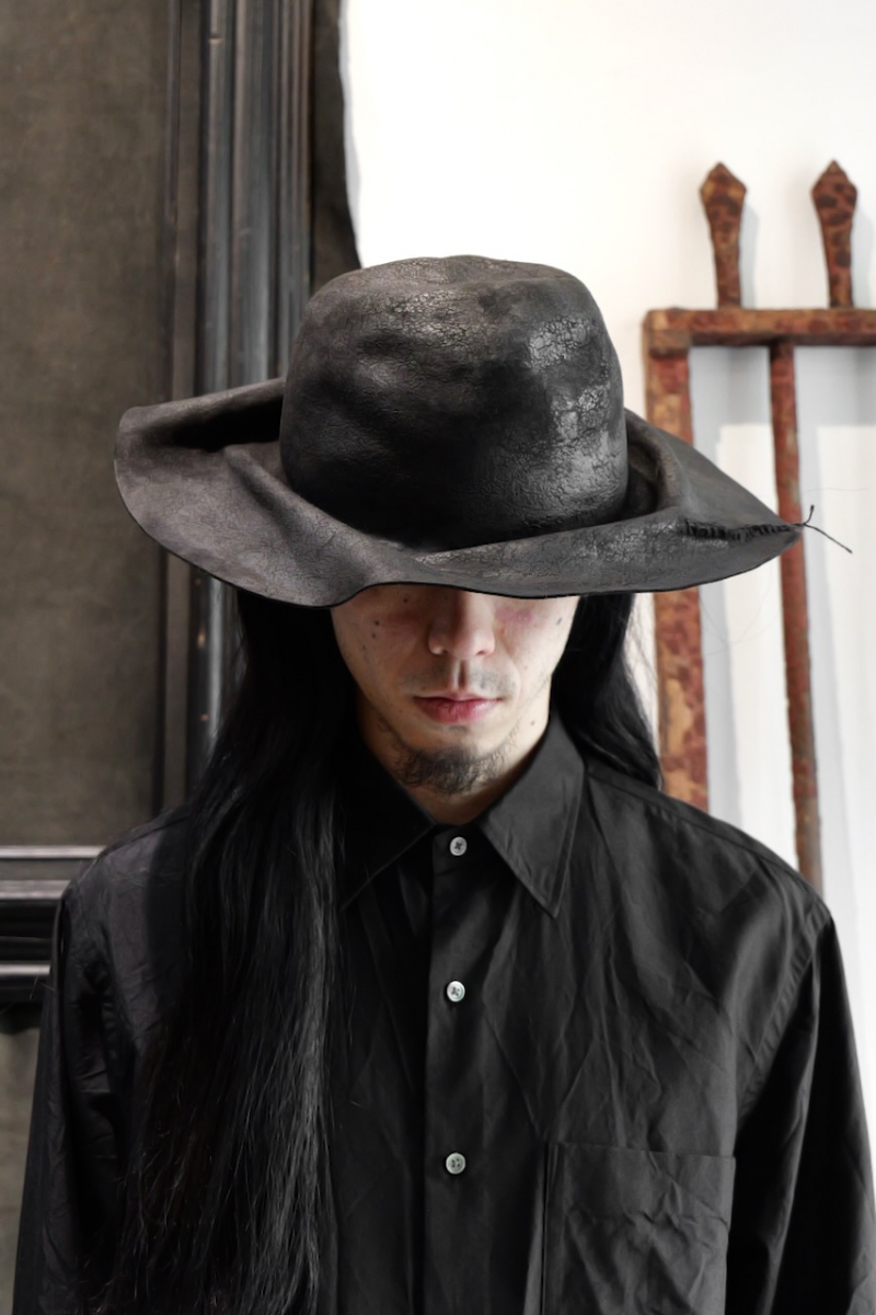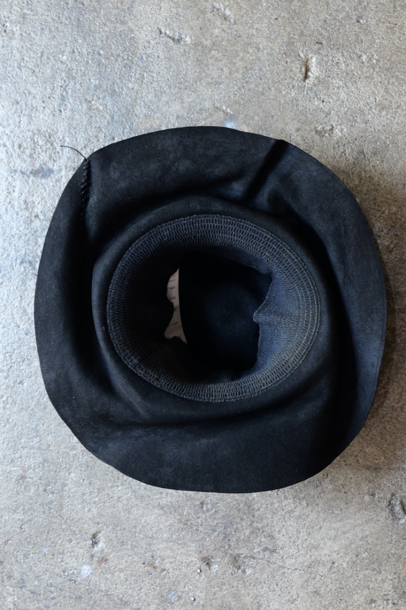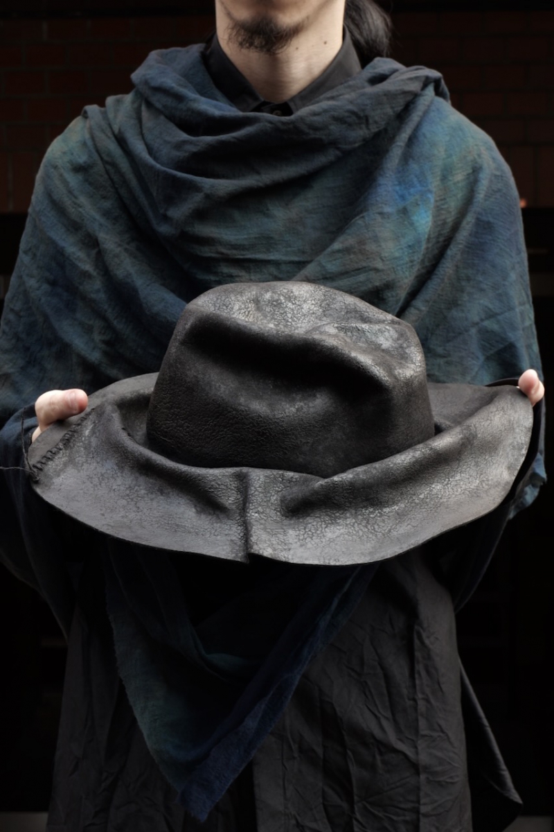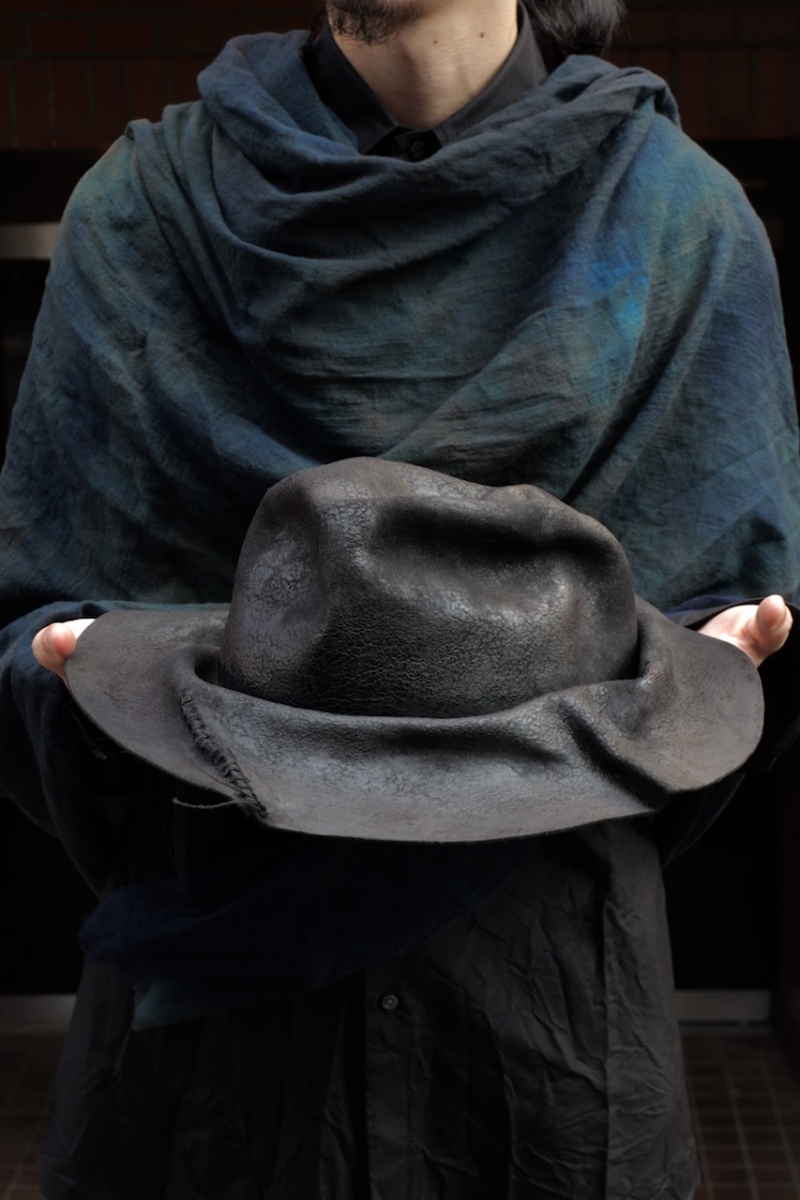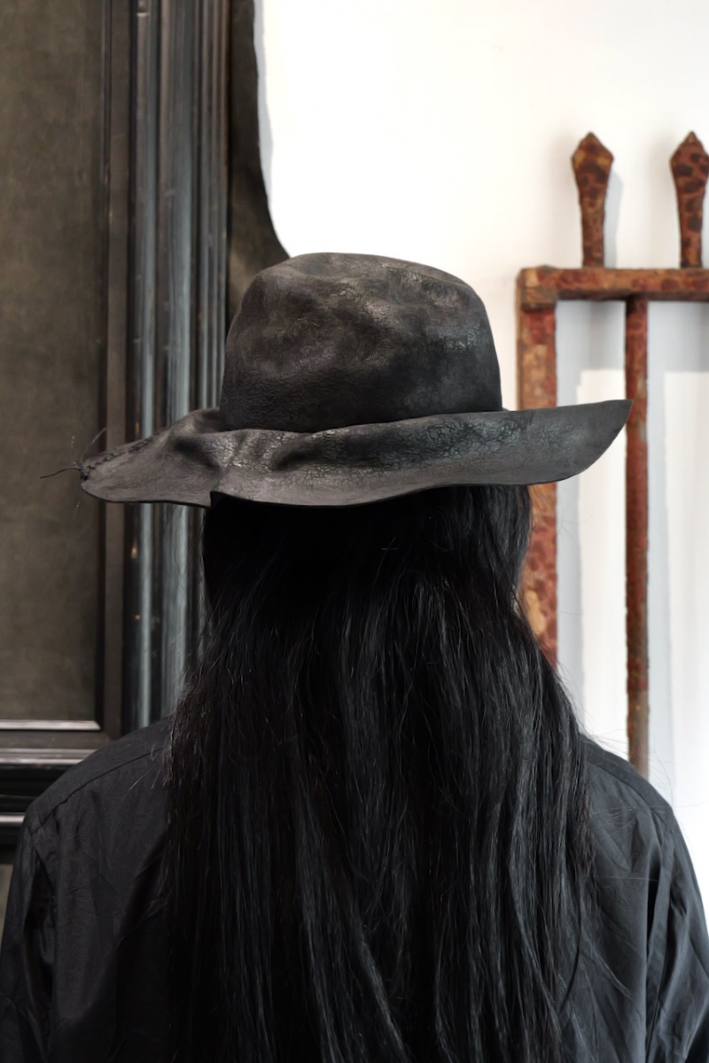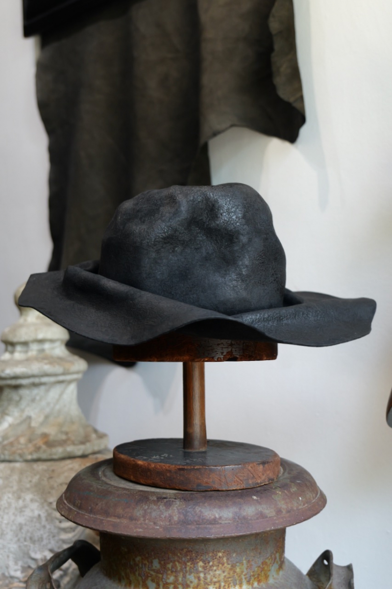 この工程により、帽子は革のような質感と豊かな有機的な変化を帯びます。