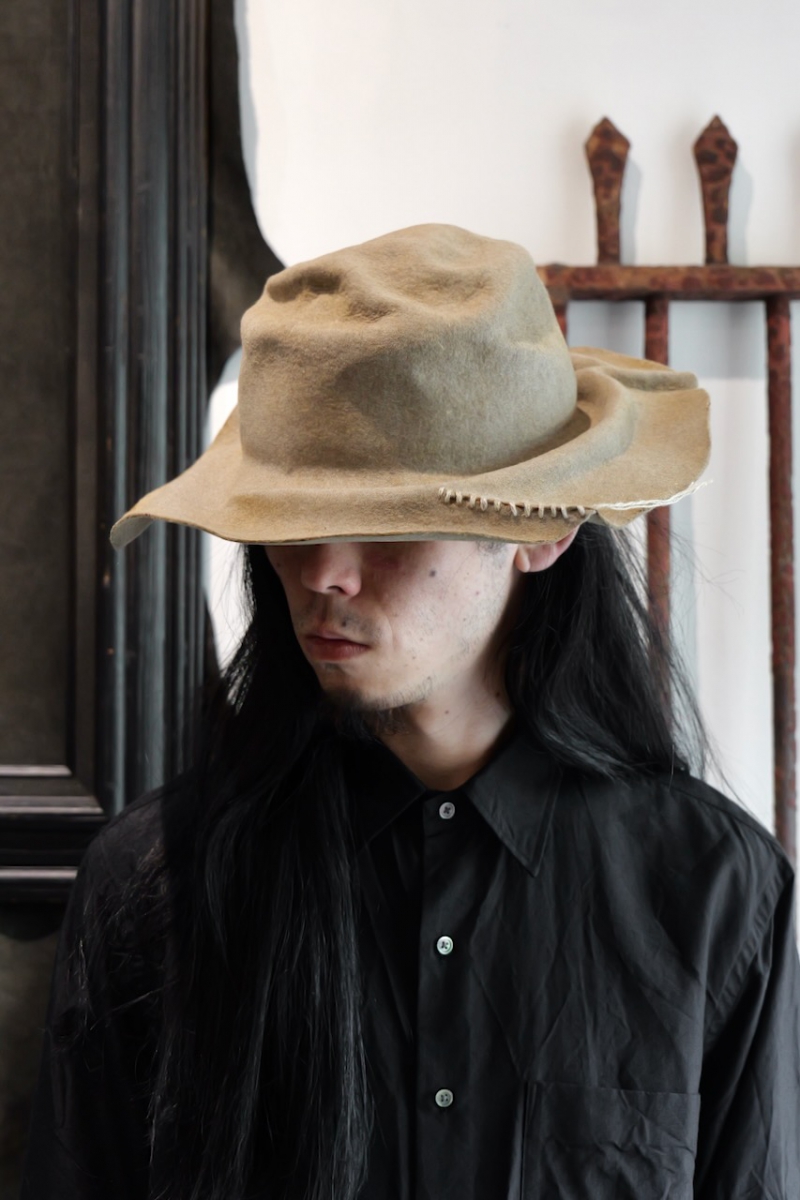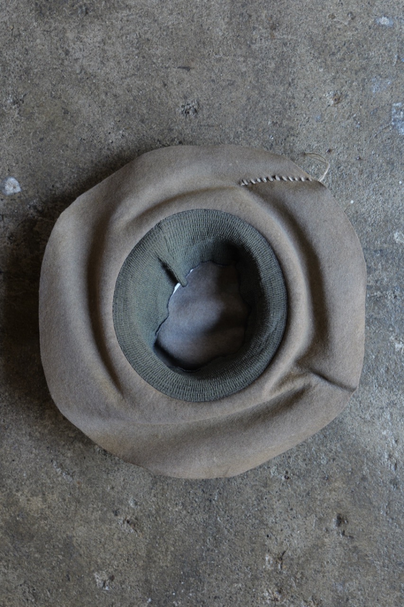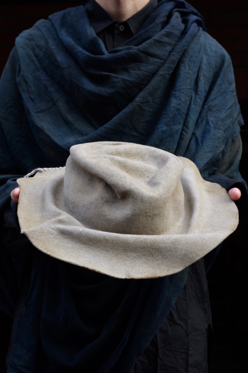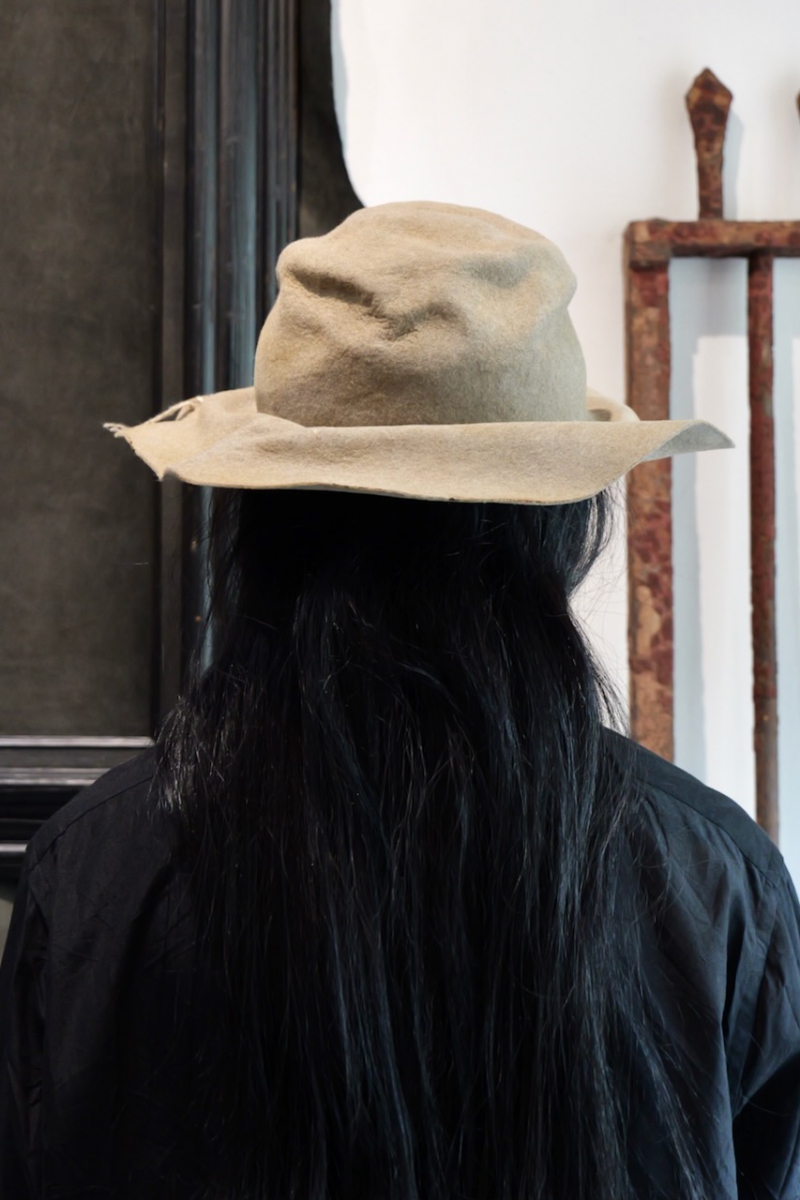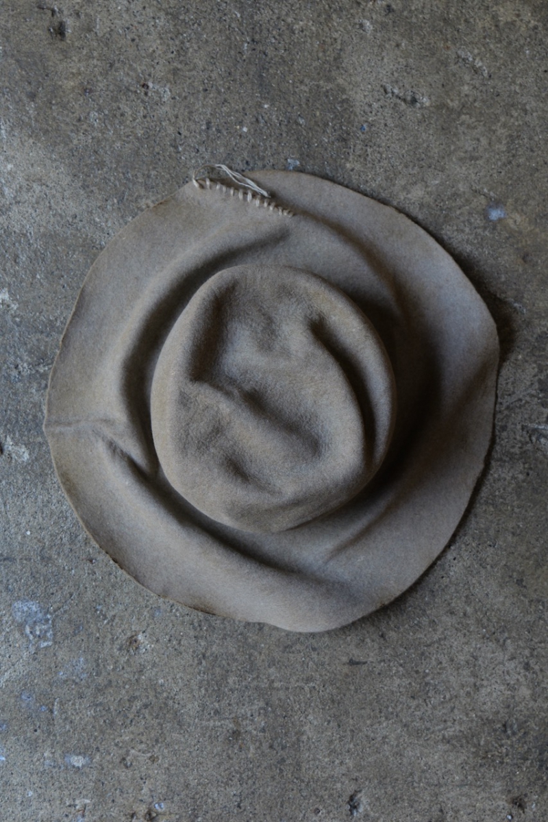 この作品は着用を重ねるうちに、自然に被る方の頭の形に馴染んでいきます。