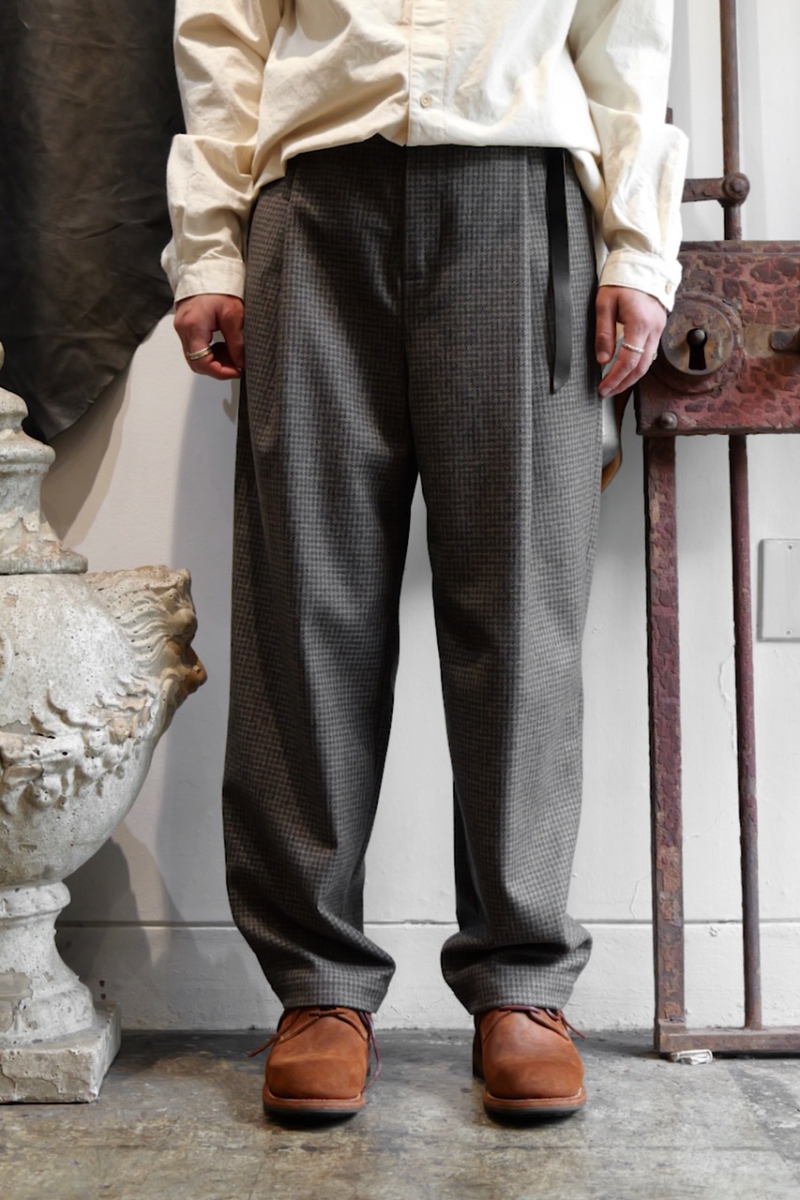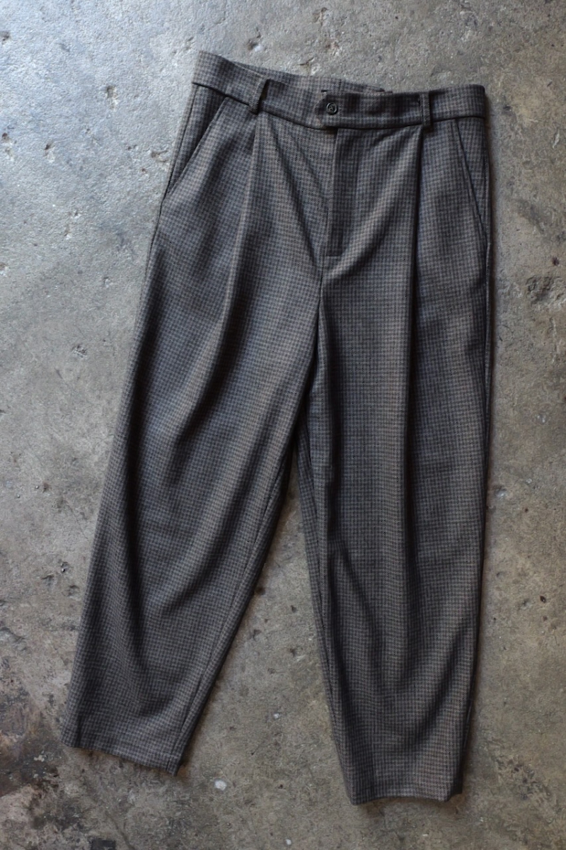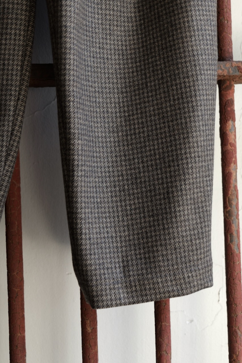 GREY DOGTHOOTH WOOL 1TUCK TROUSER + EDGE DETAIL.