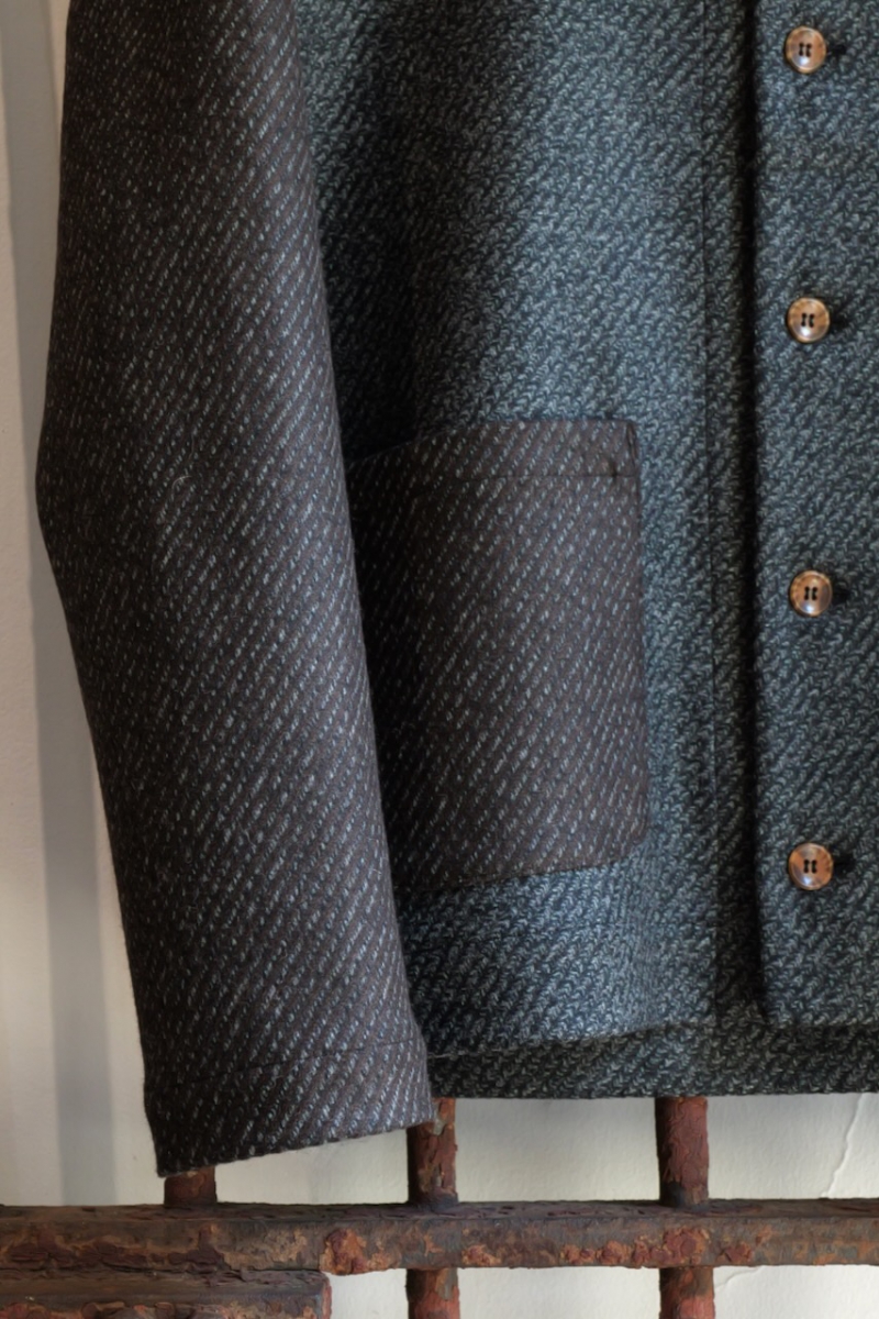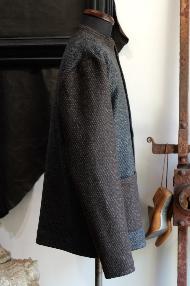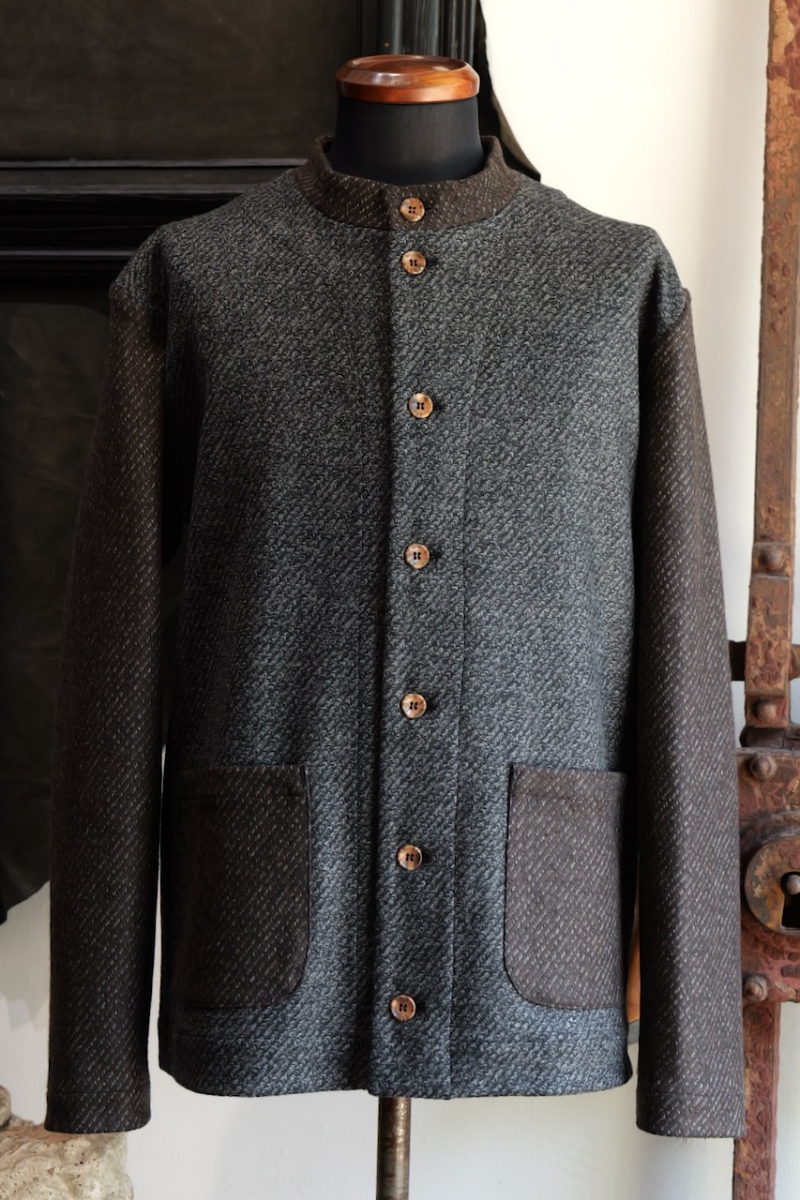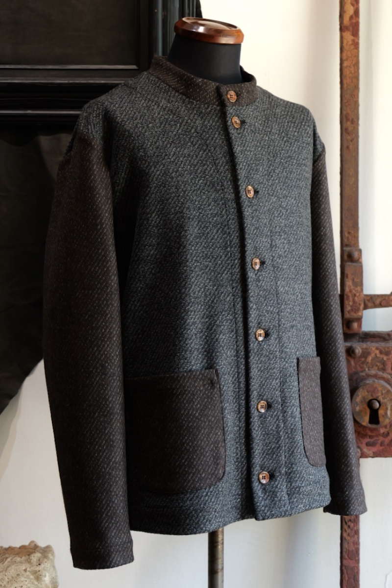 0522029-J2. GREY BROWN WOOL JANKER JACKET. 36(Blue Gley). FRANK LEDER.