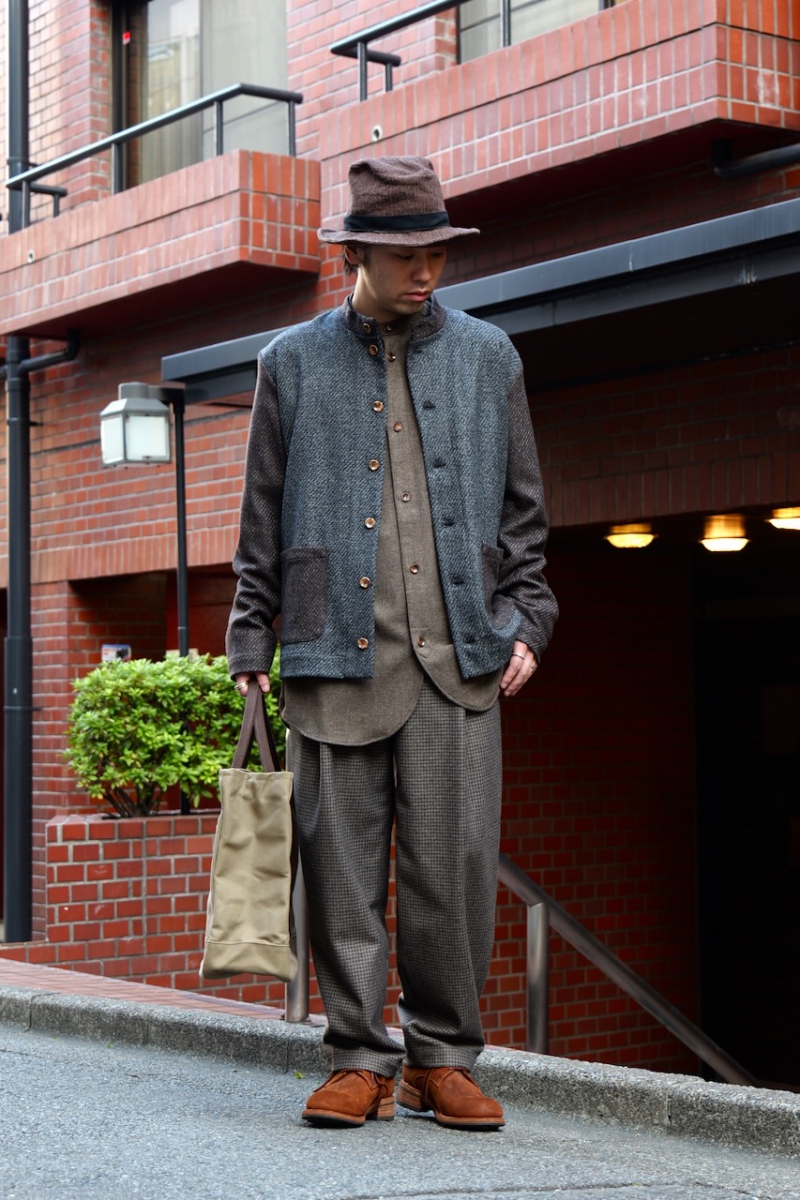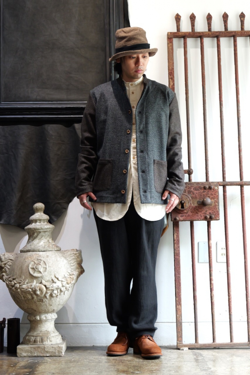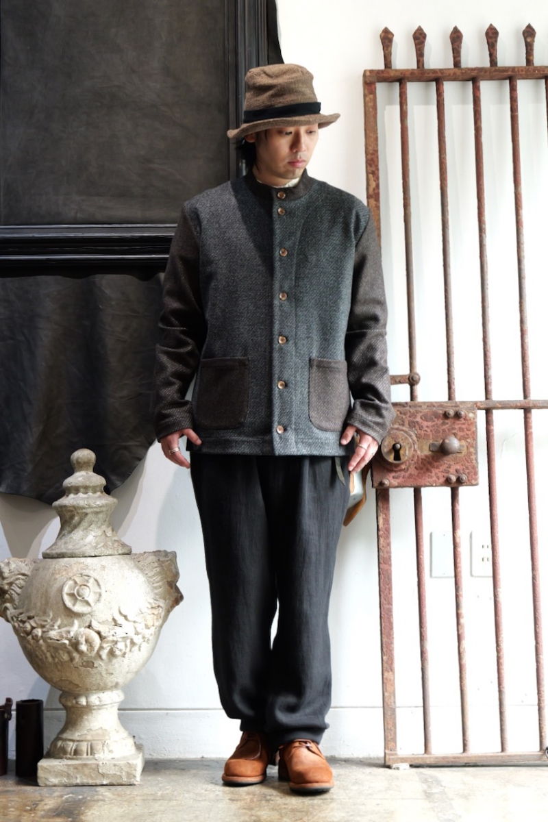 このブランドの生地は引きでの見た目、よってじっくり見た時の生地の織りの面白さは秀逸です。