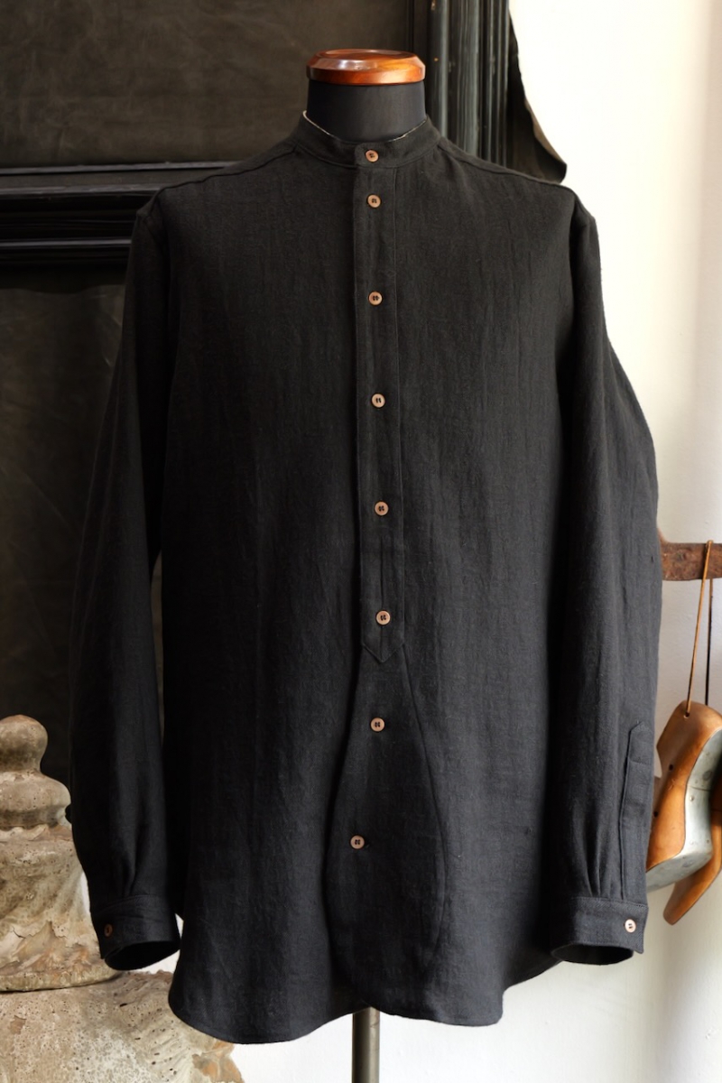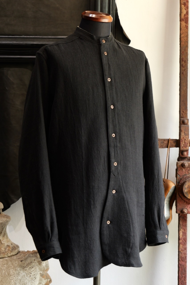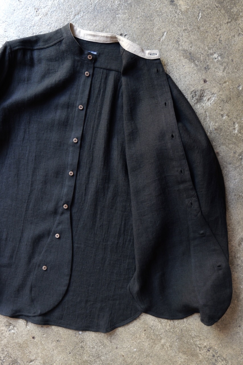 ブランドのシャツでは一番ゆったりとした身頃と裾にしたがって湾曲にデザインされた前立て。