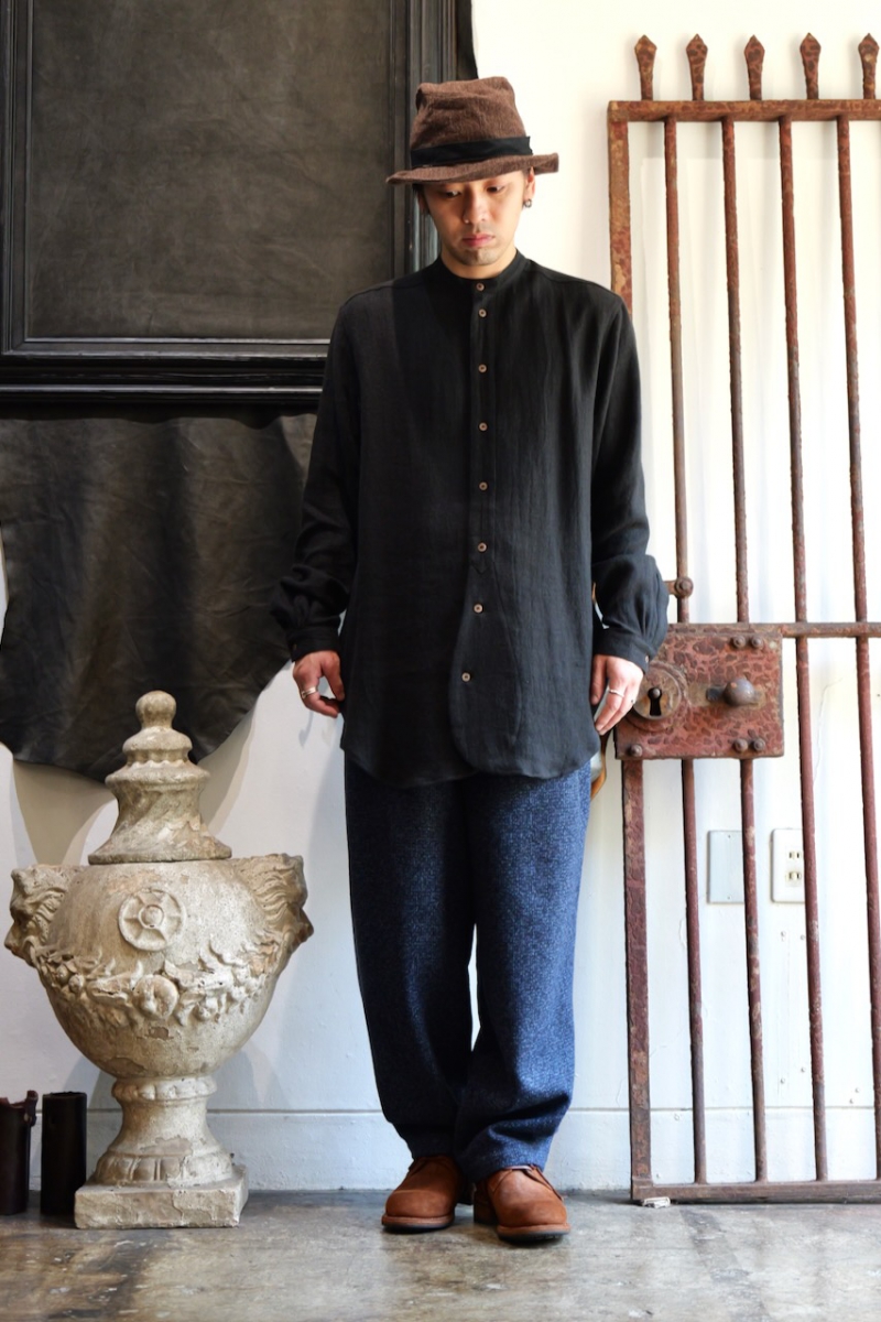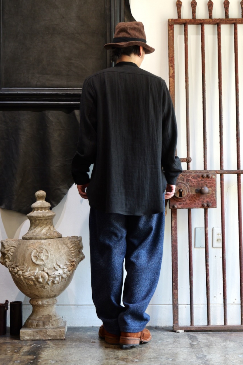 ・一瞬リネンか、と思わせるこのウール100%生地は、洗いをかけることで
