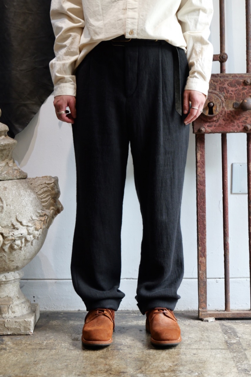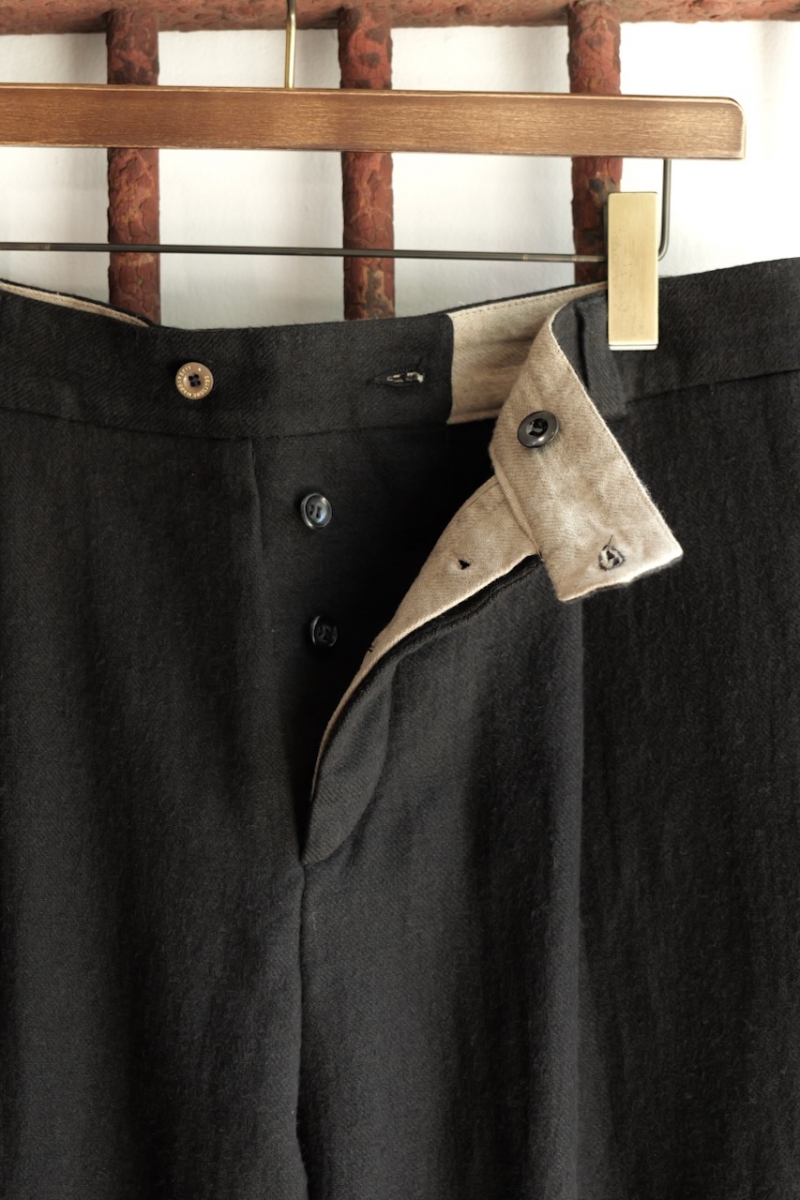 0523019-WW1. WASHED WOOL 1TUCK TROUTHER. 98(Charcoal Grey). FRANK LEDER.