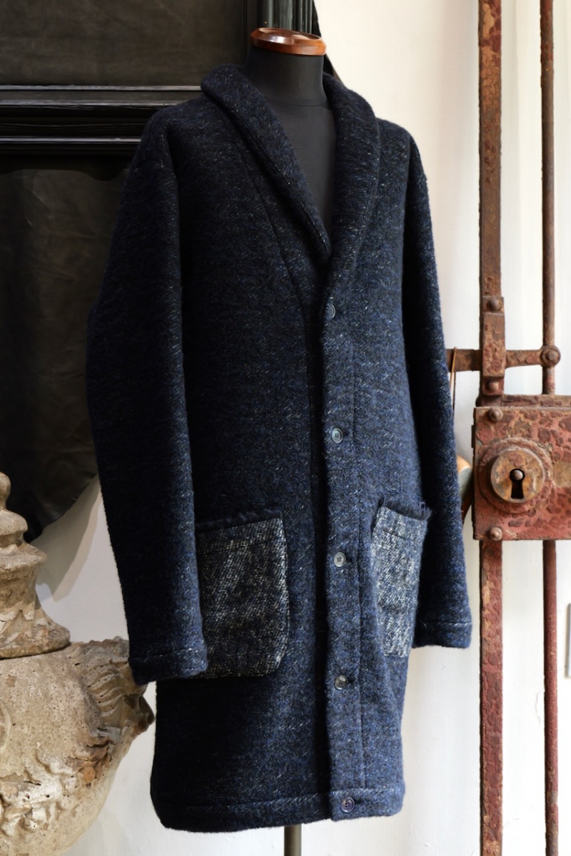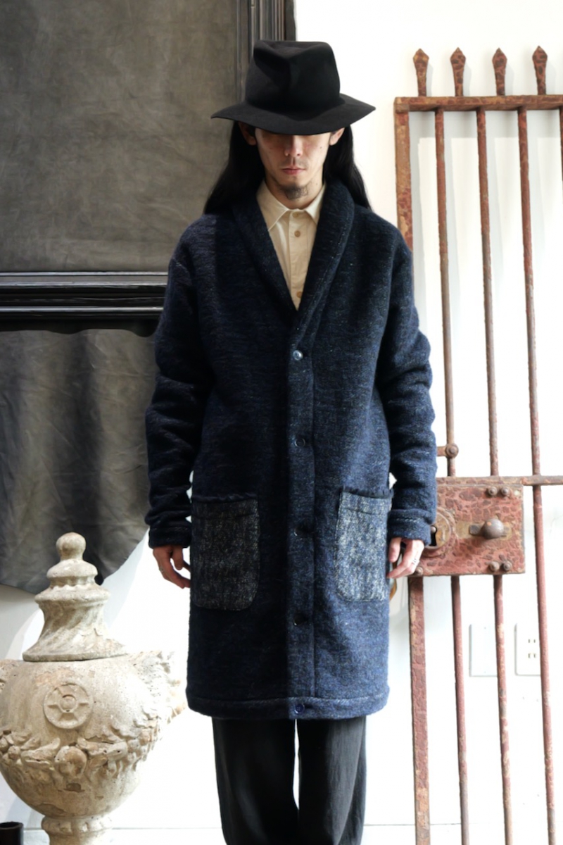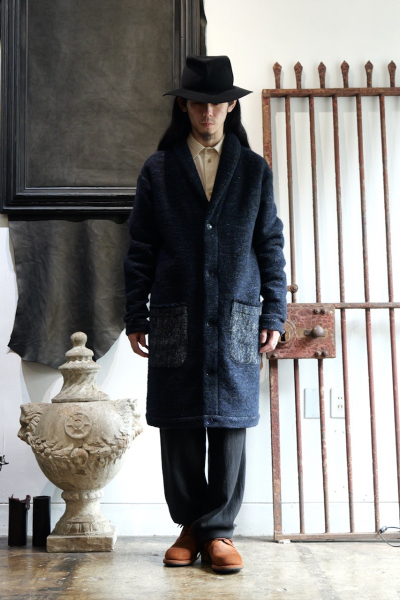 ヘチマカラーのオーソドックスなスタイルに同じ生地の裏表を楽しむ、