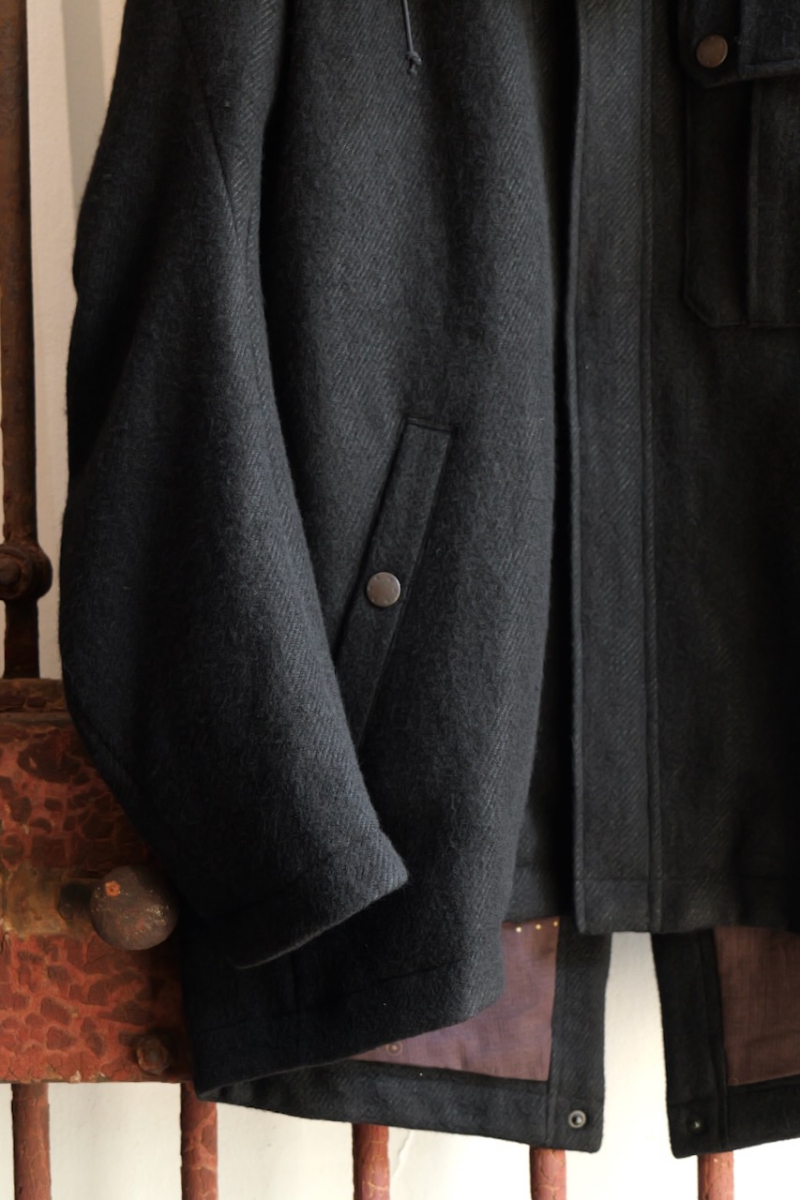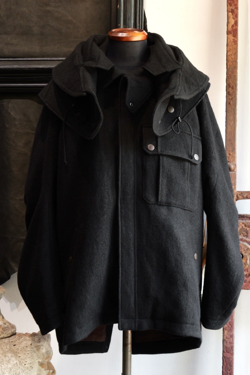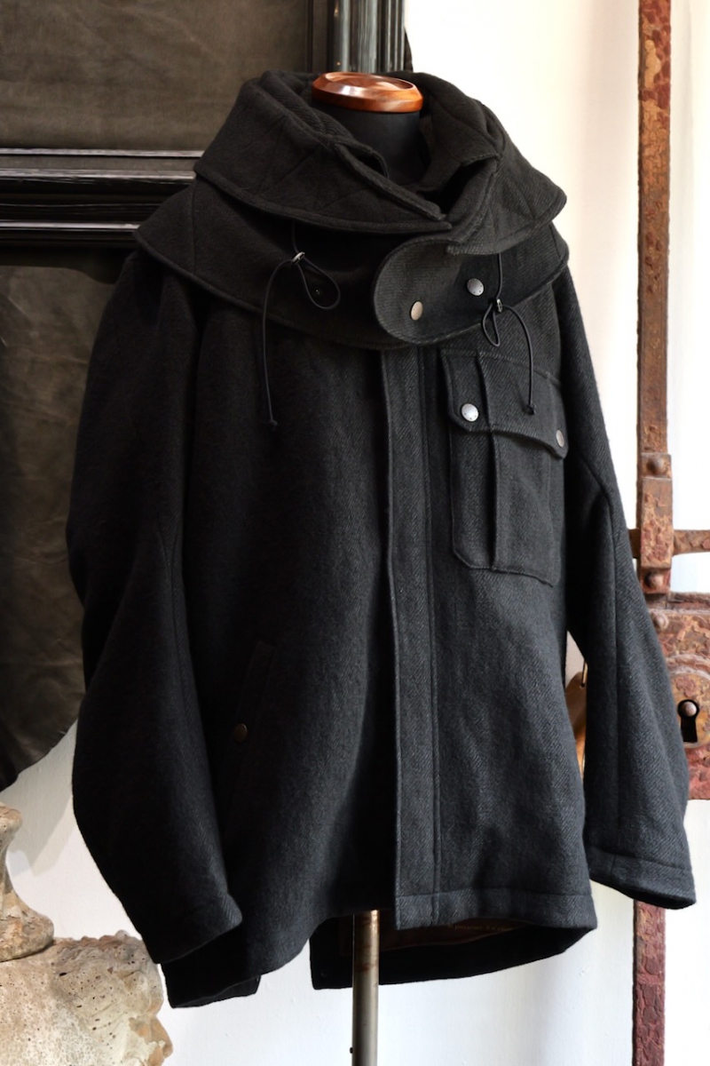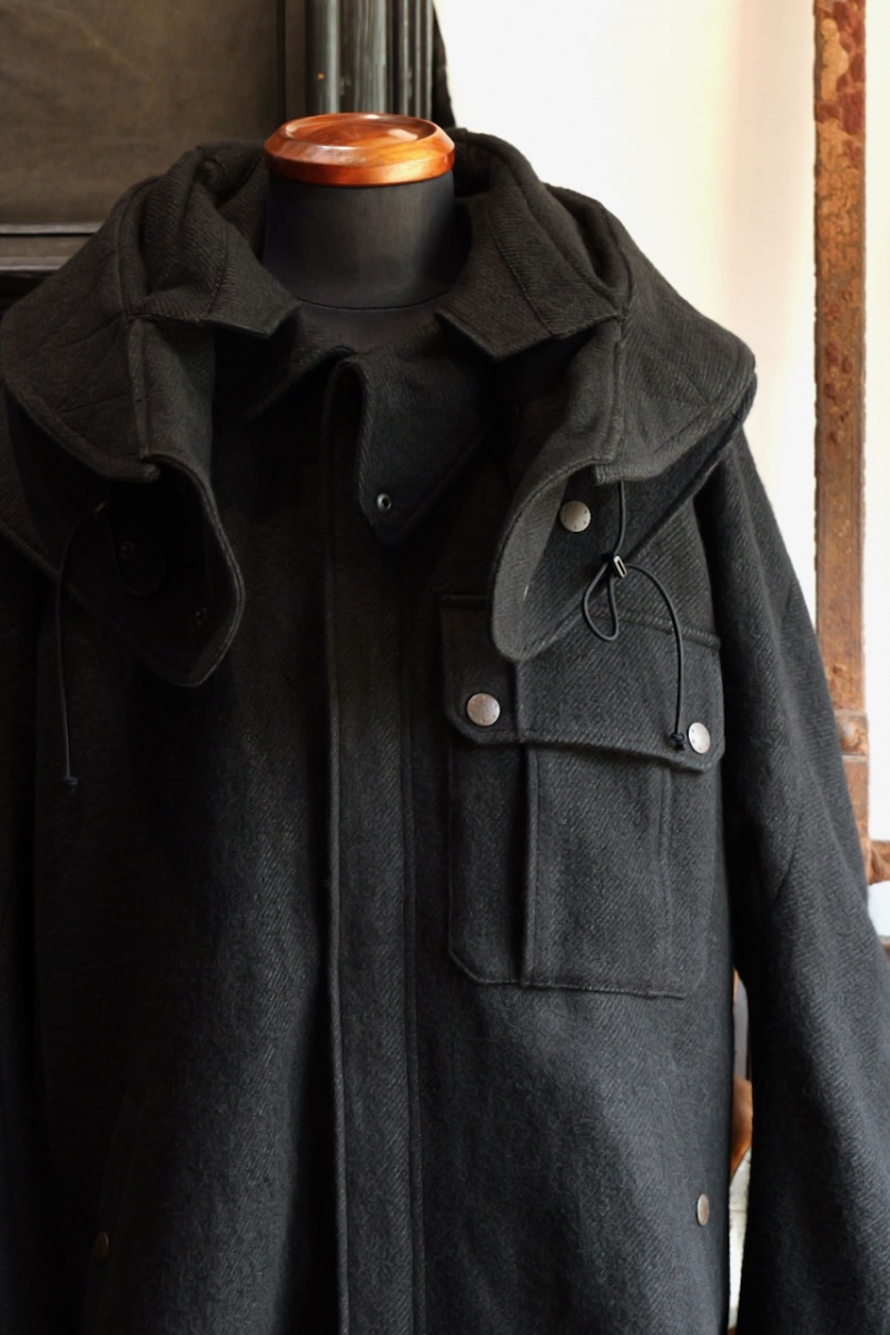 ・デザインはモッズコートをベースに、フードはボタンで取り外し可能となります。