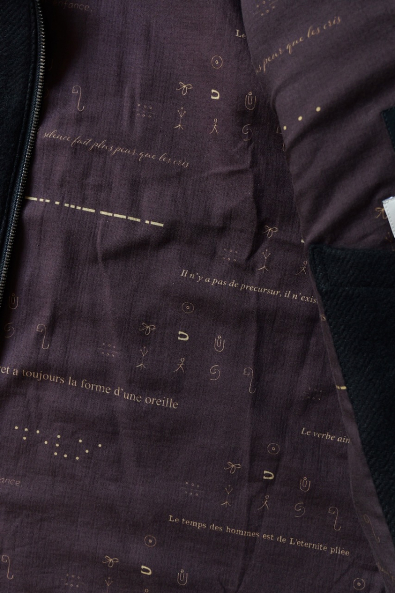 ・身頃の裏地にはオリジナルのプリントデザインを施しています。