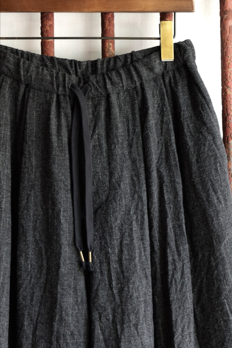 ストライプ部分は60/1リネン糸のブラックとトップグレーを甘く撚り、織り込んだ時に