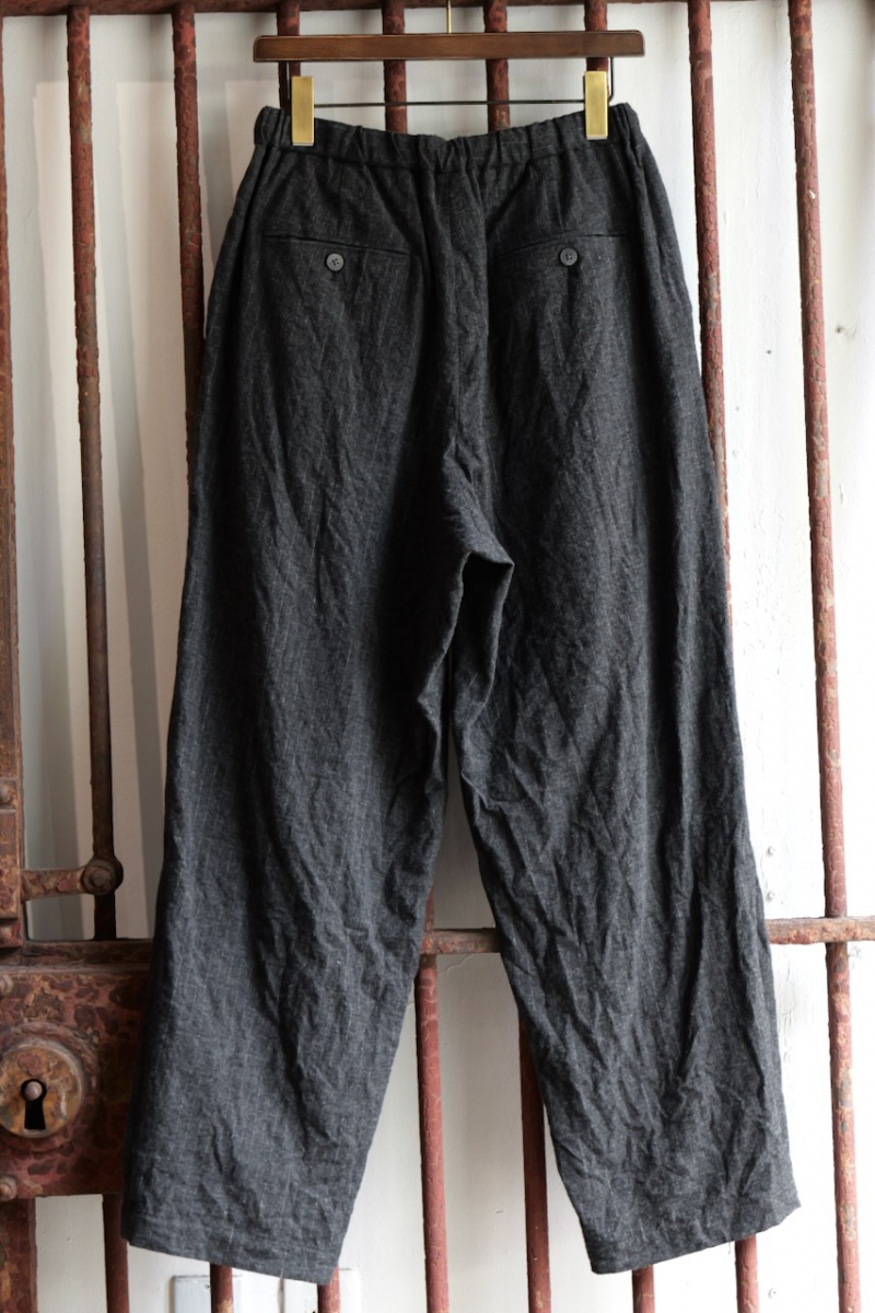 ・デザインはゆったりとしたダブルプリーツのイージーワイドテーパードパンツになります。