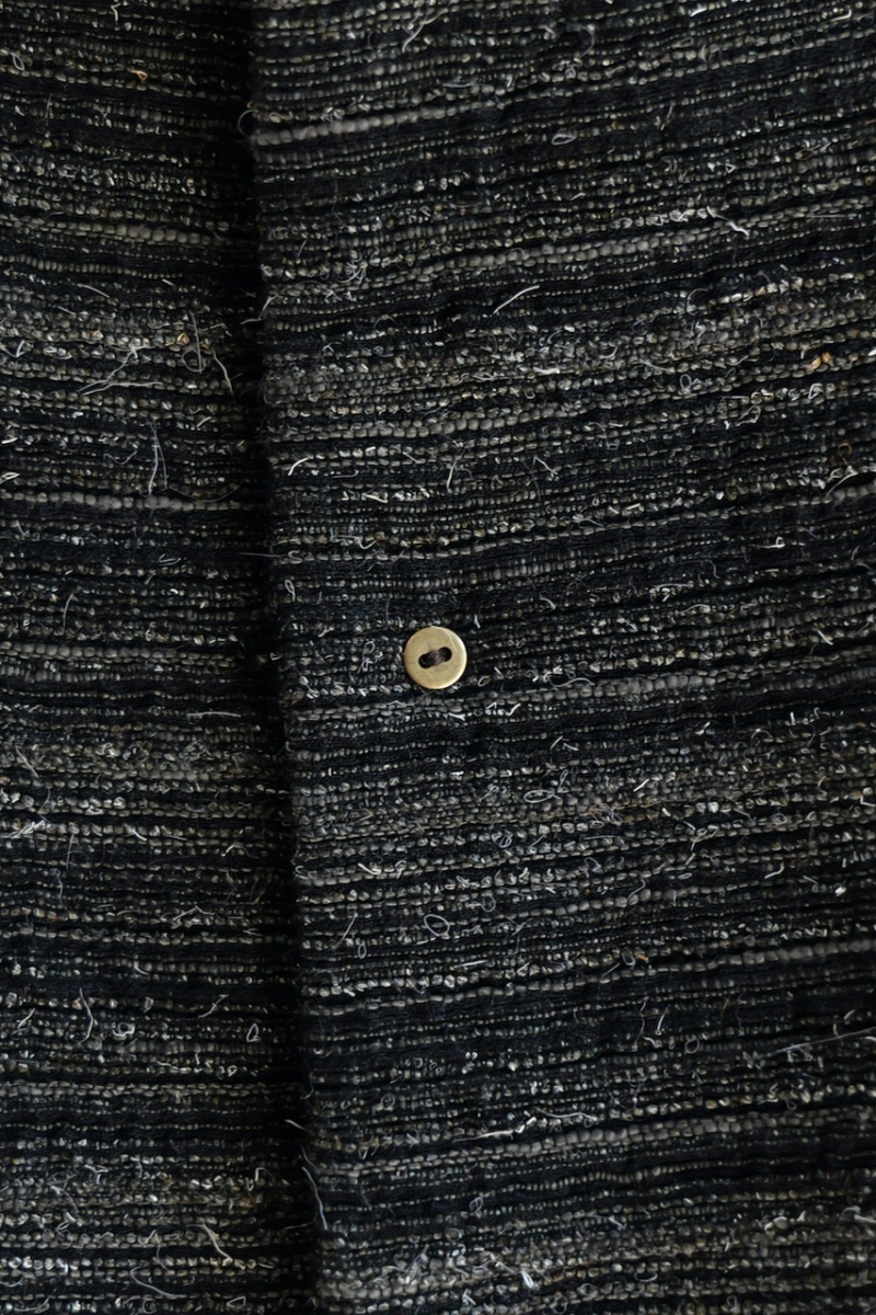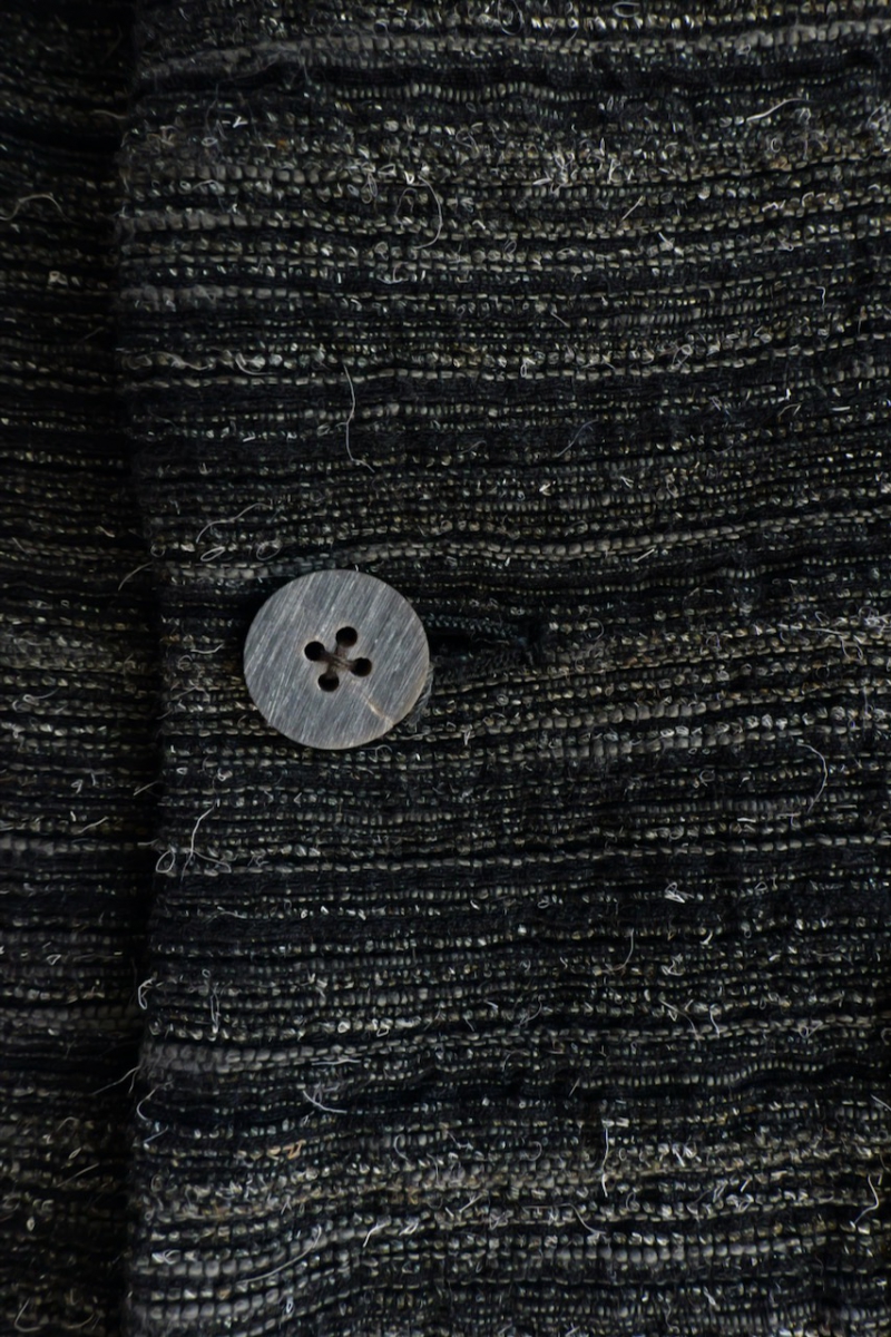 ・釦は水牛釦の表面に焼き加工を施した陶器のような質感のものが使われています。