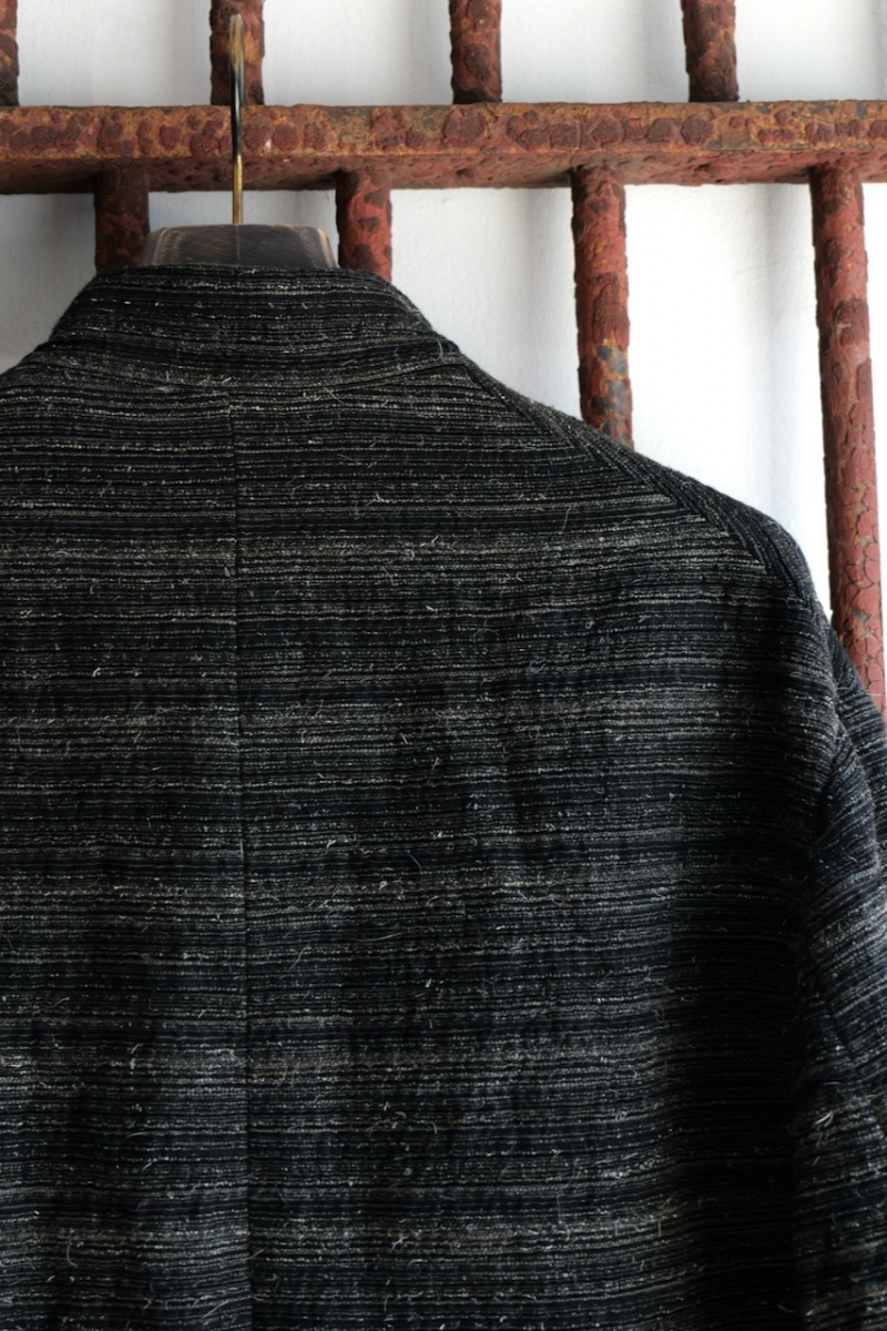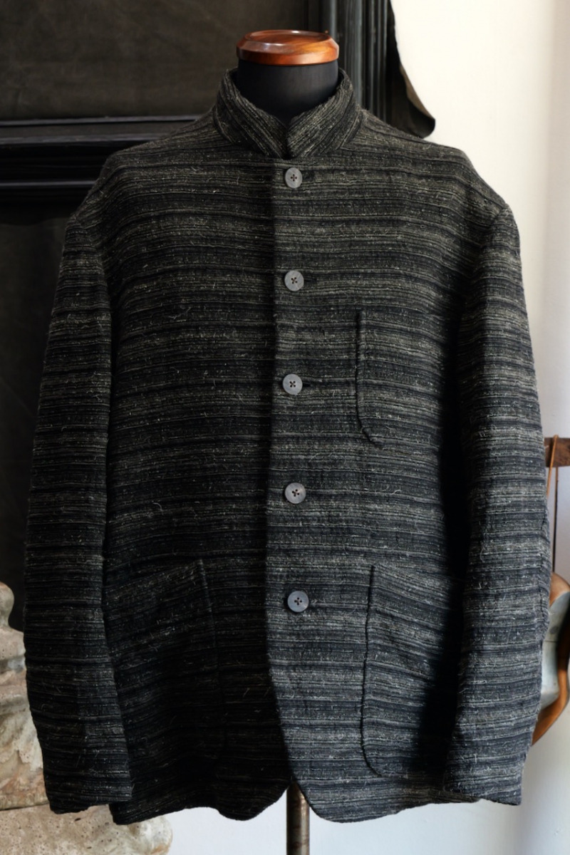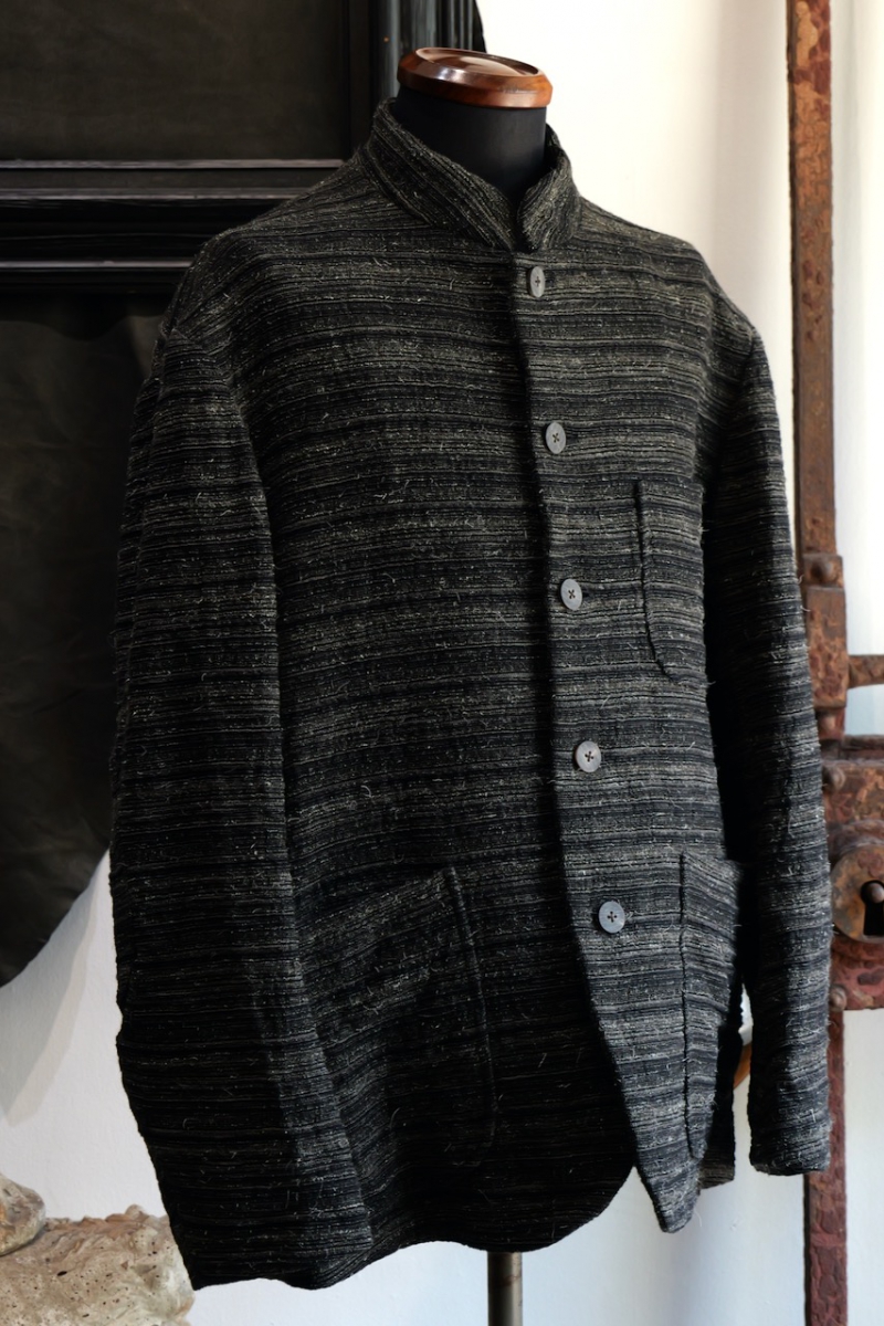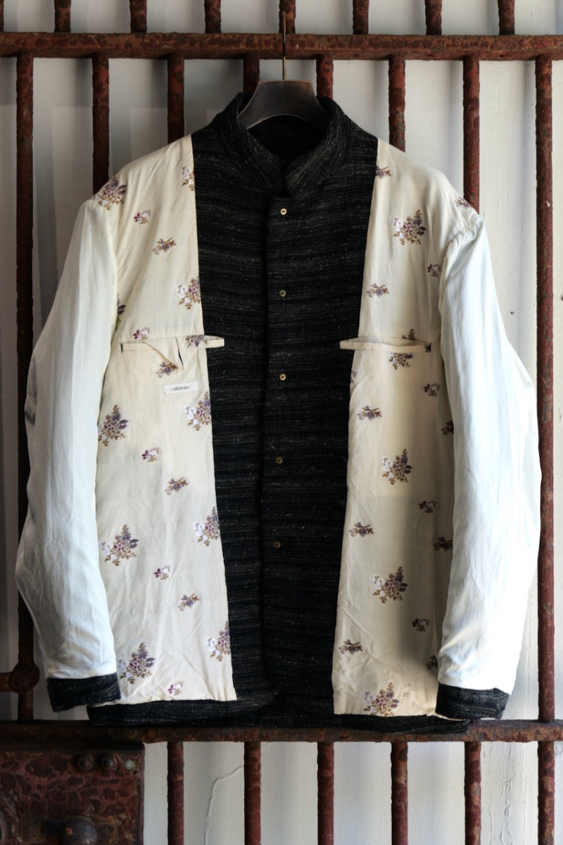 JACKET030. Stand Collar Jacket Kemp Random Border. Black Khaki. Collection 005. calmlence.