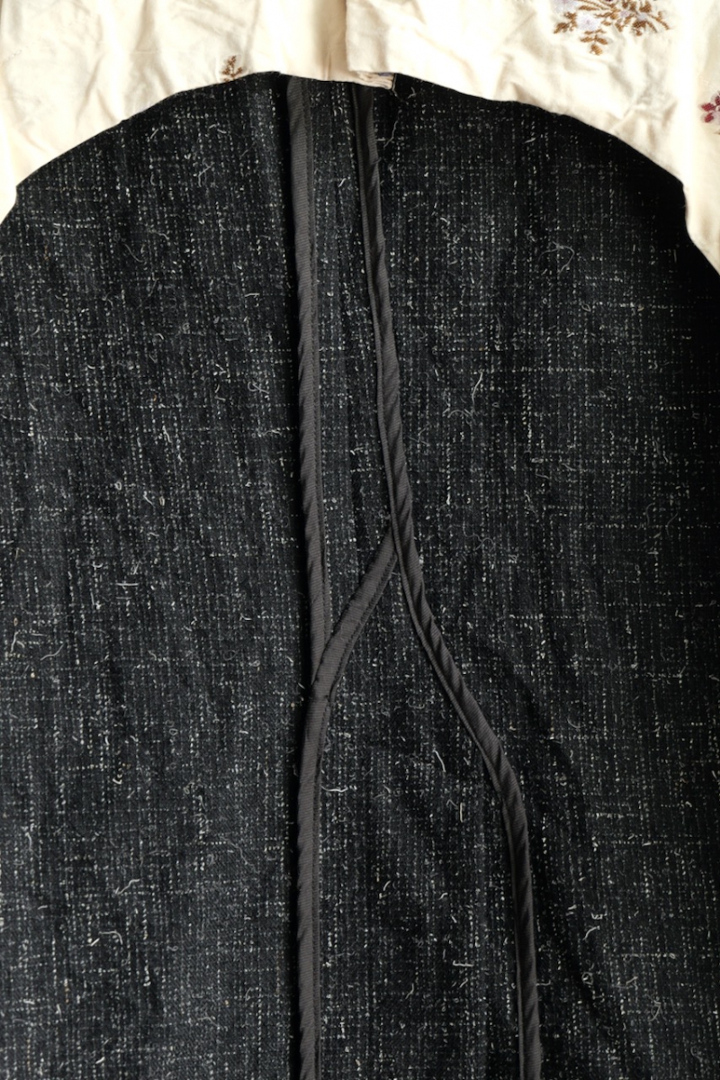 ベース部分は経糸40/1リネン糸、緯糸2/48梳毛糸をランダムに設計し、