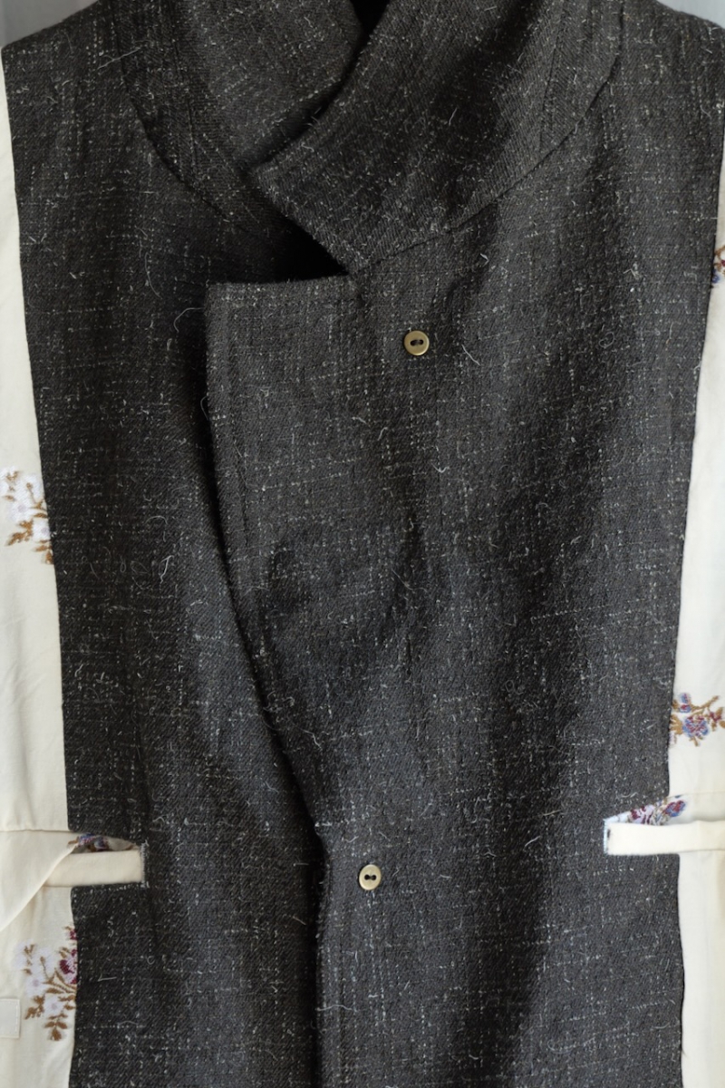 ベース部分は経糸40/1リネン糸、緯糸2/48梳毛糸をランダムに設計し、