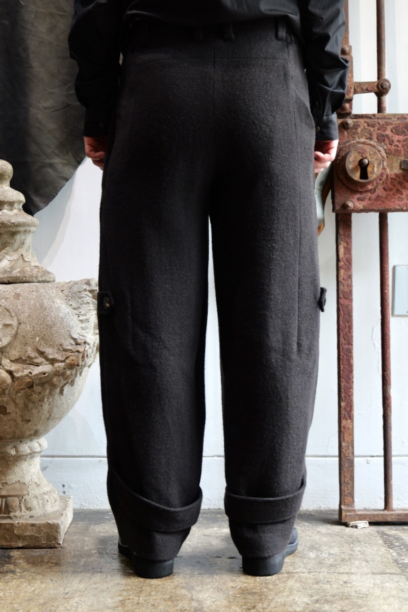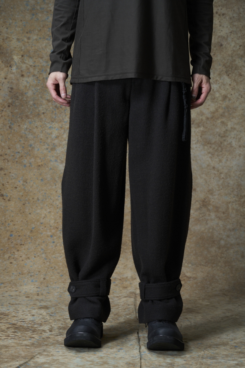 ボリュームを持たせたシルエットに加え、裾の太さを2段階調節することができるので