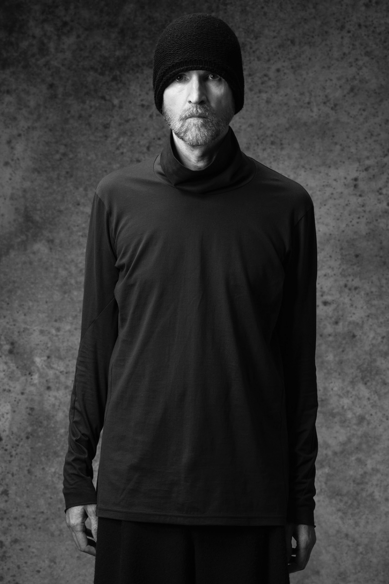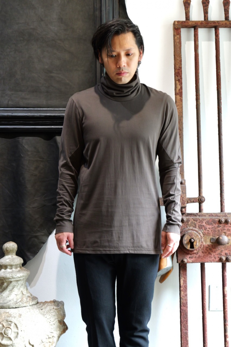 CSC-SVB5. High Neck Long Sleeve SUVIN Cotton Jersey. Beige Gray. DEVOA.