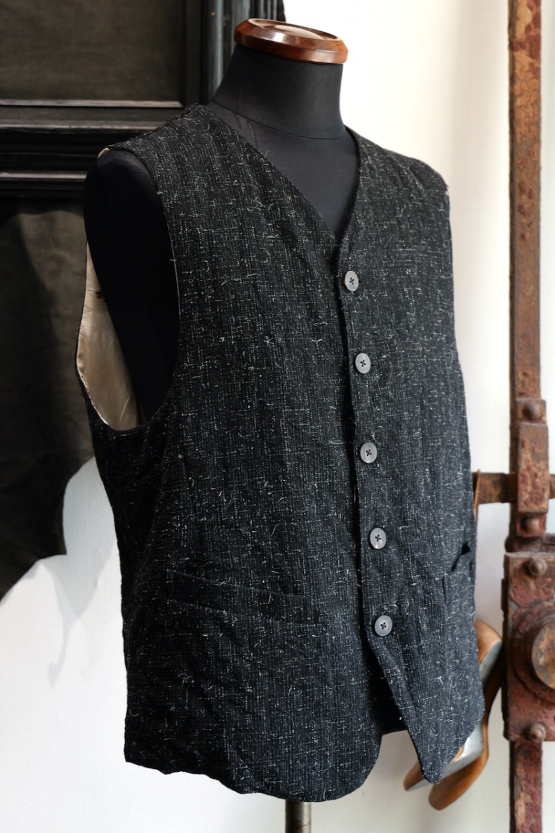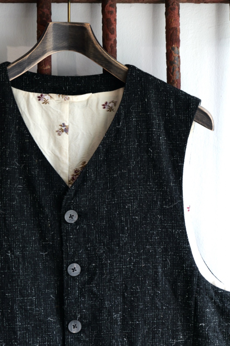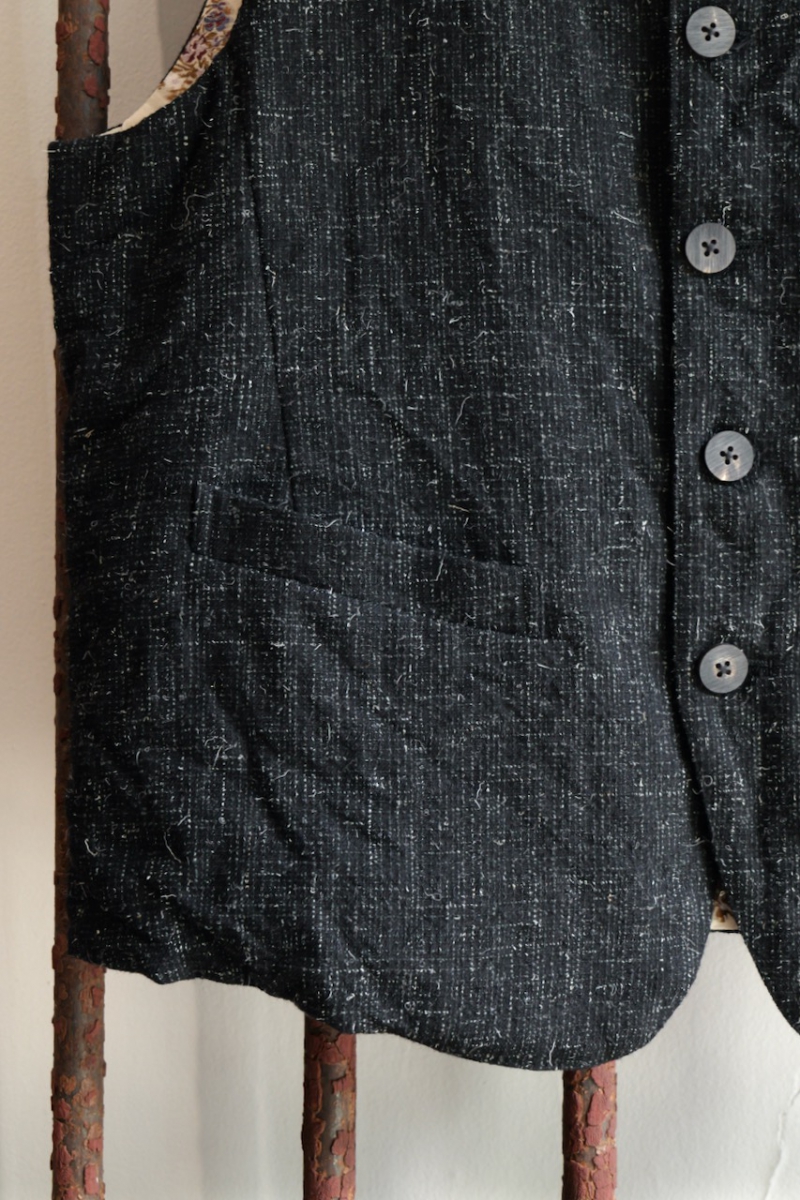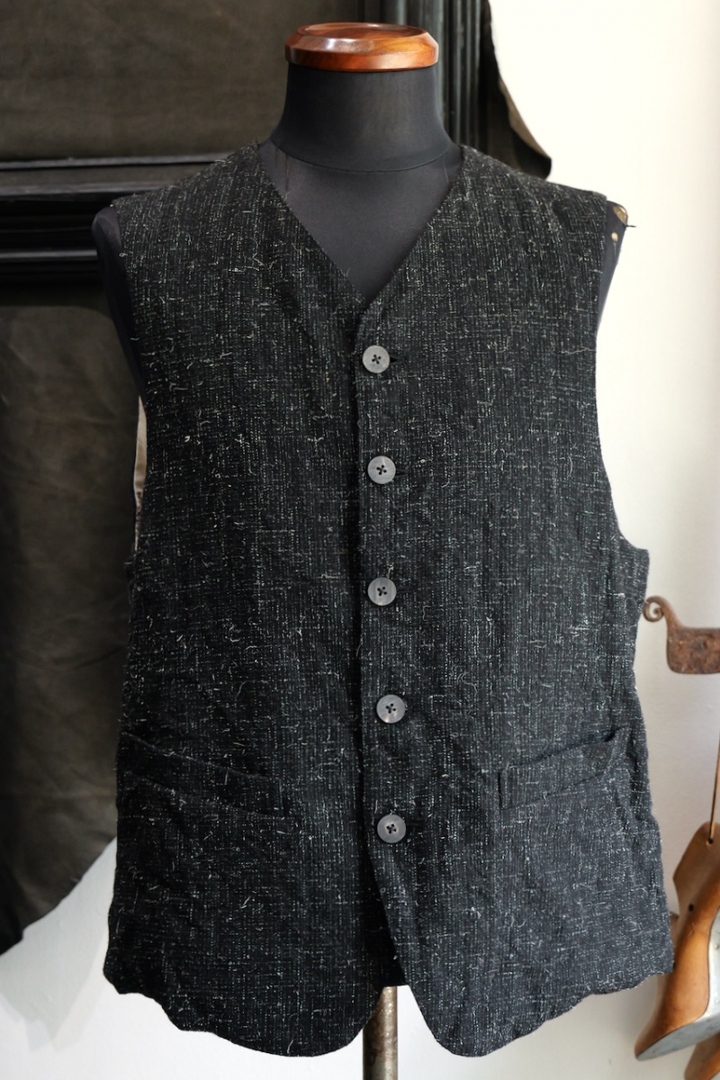 VEST007. Workers Gilet Kasuri Gabardine. Black. Collection 005. calmlence.