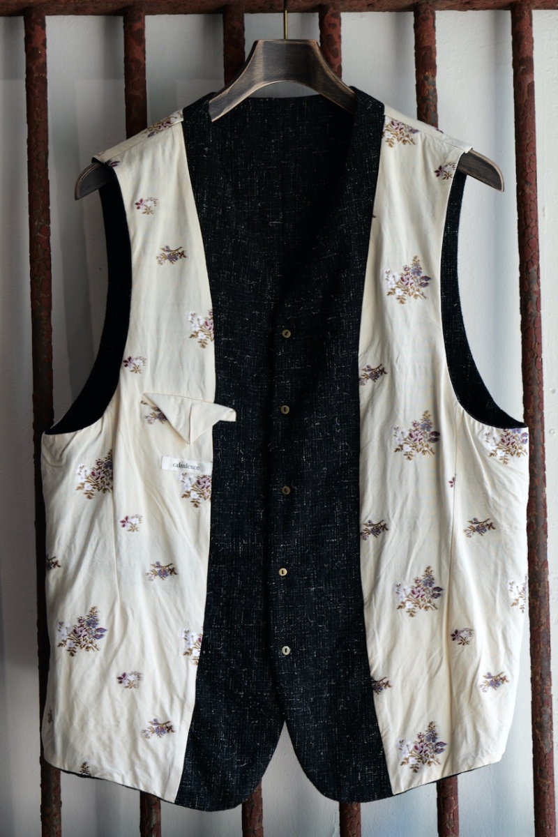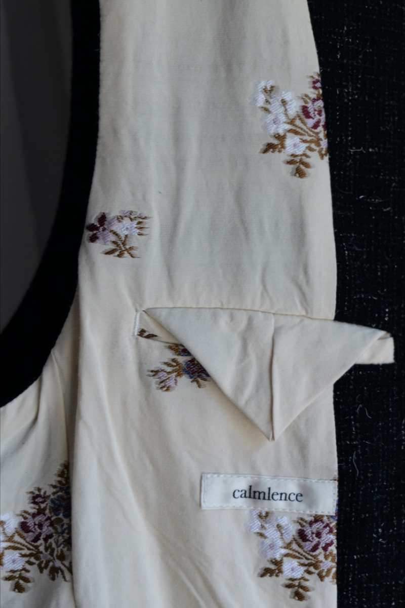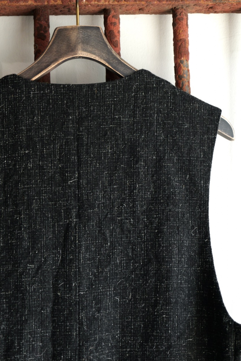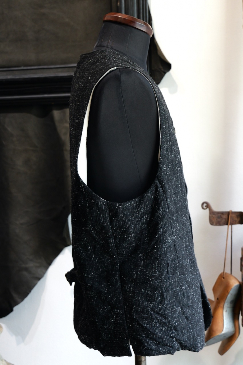 VEST007. Workers Gilet Kasuri Gabardine. Black. Collection 005. calmlence.