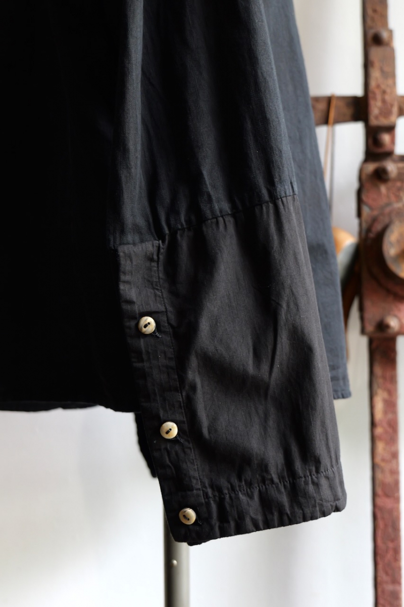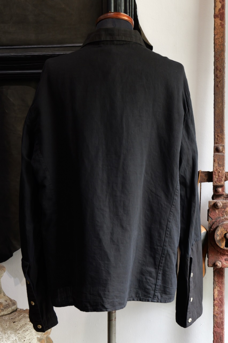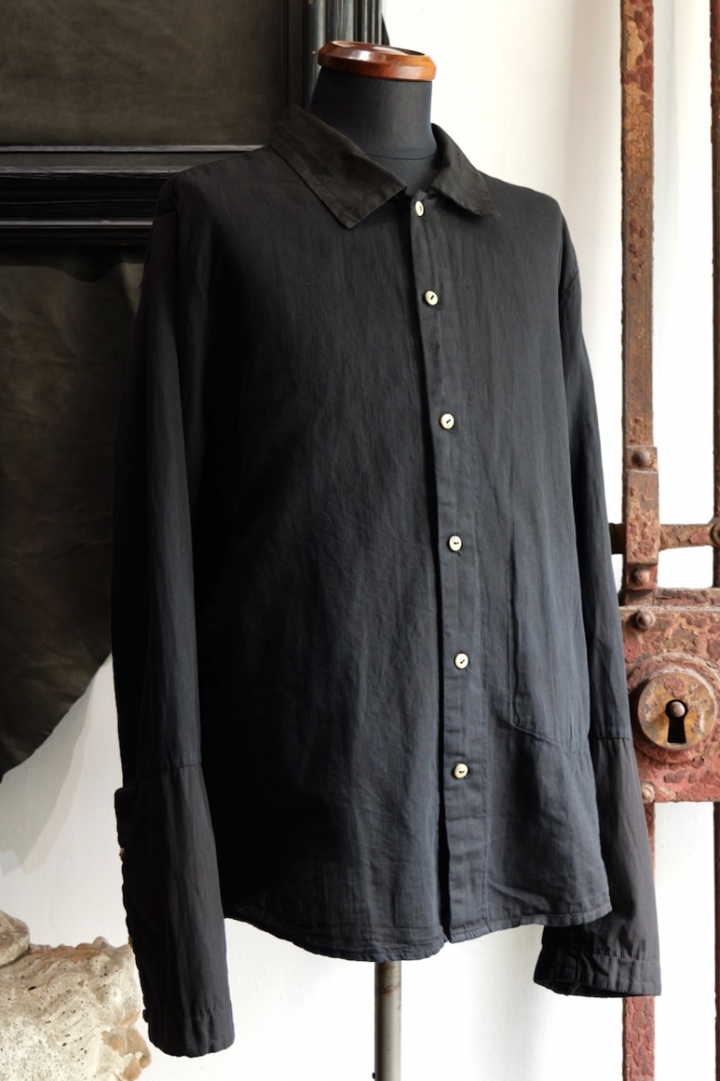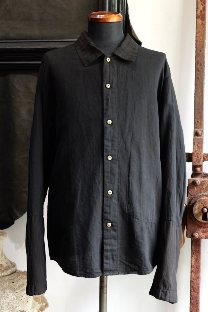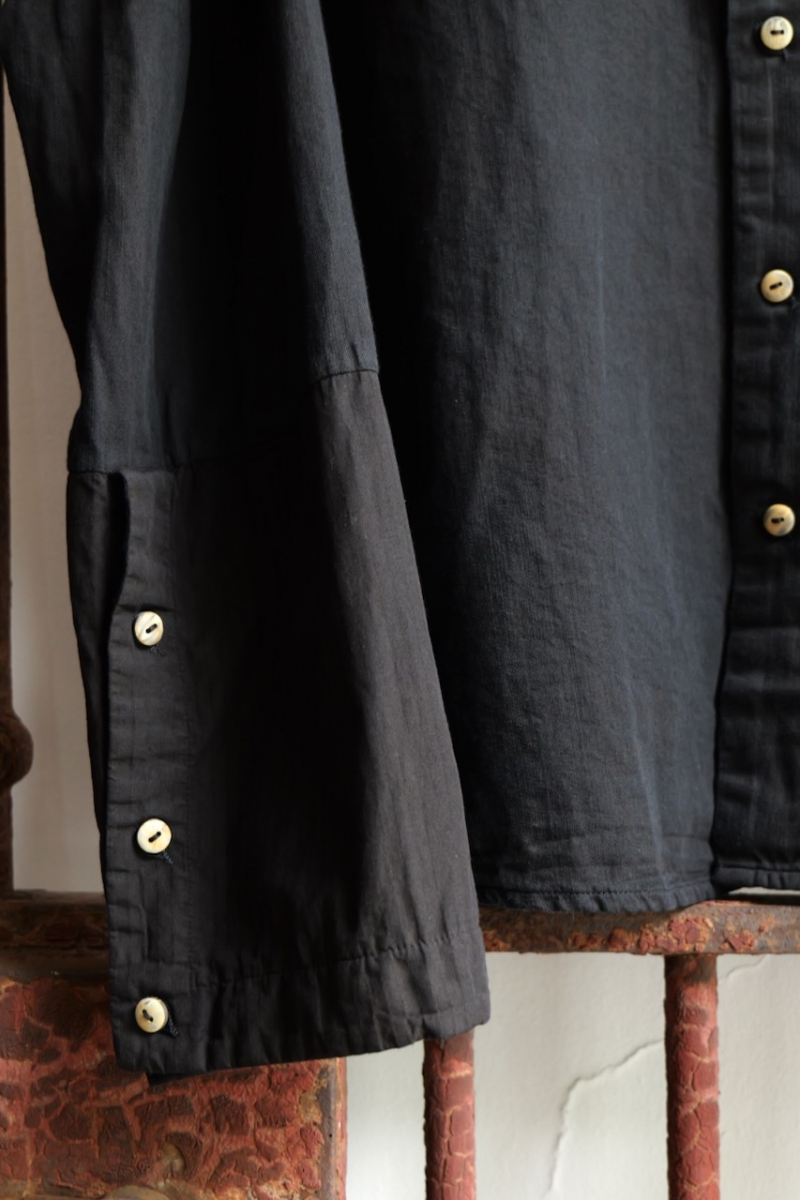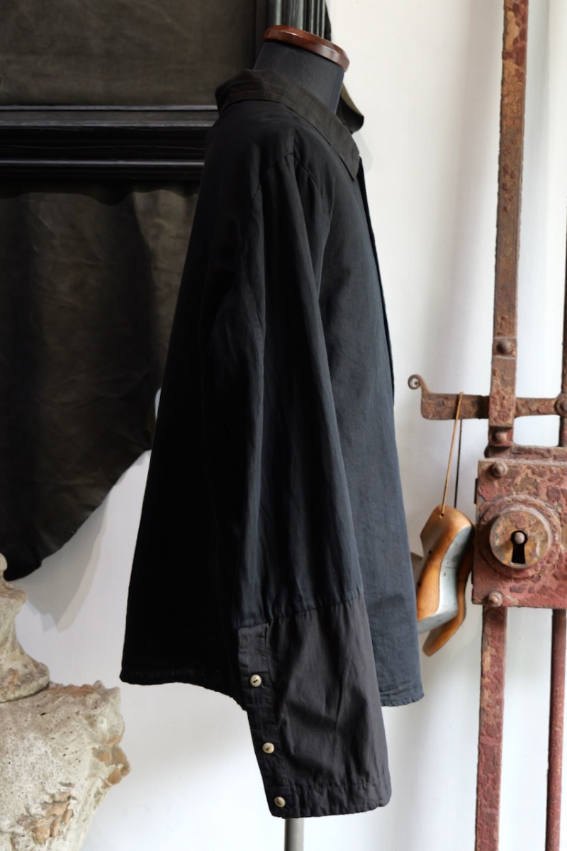 W26-08. Shirt Black Cotton And Stripes Mixed Material. Hand Dyed. atelier suppan.
