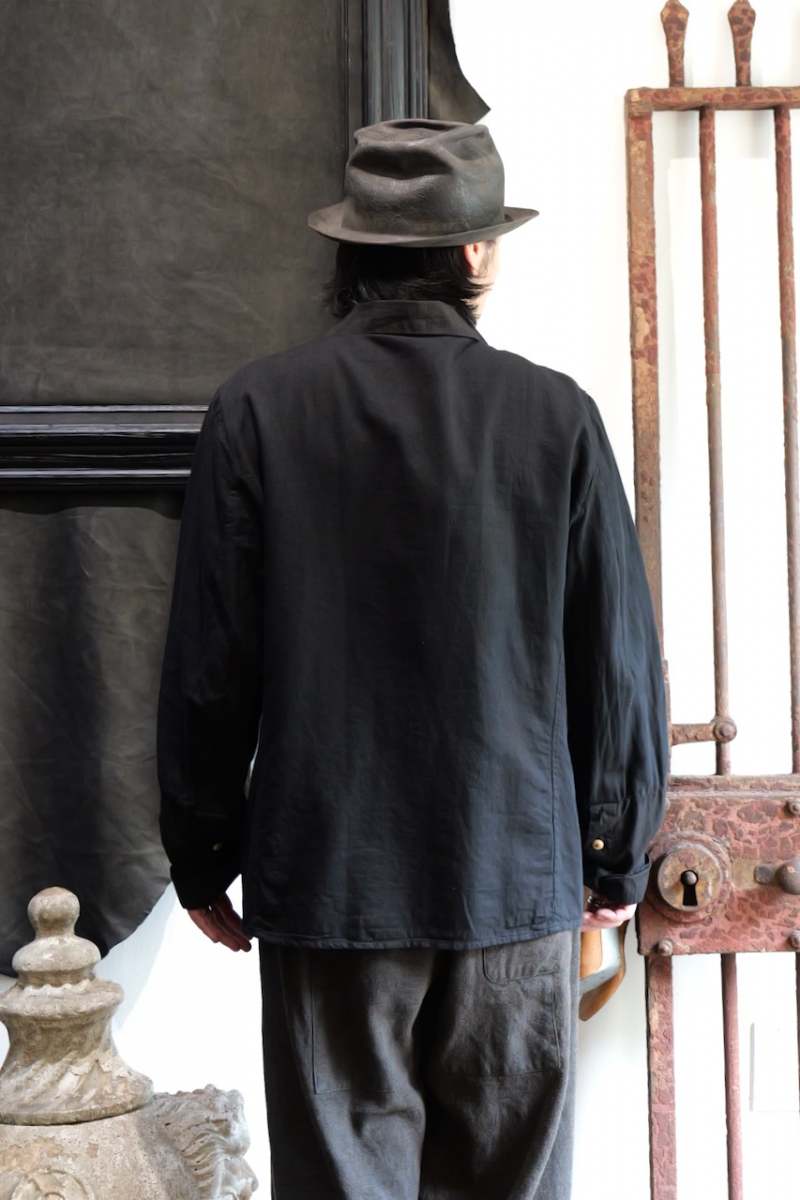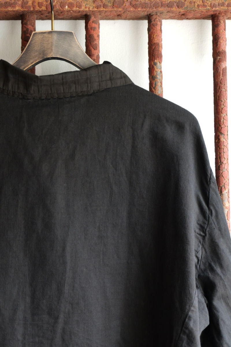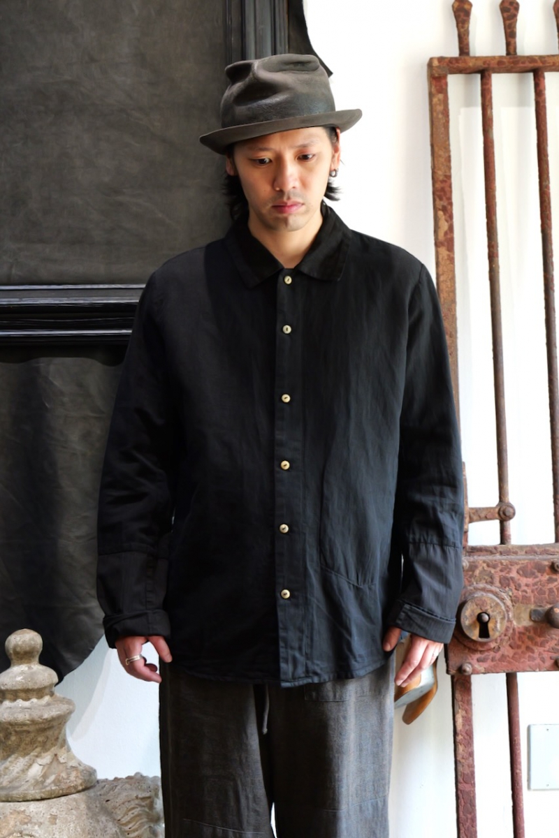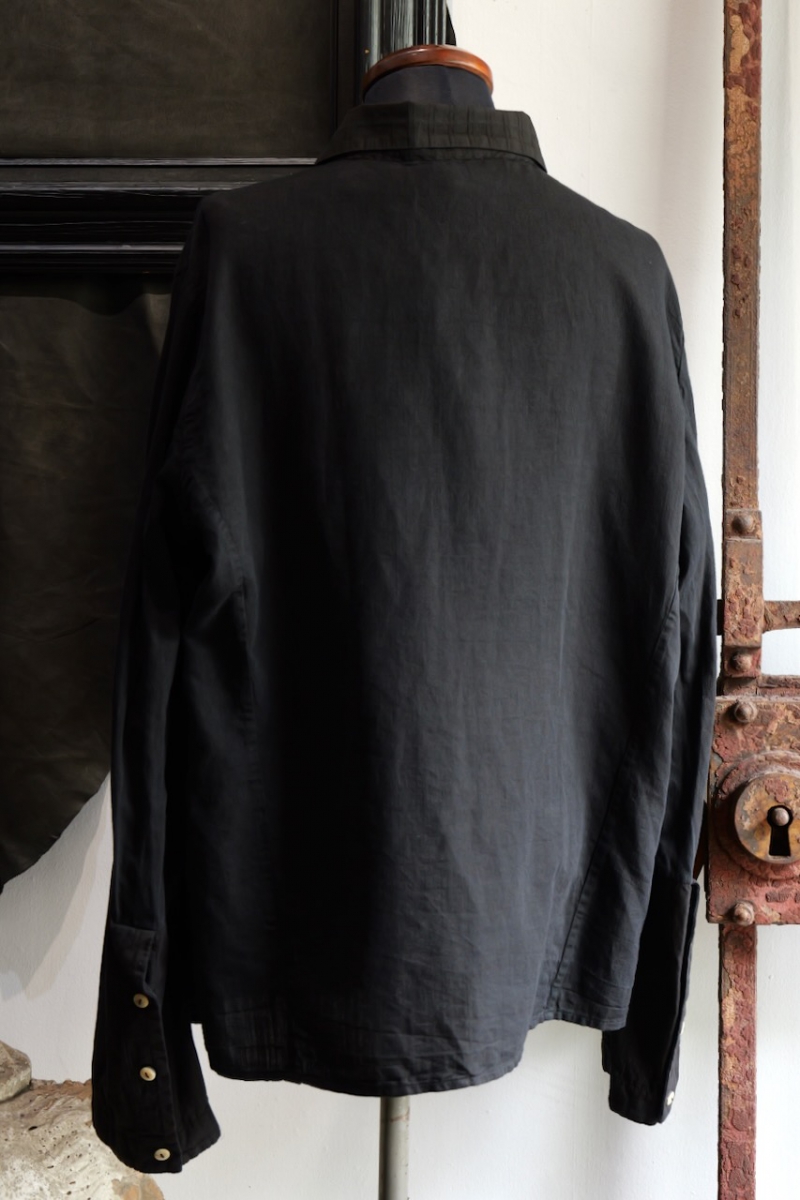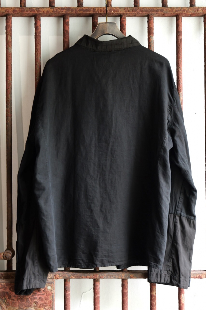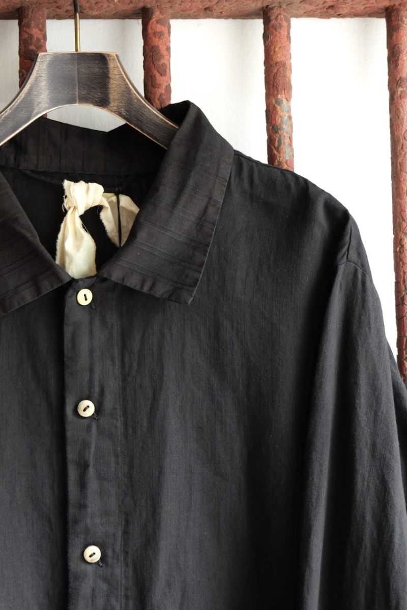 W26-08. Shirt Black Cotton And Stripes Mixed Material. Hand Dyed. atelier suppan.