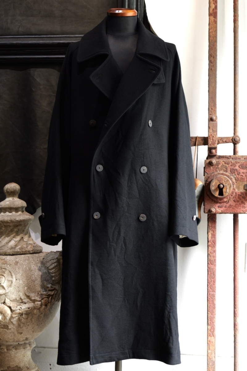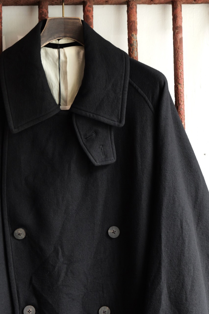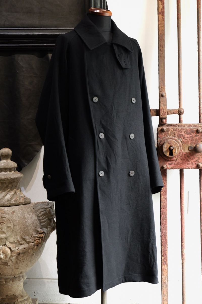 シングルラグランスリーブのダブルブレストオーバーコートになります。