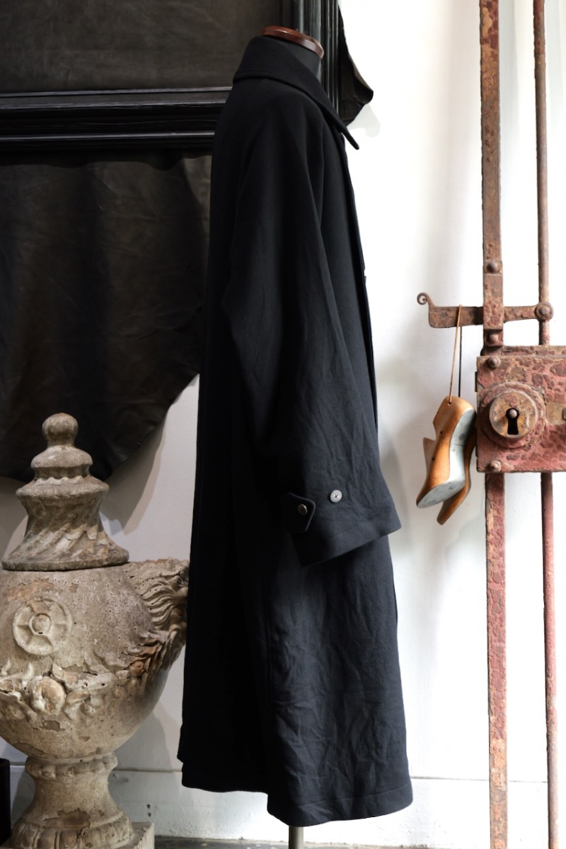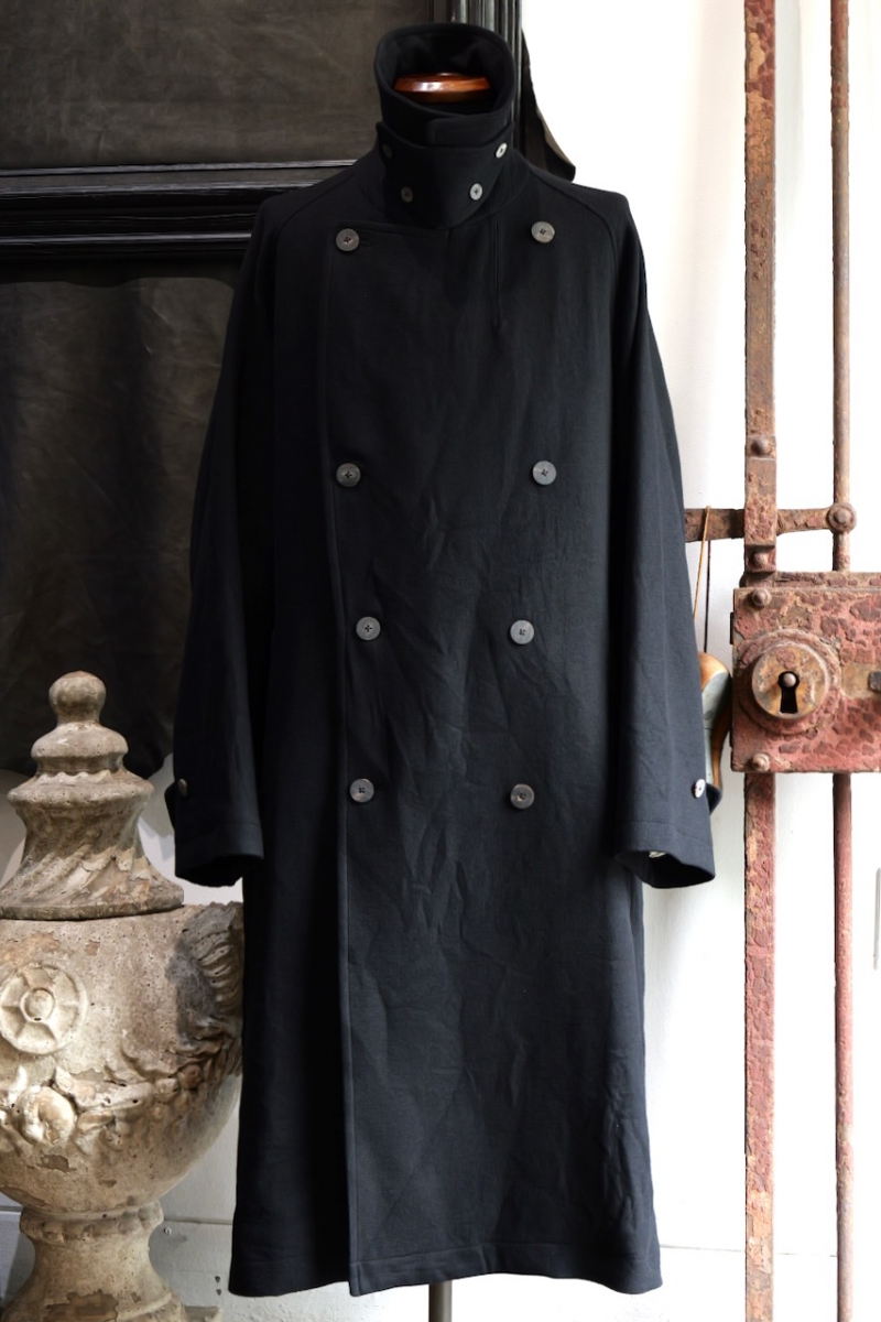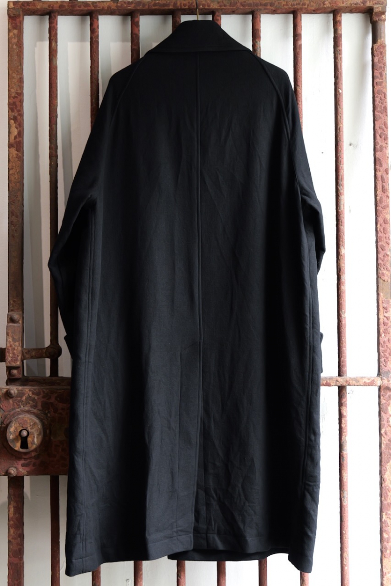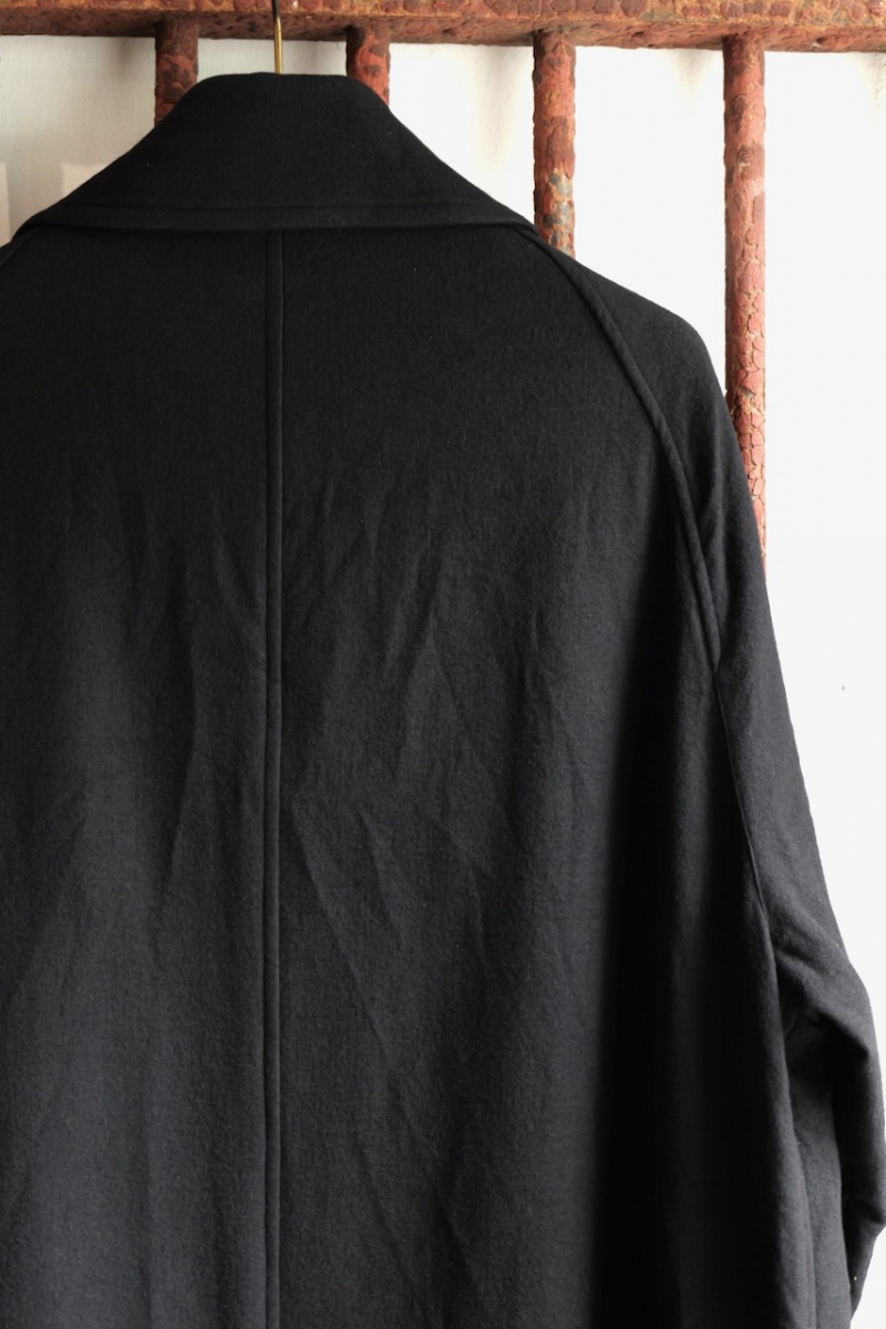 シングルラグランスリーブのダブルブレストオーバーコートになります。